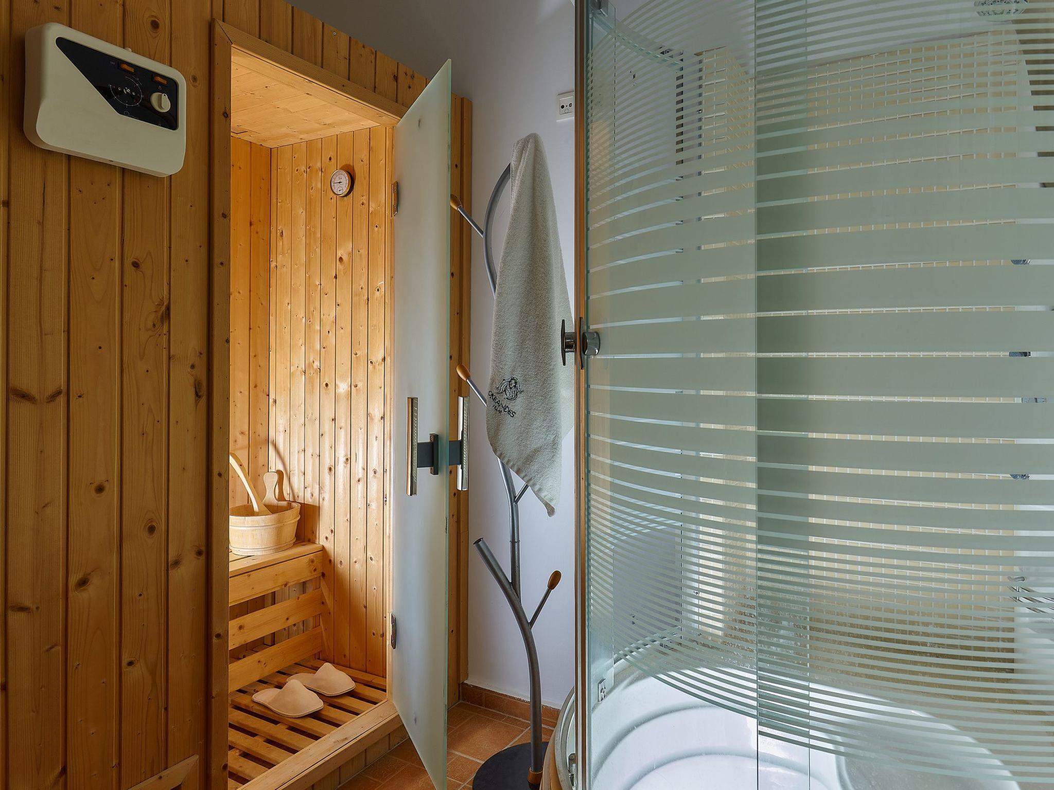 This two-storey villa has three bedrooms and can accommodate six persons. The spacious living area offers comfortable sofas and a fireplace. The modern kitchen is fully equipped. There are two bathrooms, one with a bath tub and one with a shower. The sauna is another highlight. There's WLAN throughout the property.
