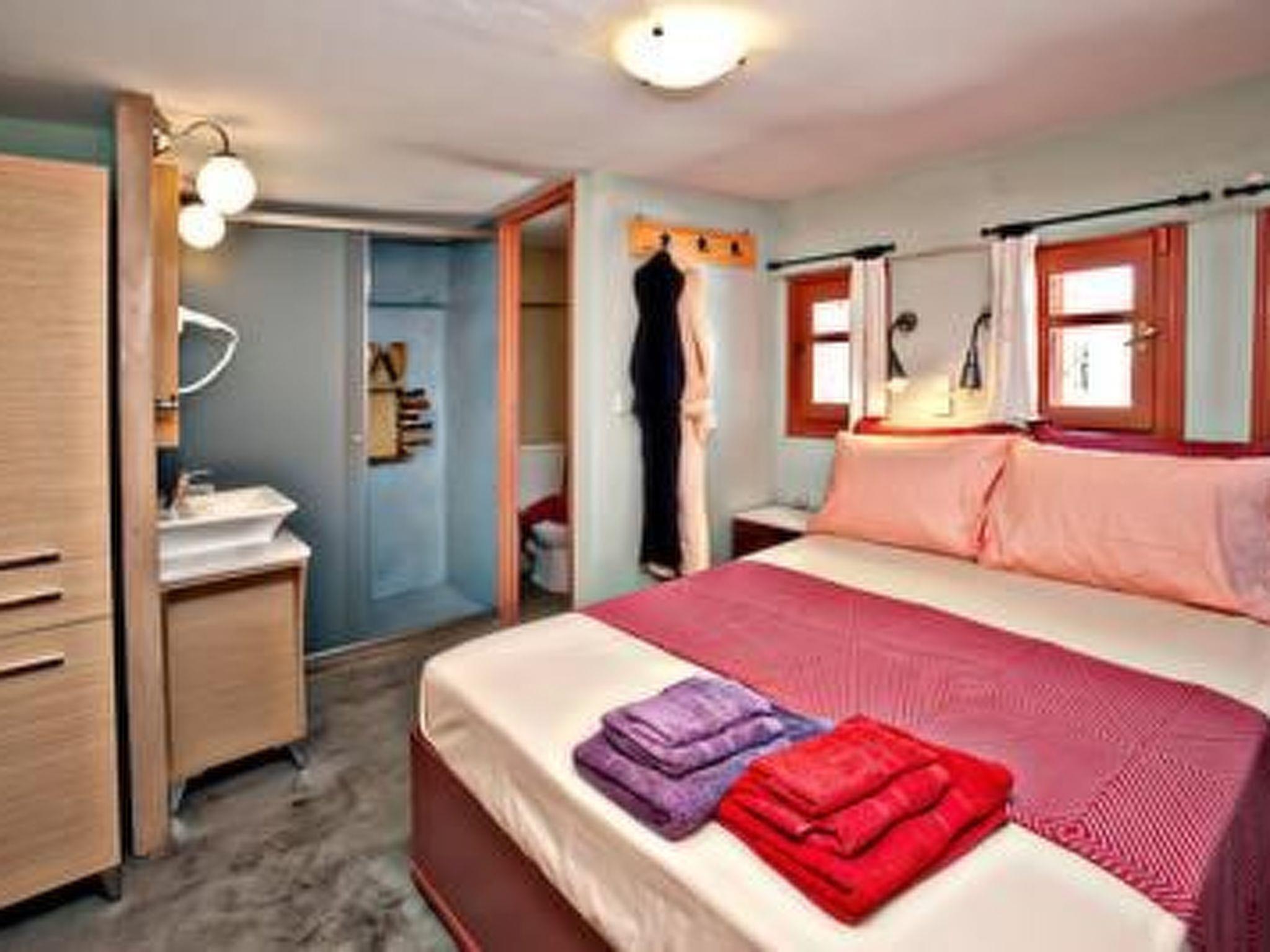 Villa Orange House - Habitart is a beautiful two-story house with 5 bedrooms. It is part of a complex of 5 dreamy houses, inspired by the traditional architectural style and natural surroundings of the island of Tinos, designed and decorated with meticulous attention to detail, while offering all the amenities of a modern holiday resort. The location of the houses offers breathtaking views of the Aegean Sea, the neighboring islands of Syros and Mykonos, as well as Tinos Town and the island's typical windmills. Each outdoor area is tastefully designed in a traditional style and adorned with many works by both renowned and local artists and sculptors. The stone floors, wooden windows, and split patio doors provide an authentic experience of Cycladic living, with the view and the surroundings, landscaped with plants and natural rocks, guaranteeing enchanting and relaxing hours outdoors. The ground floor of the house offers a beautiful, cozy living room, a modern kitchen with a fireplace, as well as three bedrooms and two bathrooms. The upper floor is accessed via an interior wooden staircase and consists of two additional bedrooms with two bathrooms. The exterior of the house offers panoramic sea views and a sheltered stone outdoor dining and seating area, a stone barbecue, and a private pool decorated with marble artwork. Bedrooms: - 4 air-conditioned guest rooms with double beds - 1 air-conditioned bedroom with a single bed All bedrooms have beds with high-quality, handcrafted anatomical mattresses made from natural materials (Candia electricity) Bathrooms: - 4 bathrooms with shower (2 on the ground floor, 2 upstairs) - 1 toilet Comfort and amenities: - Swimming pool: Private pool (salt electrolysis) with sun loungers - Amenities: Wireless internet access (indoor and outdoor), LCD TV, air conditioning, hairdryer, iron and ironing board, vacuum cleaner, sheltered outdoor dining area, BBQ grill, covered terrace - Air conditioning: All bedrooms and the living area are equipped with air conditioning - Kitchen: Kitchen with brand-name appliances (fridge/freezer, stove, microwave, coffee maker, espresso machine, dishwasher, toaster, blender, sandwich maker, kettle) - Laundry room: Access to the shared laundry room with Miele washing machines and dryers - Housekeeping: 8 hours daily, with fresh sheets twice a week - Personal assistance with travel planning and car rental, among other services Concierge services - Free return transfers from the port (for a maximum of 8 people). Booking conditions - Minimum stay is three days. Other: The swimming pools are unsupervised; guests use them at their own risk and are advised to exercise caution when using them. Local products such as herbs (thyme, oregano, fennel, sage), pickles (samphire and capers), honey, prunes, jam, raki, etc., are provided to new guests upon arrival. Typical Greek breakfasts and other local meals are available upon request. Short description: Other: Non-smoking house. Short description: 1. Number of kitchens: 1. Surroundings: Rental options: Car rental. Sports in the area: Fishing, cycling. Surroundings: 1. Excursion options: Traditional villages, Marble Museum, Poseidon Temple, Volax granite rock formation, Archaeological Museum, windmills, dovecotes, more than 600 Greek Orthodox and Roman Catholic churches and monasteries. Excursions to Dilos and Mykonos. Location description: Tinos is an island of extraordinary beauty, with traditional, picturesque villages, authentic architecture, pristine beaches with crystal-clear waters, green fields with rocky hiking trails, and world-famous chapels and monasteries. The diversity of Tinos' landscape is unique in the Aegean. Tinos has retained its unique character and identity over the years. Other sports and leisure activities: Guided hikes are offered. The complex features traditional buildings, including a replica of an original windmill, a dovecote typical of the island, a renovated traditional stable, and an olive mill with original equipment used for the production of olive oil, wine, tsipouro, and raki. Art exhibitions by Greek and international artists are regularly held on the complex. A traditionally built church with frescoes completes the uniquely beautiful setting. The complex was filmed by French television for the program TV5Monde as one of the Mediterranean's traditional and exemplary complexes.