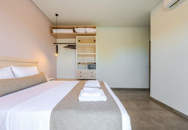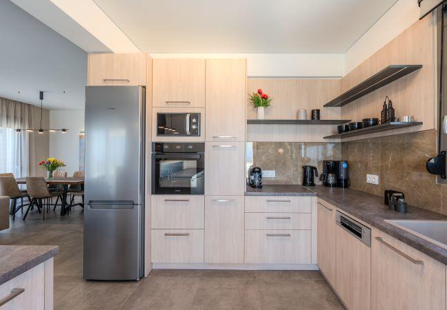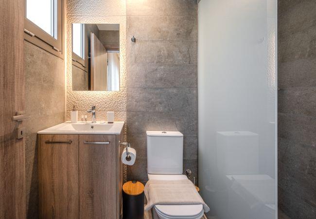 Inside, the villa which has a one storey layout , boasts a modern open-plan kitchen, fully equipped with top-of-the-line appliances and utensils, allowing you to unleash your culinary creativity with ease. Whether you're enjoying breakfast on the balcony, lounging in the air-conditioned living space, or unwinding in one of the stylishly appointed bedrooms, every moment at Meli & Gio villa is a testament to luxury and comfort.The villa has 3 bedrooms , 2 doubles, one of them with ensuite facilities (shower/wc) and a twin bedroom with ensuite facilities (shower/wc) while a third fully equipped bathroom is also provided.