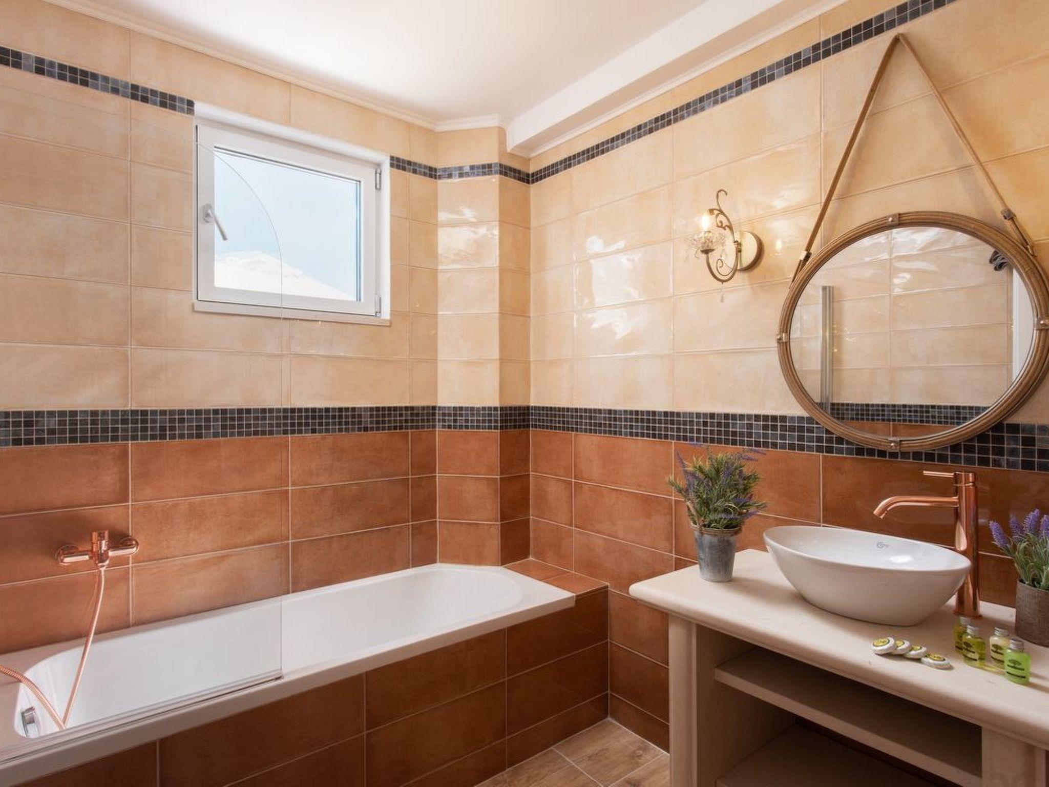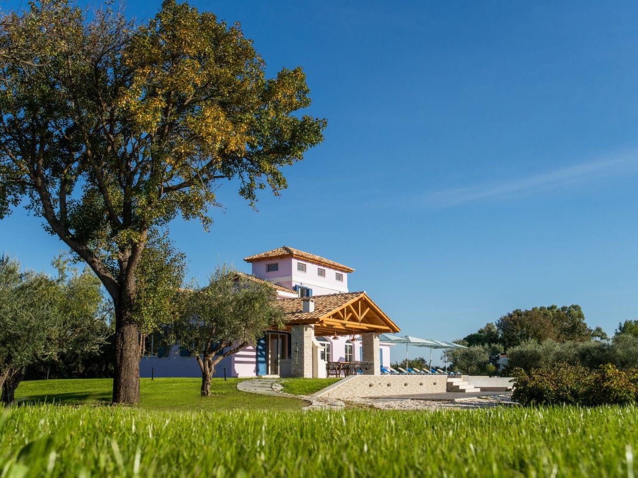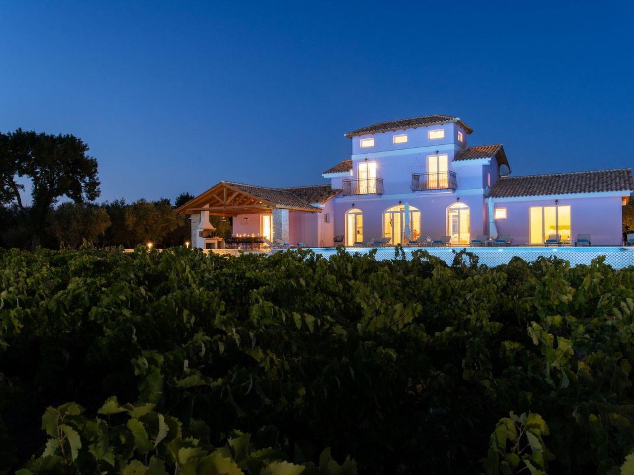 Features:Alexandra is a newly built, in 2021, luxurious villa of 221 sqm, situated in a vineyard estate of 50.000 sqm.The architecture of the villa is fully in line with the traditional, manor houses of noblemen of the past centuries, enriched with all the modern comforts.The villa is spread in two levels, consisting in total of 7 bedrooms and 6 bathrooms, with capacity up to 15 guests, offers a great variety of facilities and plenty of entertainment choices.The main entrance of the villa leads to the 60sqm living room. The 6 door-windows offer great views to the pool and the vineyard and the olive grove. At the ground floor, next to the pool, are also situated a fully equipped kitchen, four double master bedrooms with en-suite bathrooms. The veranda is covered, has a dining table and a fantastic mountain view over the infinity pool and the playground in the olive grove. On the first floor you can find an additional master bedroom with two single beds with its own en-suite bathroom and balcony and two more bedrooms (one with double bed and balcony and the other with three single beds with their bathroom). The large balconies offer wonderful view not only of the estate but of the whole central area of the island.Fast WiFi access available throughout the property.