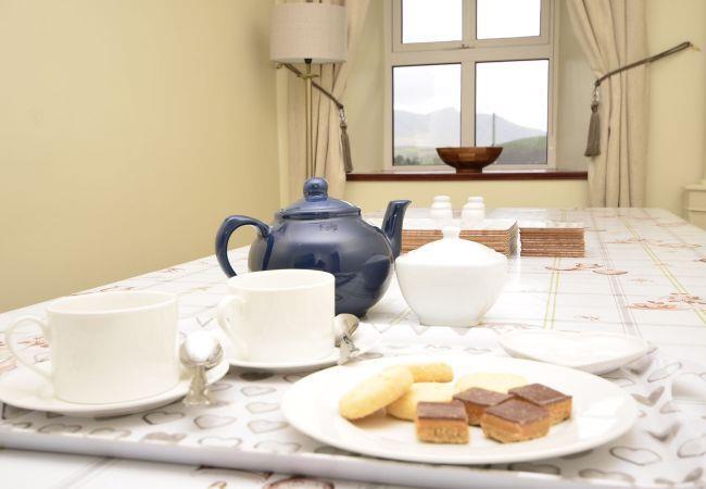Tully Holiday Cottage Description – Sleeps 9Tully Holiday Cottage is a large self-catering cottage in Connemara sleeping 9 guests comfortably. The large kitchen and adjacent dining room provides ample space for you and your guests to enjoy meals together. The bright kitchen is equipped with all the essentials you need for a self-catering holiday cottage in Ireland.