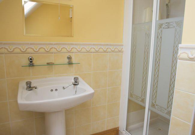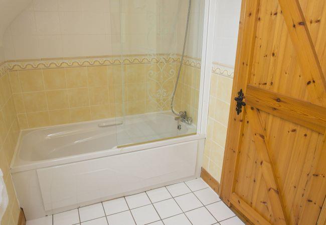- Family bathroom with a bath and overhead shower