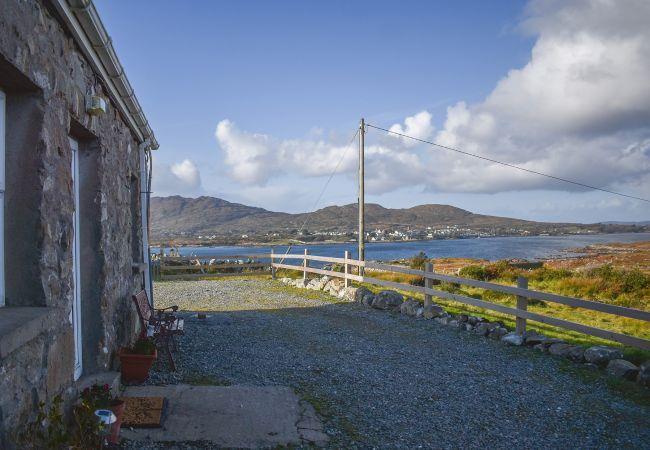Bridies Holiday Cottage is a pretty seaside holiday accommodation located on an elevated site with spectacular sea views on Inishnee Peninsula near Roundstone in County Galway. This ideally placed self-catering holiday cottage sleeping 5 offers wonderful views of Betraghboy Bay and the Twelve Pins Mountain range in Connemara.