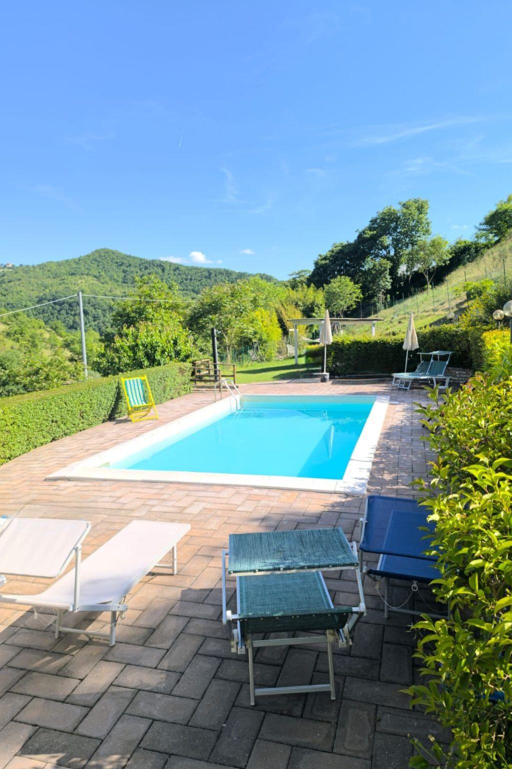 The facility is located in Pole, a small hamlet in the municipality of Acqualagna. Acqualagna is a small town in the province of Pesaro and Urbino, famous for its well-known truffle, which is offered in all the numerous local restaurants. Acqualagna, with just over 4500 inhabitants, is about forty kilometres from the sea, offers the possibility of mountain excursions, trips, and includes within its borders every kind of physical shop: bars, restaurants, supermarkets, clothing... As well as the possibility of practising numerous indoor and outdoor activities, sports of all kinds, climbing,... Casale " La Baiona " is a beautiful holiday home, perfect for relaxing and enjoying the good country air. It is located in the locality of Pole, a small hamlet in the municipality of Acqualagna(PU), famous for its renowned truffle, a culinary delicacy and a real treasure guarded by the territory. The structure consists of three independent flats located on the ground floor, each equipped with every comfort and with its own outdoor space: garden, gazebo and outdoor table. The pride and joy of the farmhouse is, without a shadow of a doubt, the marvellous outdoor swimming pool immersed in the breathtaking natural landscape that surrounds the entire structure. Our guests will be able to fully enjoy the scents, colours and pleasant sensations that the splendid location, with its typically rural connotations, brings with it. We are open from 2 May until the end of October: come and spend your summer holidays with us, you will be poacevolente amazed!!!