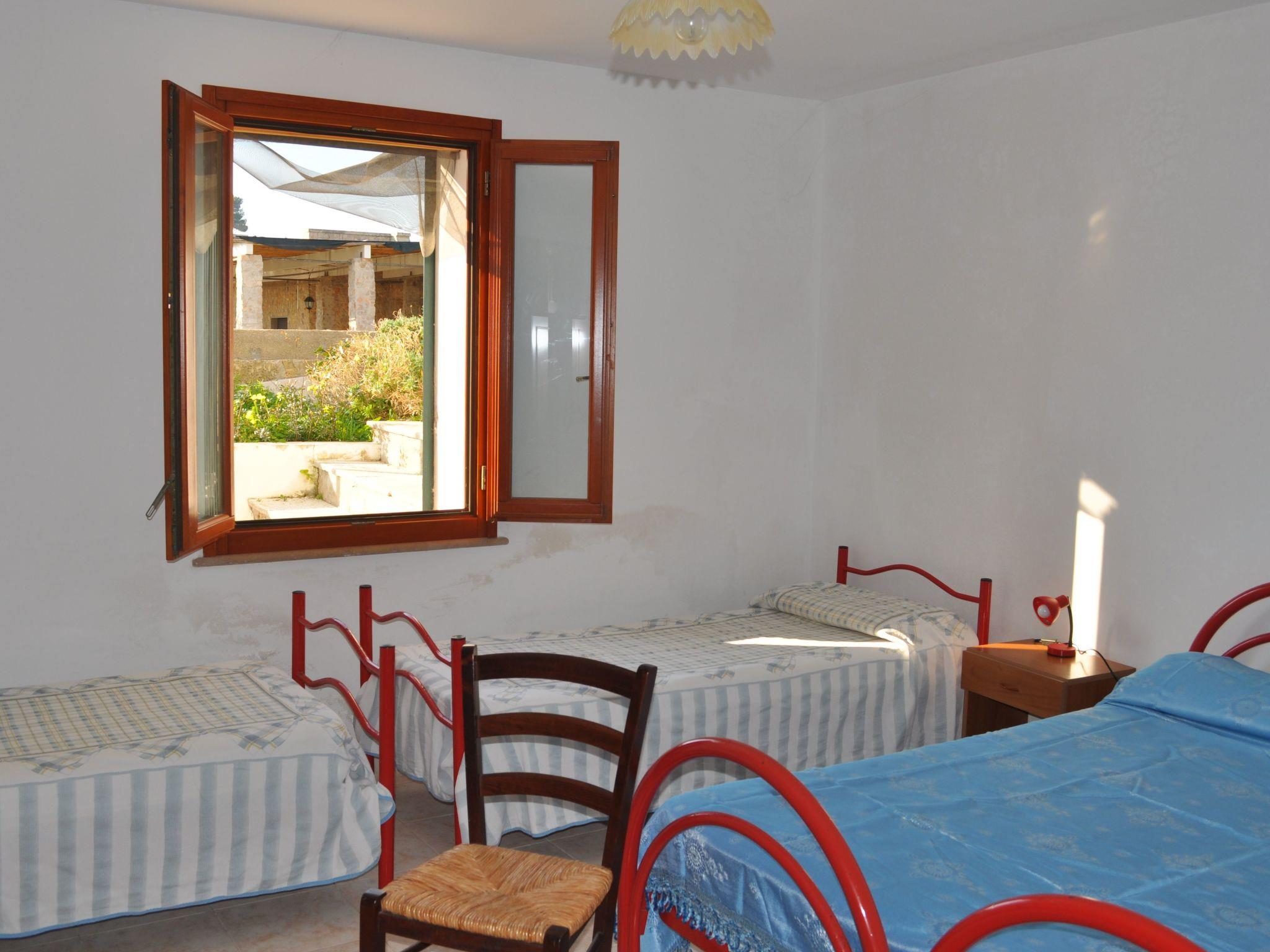 The interior of the flat is designed for convenience and comfort during your stay. While not exploring the kitchen or bathroom in detail, it is important to note that guests will have access to a gas cooker, complete with crockery and cookware, perfect for preparing light meals, and a refrigerator with freezer to keep drinks and food fresh. The large bedroom offers various sleeping options with a double bed and two single beds, ideal for resting after a day spent exploring the beauty of Marina di Felloniche.