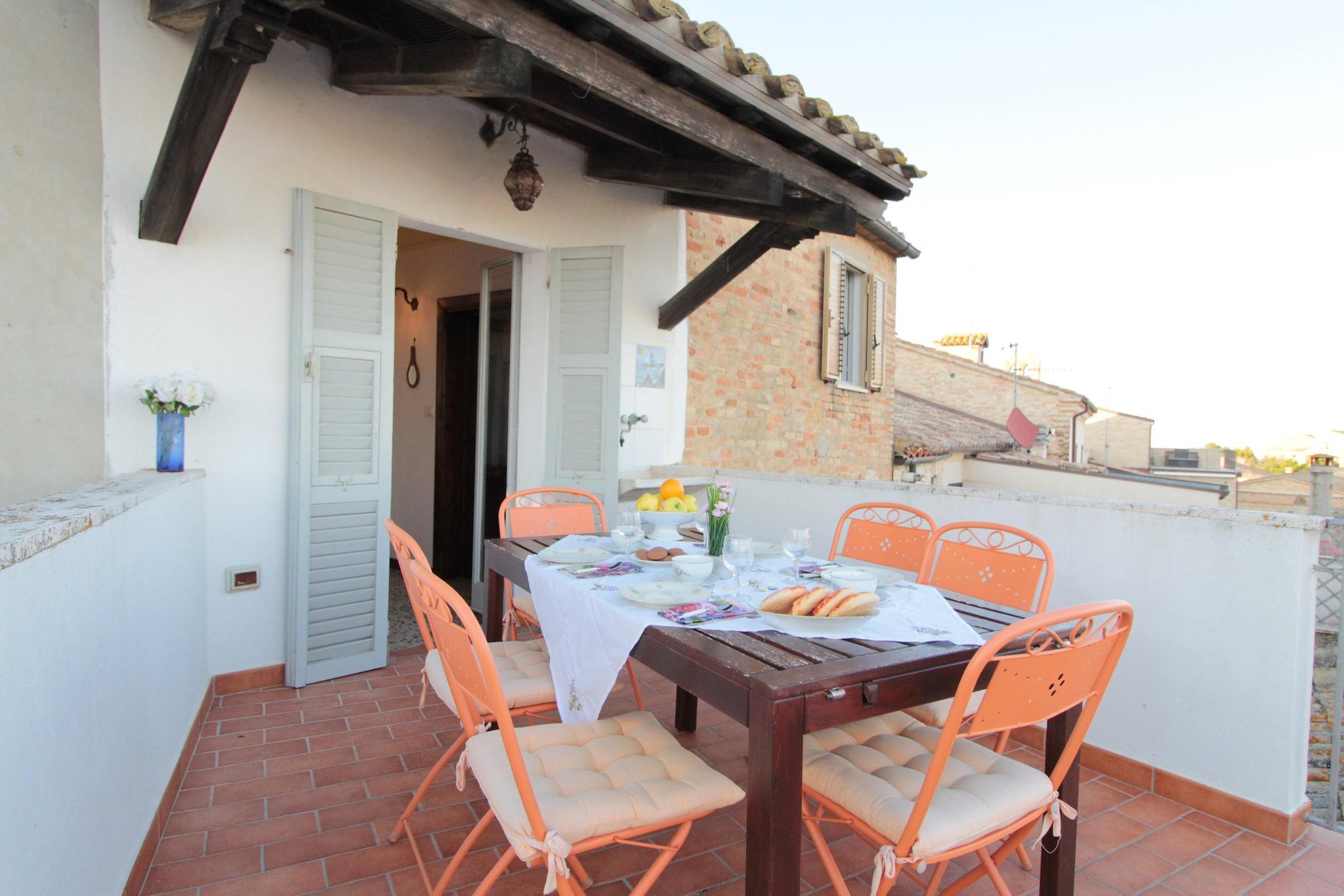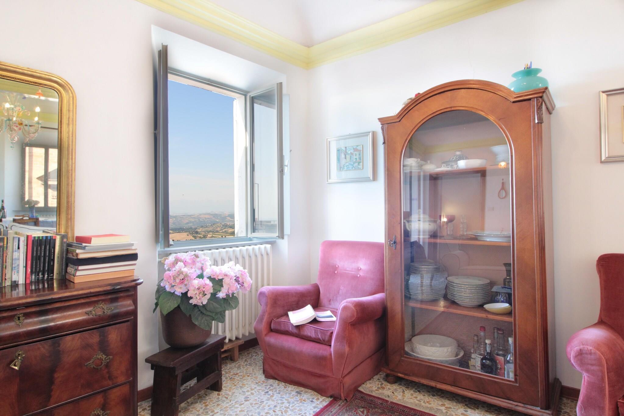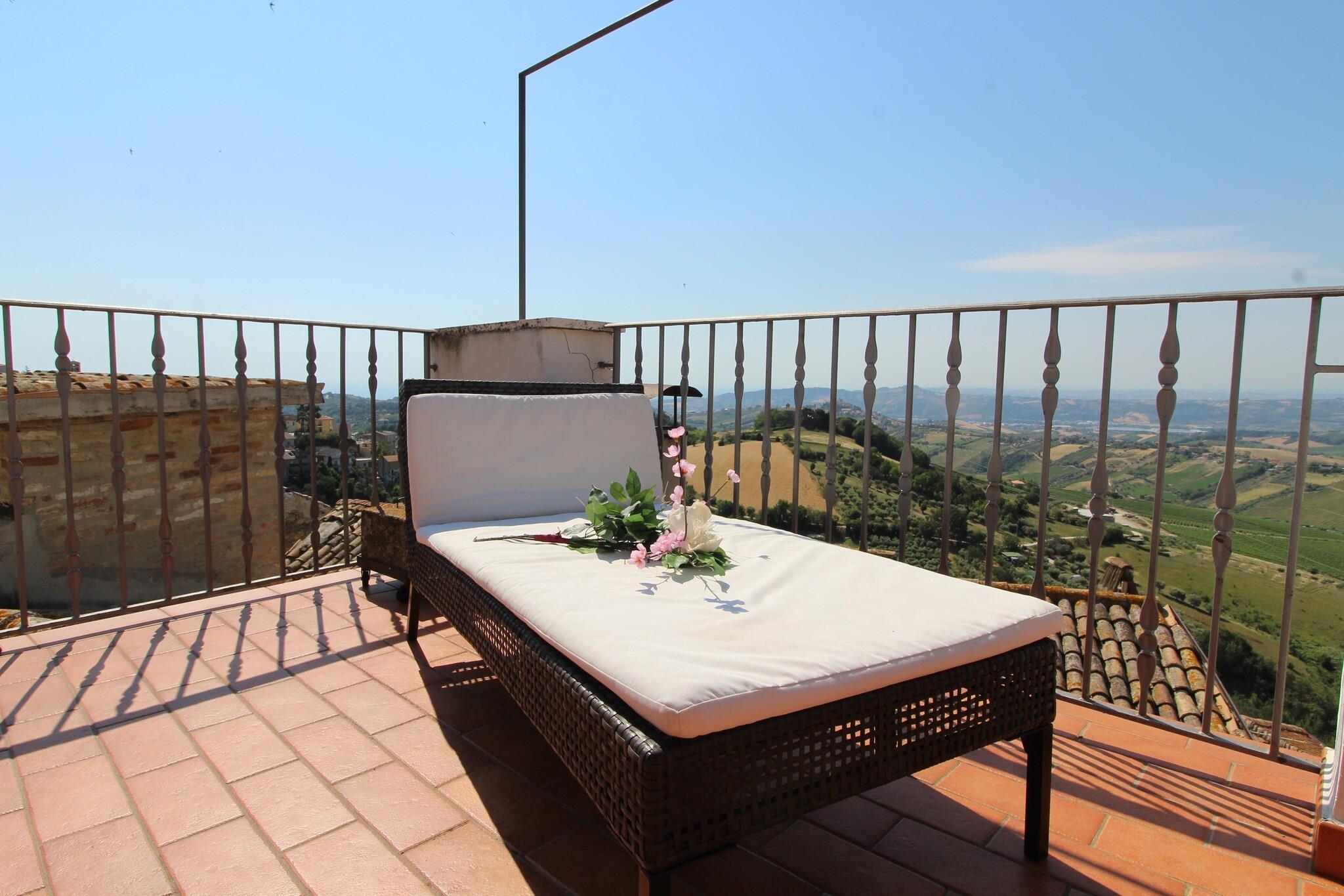 Från terrassen till denna antika byggnad, som ligger i den charmiga byn Acquaviva Apicena, 350 meter över havet, kan du beundra ett fantastiskt panorama: på ena sidan havet och på den andra kullarna som blir Abruzzo-bergen. Det är en plats tillägnad dem som vill njuta av havet borta från förvirringen (stranden i San Benedetto ligger bara 8 km bort), och som samtidigt älskar att besöka fantastiska medeltida byar (Cupra, Grottamare Alta .. ), men också underbara städer som Ascoli Piceno, Macerata, Pescara, Rom (bara 2 timmar) eller vandra i bergen, stanna i källare för att smaka på de utmärkta lokalt producerade vinerna tillsammans med lokala specialiteter. För naturälskare erbjuder de två nationalparkerna Gran Sasso och Monti Sibillini resvägar som kan göras både till fots och med cykel. Byggnaden ligger i den historiska stadskärnan, så du kan gå in på torget i anslutning till det medeltida tornet för att lasta av ditt bagage, men då måste du parkera utanför murarna (gratis parkering några minuters promenad från huset). Huset är fördelat på 3 våningar, som själva är placerade på olika nivåer, därför perfekt för en stor familj eller en grupp vänner. Och det slutar i den stora terrassen i anslutning till vardagsrummet och köket där du kommer att tillbringa oförglömliga kvällar.