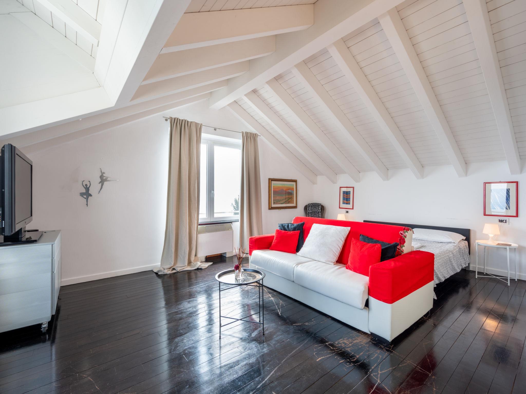"Verney", 3-room penthouse 120 m2 on 2nd floor. Spacious and bright, partly with sloping ceilings, tasteful and stylish furnishings: living/dining room with sloping ceilings with panoramic window with dining table and TV. 1 open large double bedroom with sloping ceilings with Dressing room with 1 double sofabed, 1 double bed and TV. 1 room with 2 beds. Exit to the balcony. Open kitchen (oven, dishwasher, 4 gas rings, microwave, electric coffee machine, cooking island). Shower/bidet/WC, bath/shower/WC. Gas heating. Heating available only from 15.10. to 15.04. Parquet floors. Small balcony, small terrace. Sitting area. Beautiful view of the sea, the swimming pool and the garden. Facilities: hair dryer. Internet (WiFi, free). Please note: non-smoking house. Maximum 1 pet/ dog allowed. Smoke alarm, fire extinguisher. IT009004C2FJUXKV6S