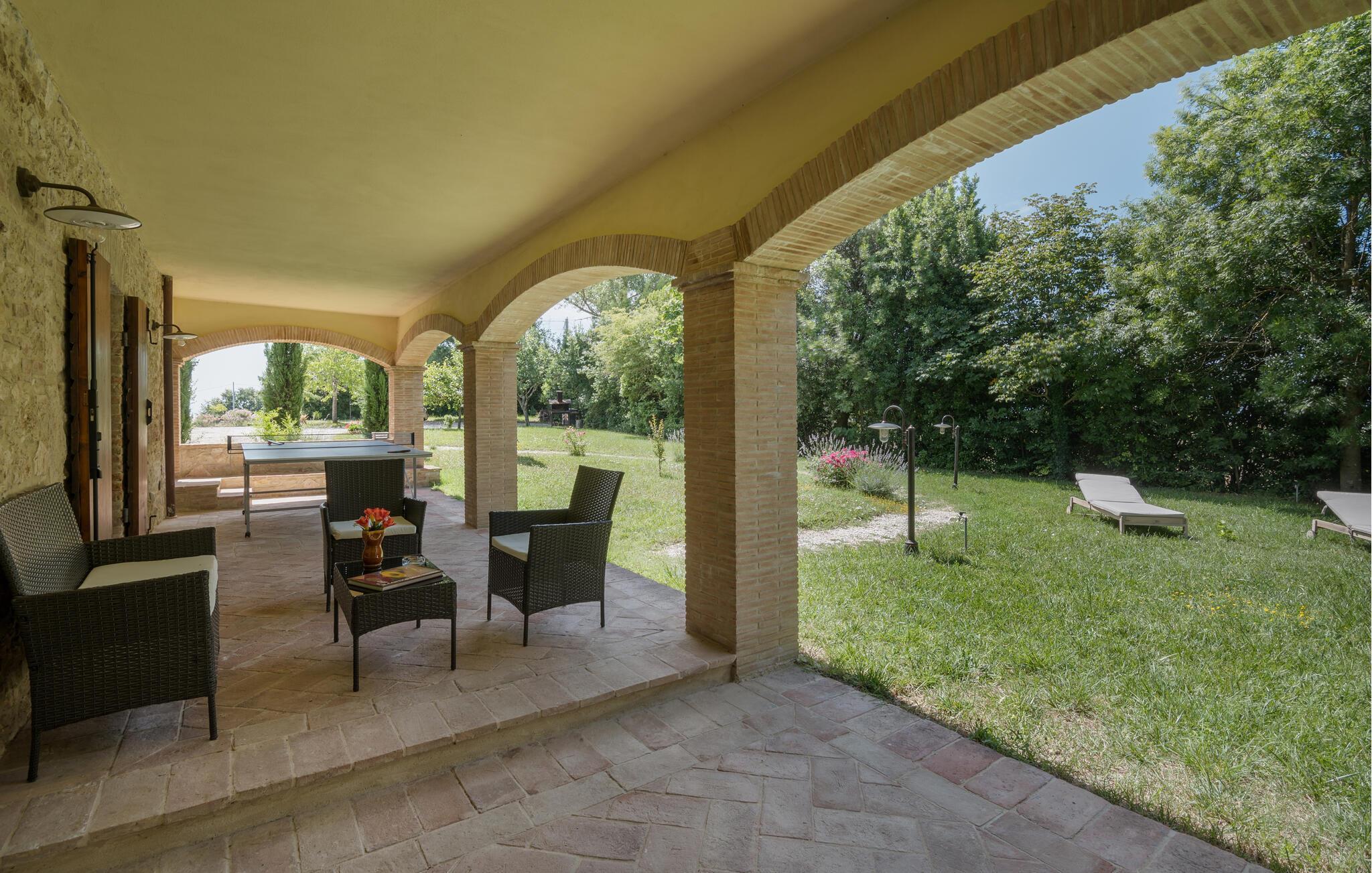 Lägenheten välkomnar dig på ett fantastiskt läge mitt i den umbriska naturen i en restaurerad bondgård och erbjuder dig idealiska förutsättningar för en avkopplande semester. De inbjudande rummen och den stilfulla inredningen med synligt tegel, inslag av trä och medelhavsfärger skapar en vacker miljö runt din semester. Gör det bekvämt i soffan efter händelserika dagar, prata sent på kvällen medan lågorna sprakar i kaminen och gör upp planer för de kommande dagarna.