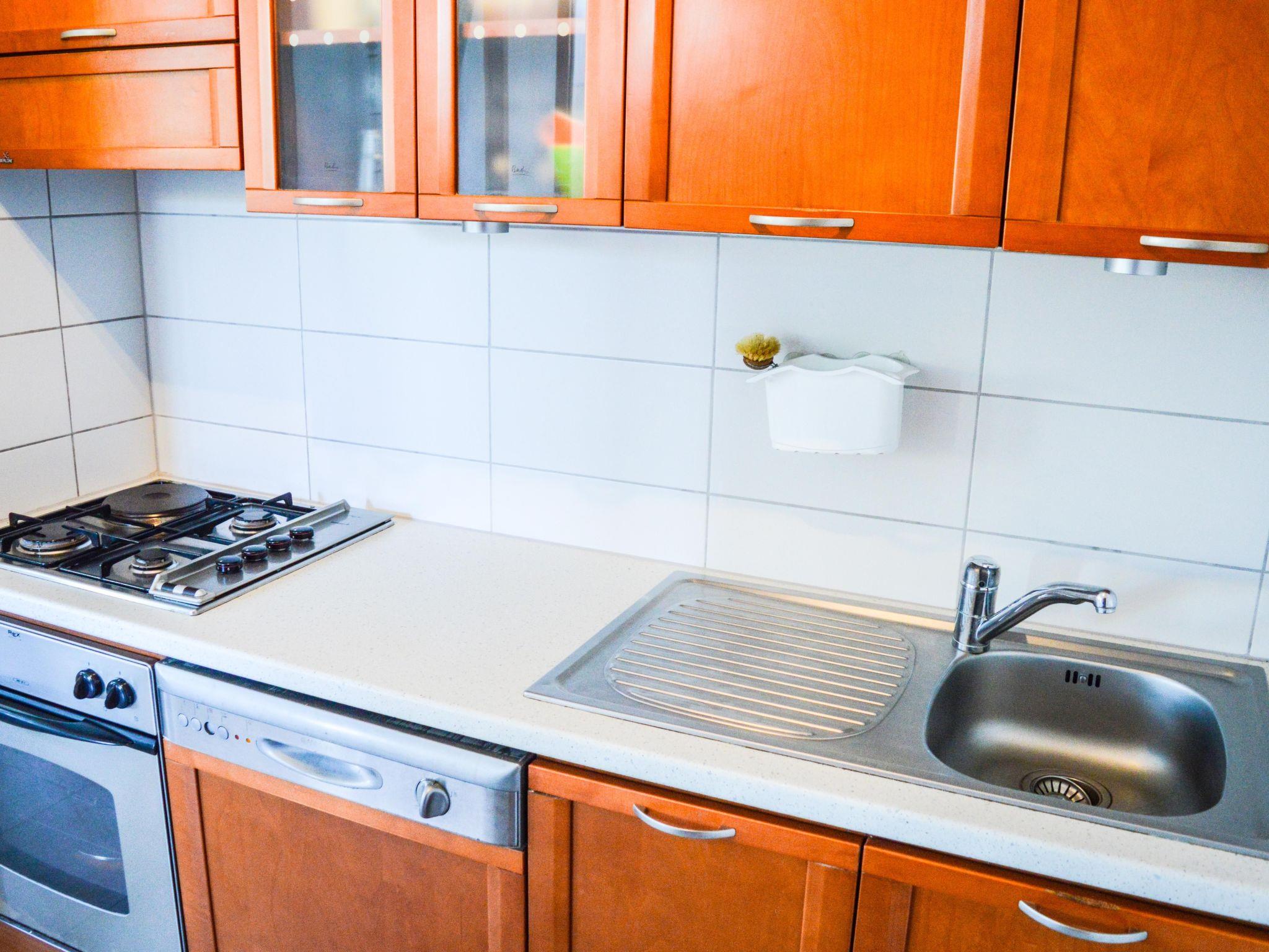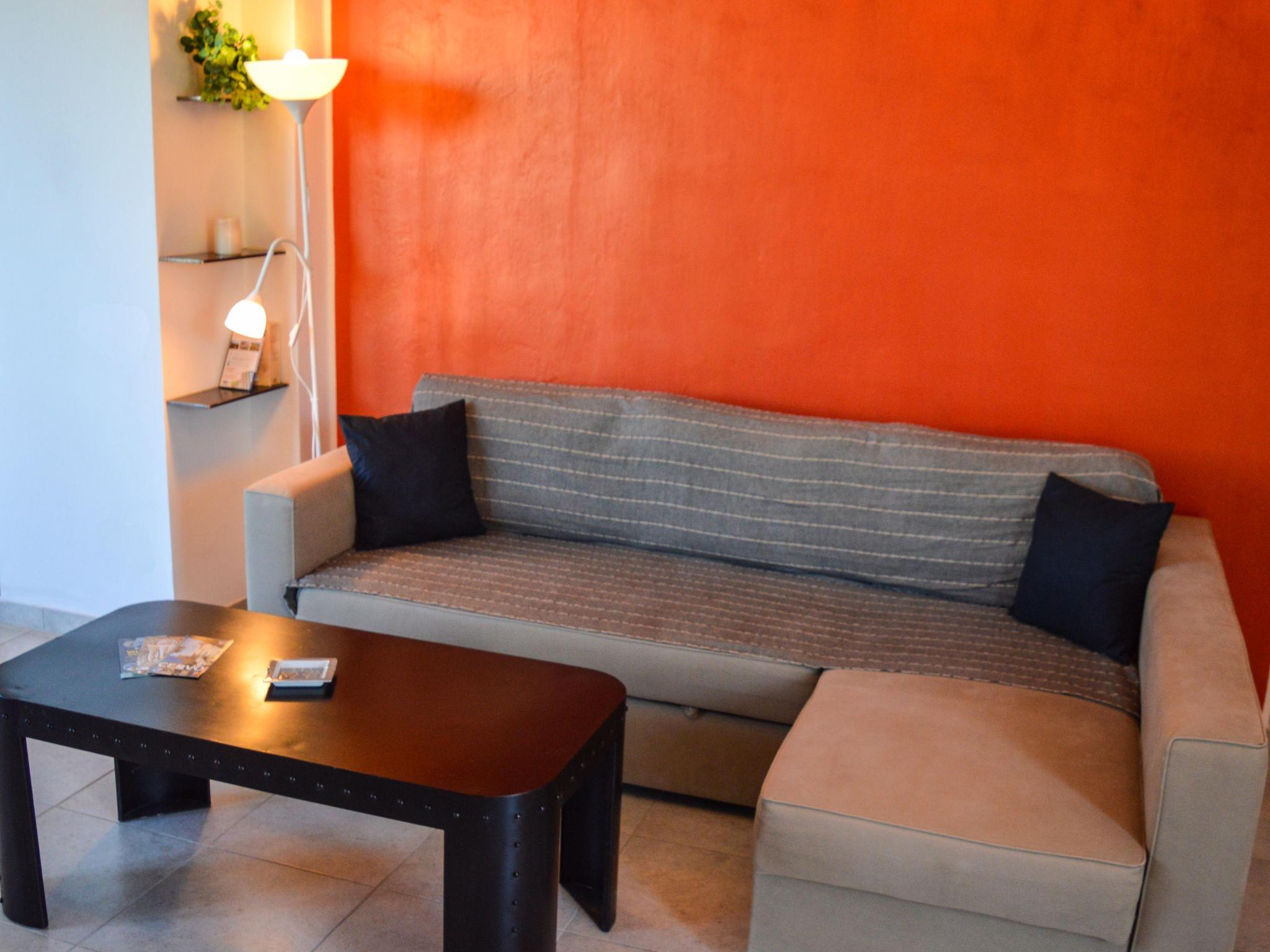 The flat is located in a quiet residential area, just 800 metres from the sea. The private road with little traffic that leads to the villa with the flat ends in a cul-de-sac.