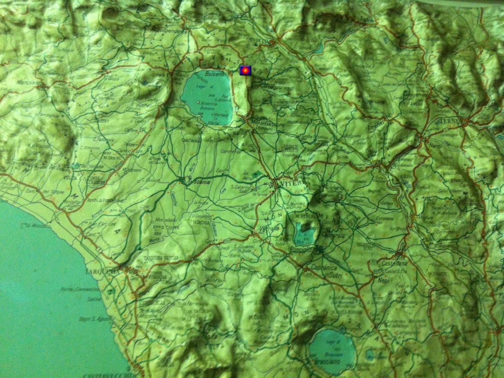The panorama is splendid, stretching over the valley to Lake Bolsena and beyond to the Vulsini mountains that surround the lake.
