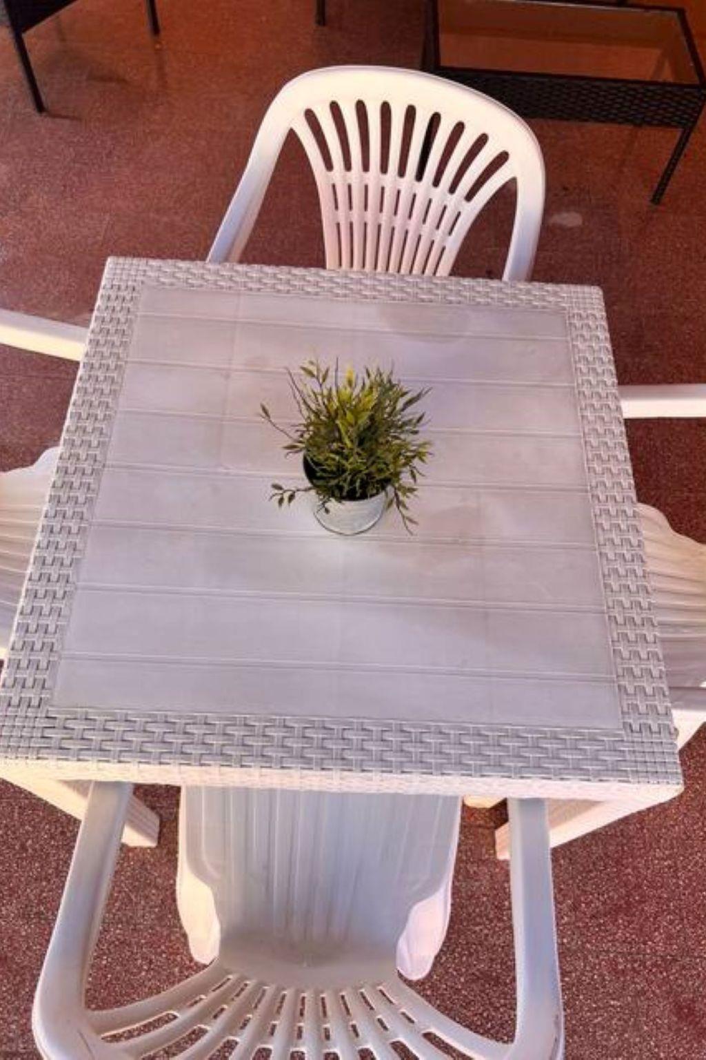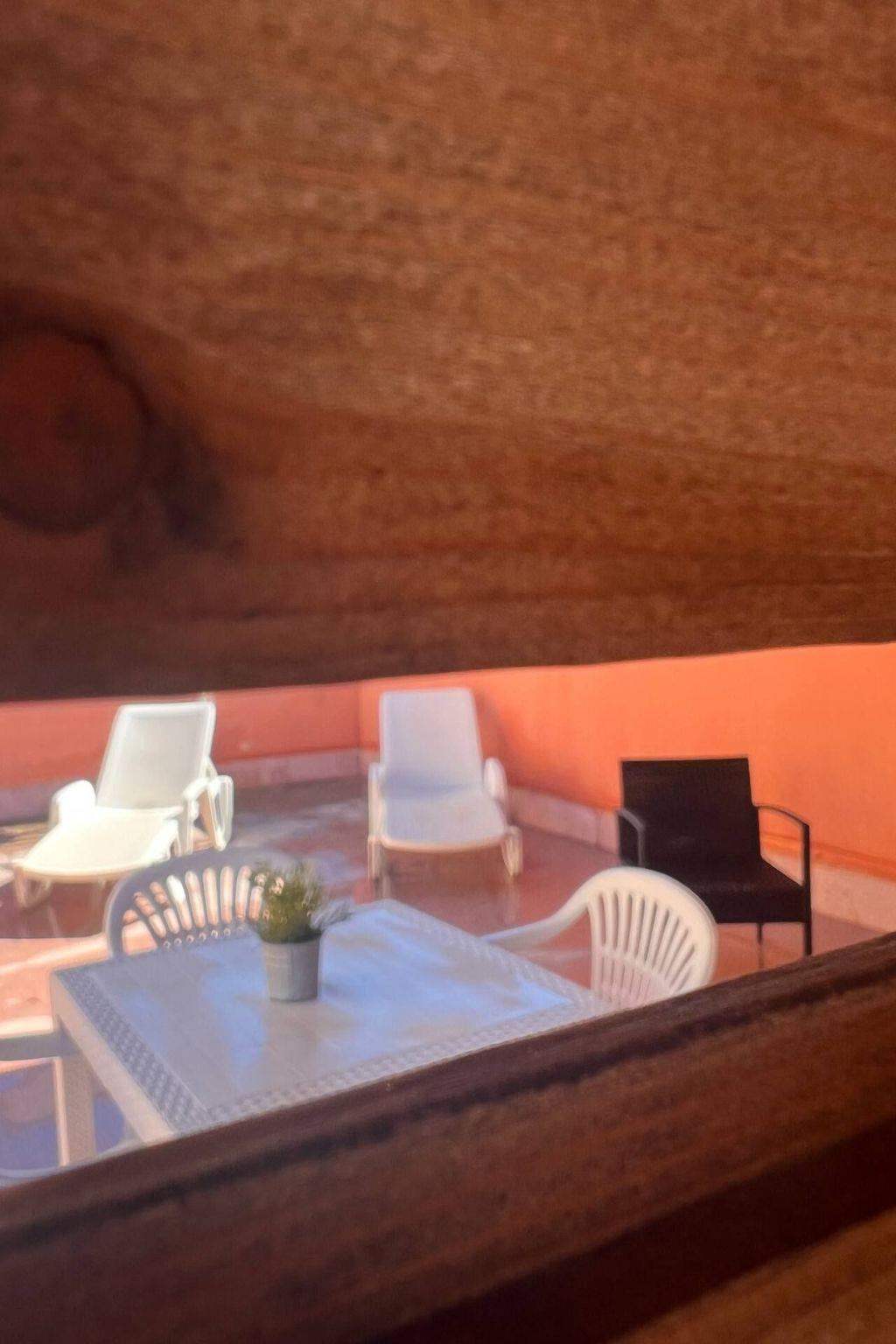 Esternamente, l'flat is a small balcony furnished with a small table and chairs for enjoying moments in the open air, while a rooftop terrace awaits you on the upper floors, equipped for relaxation and recreation under the sky. Perfect for those looking for a quiet corner to read a book or simply admire the scenery.