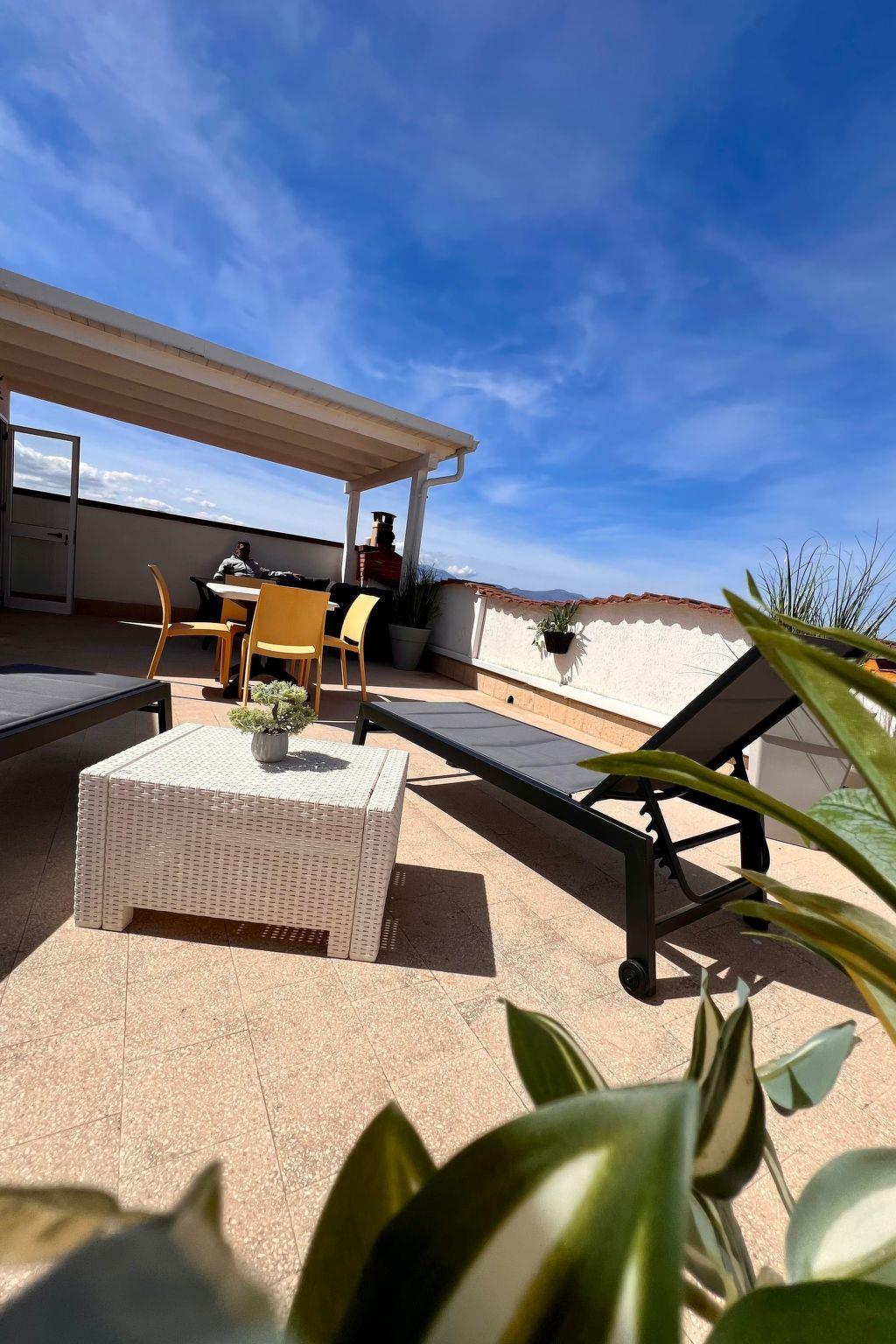 The penthouse has a half-covered terrace equipped with chairs, table, deckchairs and a relaxation area where you can enjoy excellent food in front of a breathtaking panorama.