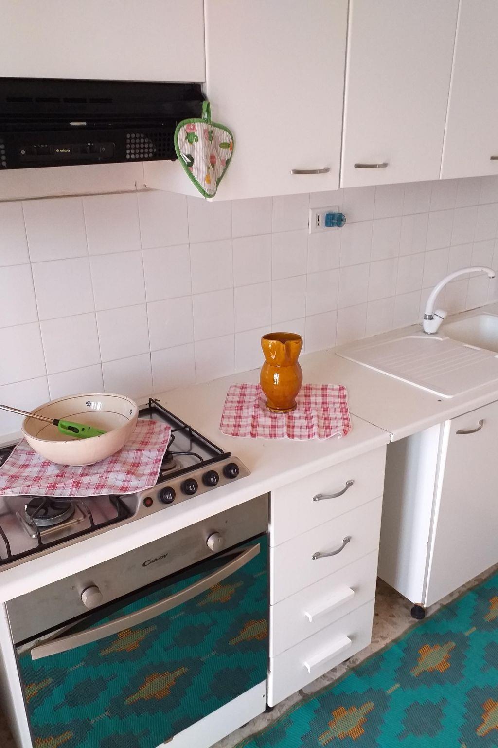 The interior of this residence can accommodate up to 10 guests with all the necessary comforts, including an annexe. The flat has two spacious bedrooms, one with a double bed and the other with three single beds with the possibility of adding an extra bed on request. In order to ensure maximum comfort regardless of the season, each room is equipped with air conditioning and heating. The practical and fully equipped kitchen, together with the supply of towels and bed linen, makes your stay even more comfortable.