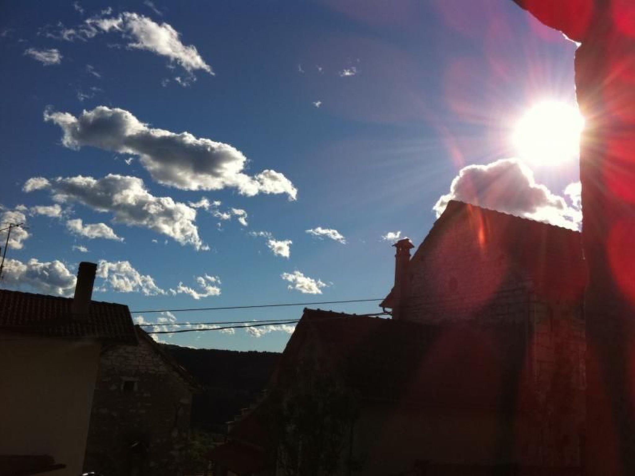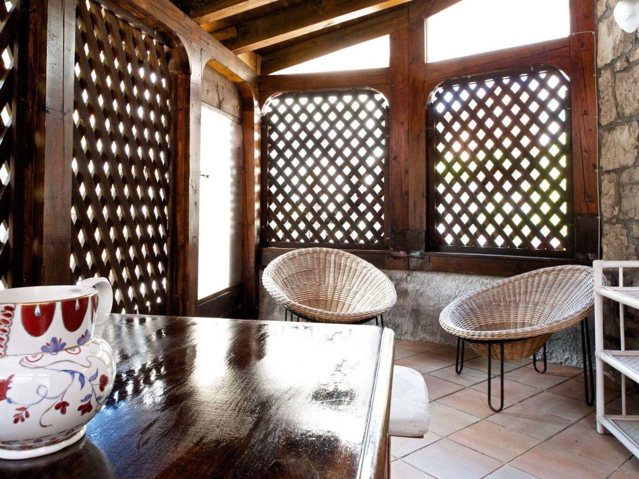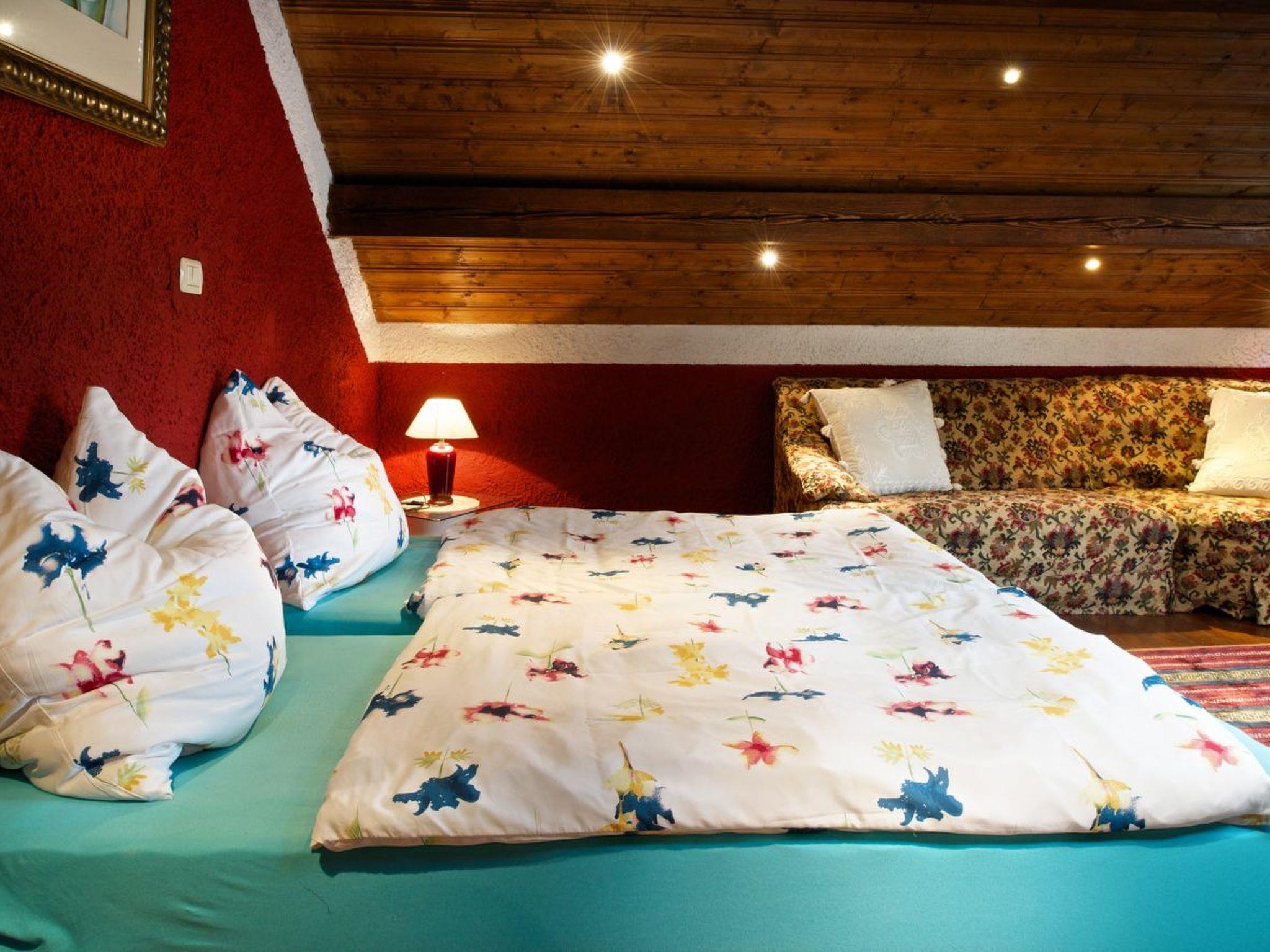 The interior of this three-storey gem is a real experience. On the ground floor, the rustically furnished living/dining room with open-plan kitchen and fireplace promises cosy hours. A highlight is the luxurious bathroom with bath, shower and jacuzzi as well as the adjoining conservatory, which is ideal for dining. The latter creates a warm atmosphere with its lovely furnishings. On the first floor there is a spacious bedroom with a large double bed, wardrobe, chest of drawers and TV, which offers a wonderful view of the mountains. The second floor serves as another living room with convertible single beds, an additional children's bed and a cosy TV corner.
