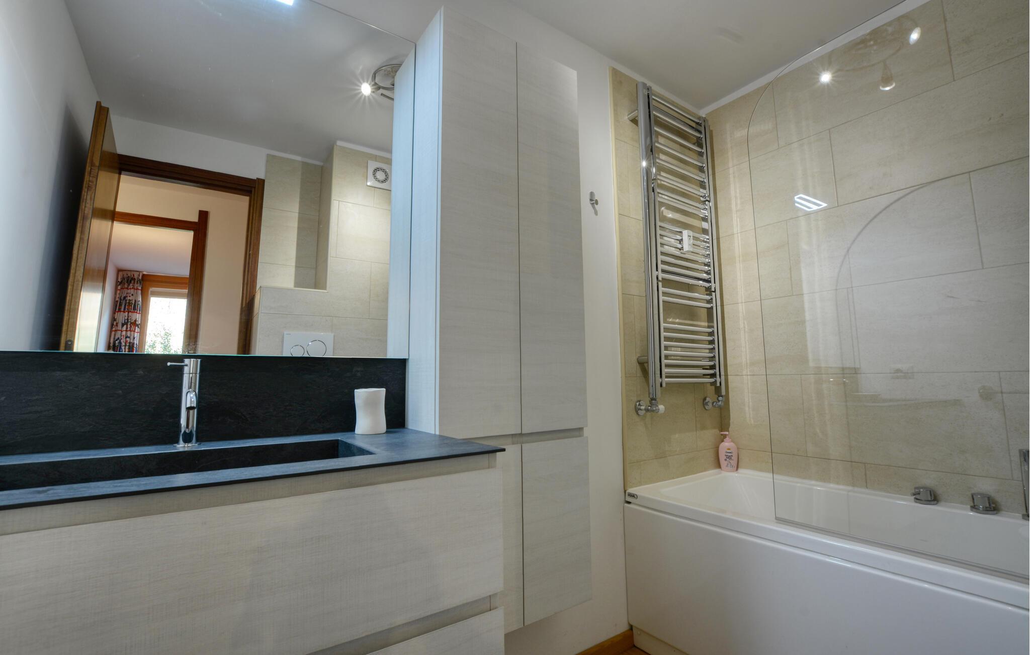 Njut av din semester i din semesterlägenhet, som utstrålar värme och mysighet. Låt blicken vandra över bergen genom de stora fönstren i vardagsrummet. Koppla av i den bekväma soffan framför den öppna spisen och njut av den lugna atmosfären. Träpanelerna på väggarna och i taket skapar en särskilt hemtrevlig känsla. Använd matbordet för gemensamma måltider eller mysiga spelkvällar. Du kan också laga dina favoriträtter på semestern i det vackra träköket.