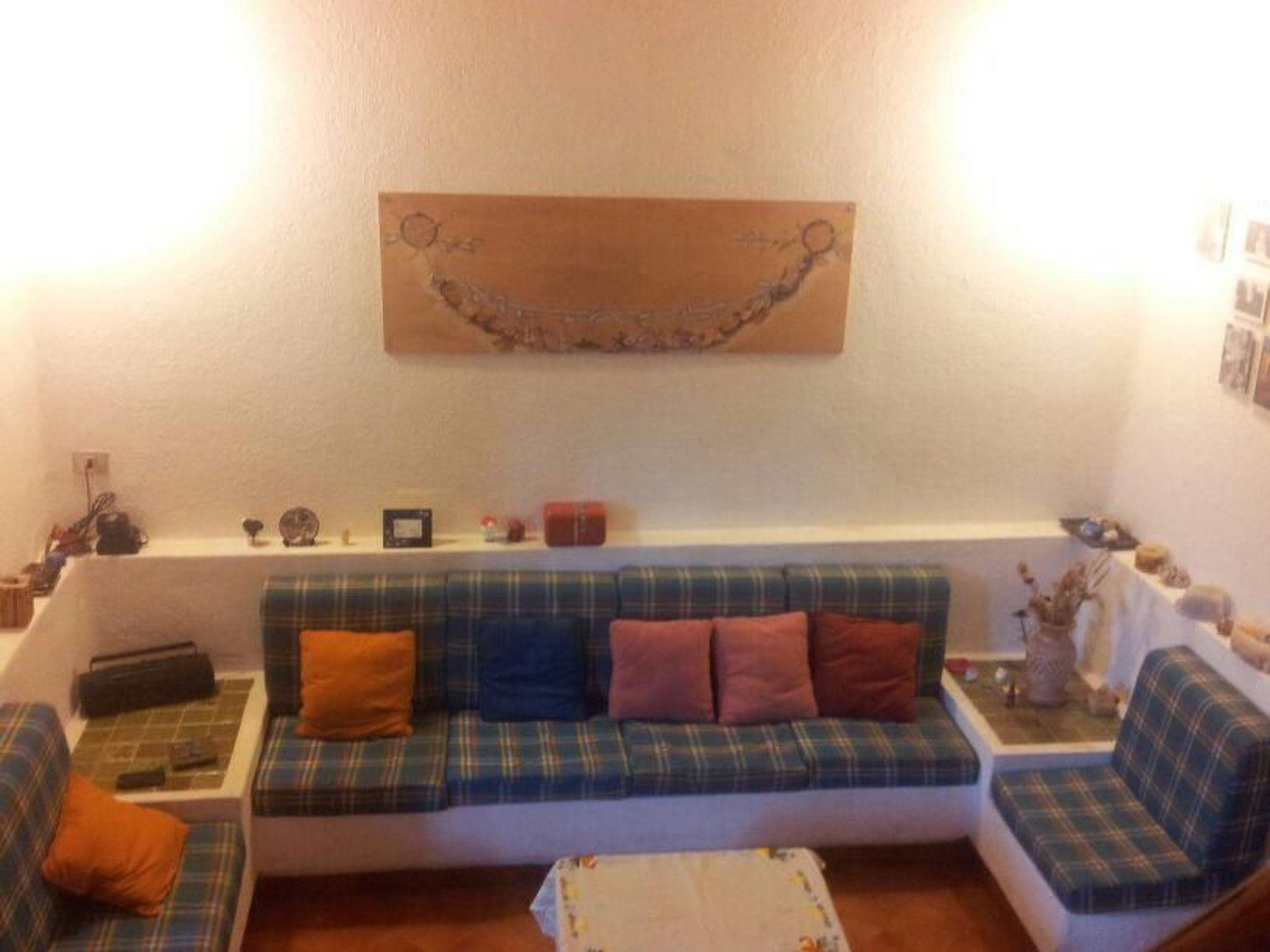 The house has a living area of approximately 130 square metres, distributed on two levels. The ground floor comprises the entrance area with a large living room furnished with simplicity and elegance, the dining room, the kitchen, a utility room and a laundry room with washing machine. The kitchen is fully equipped with dishes, glasses, pots and pans, dishwasher, oven and microwave. The living and dining area has air conditioning, TV (satellite decoder available at an extra charge) and a fireplace. On this level there is also a double bedroom (160 x 190 cm) with air conditioning and a bathroom with shower. On the upper floor there is a bathroom with bathtub, a hallway, a small balcony overlooking the large garden and three bedrooms, two of which have double beds (160 x 190 cm), Sardinian-style furniture, large wardrobes and chests of drawers. The third bedroom has a bunk bed and two single beds (80 x 190 cm). The entire house is equipped with heating. All rooms, except the kitchen, are air-conditioned. Internet access via Wi-Fi is available.