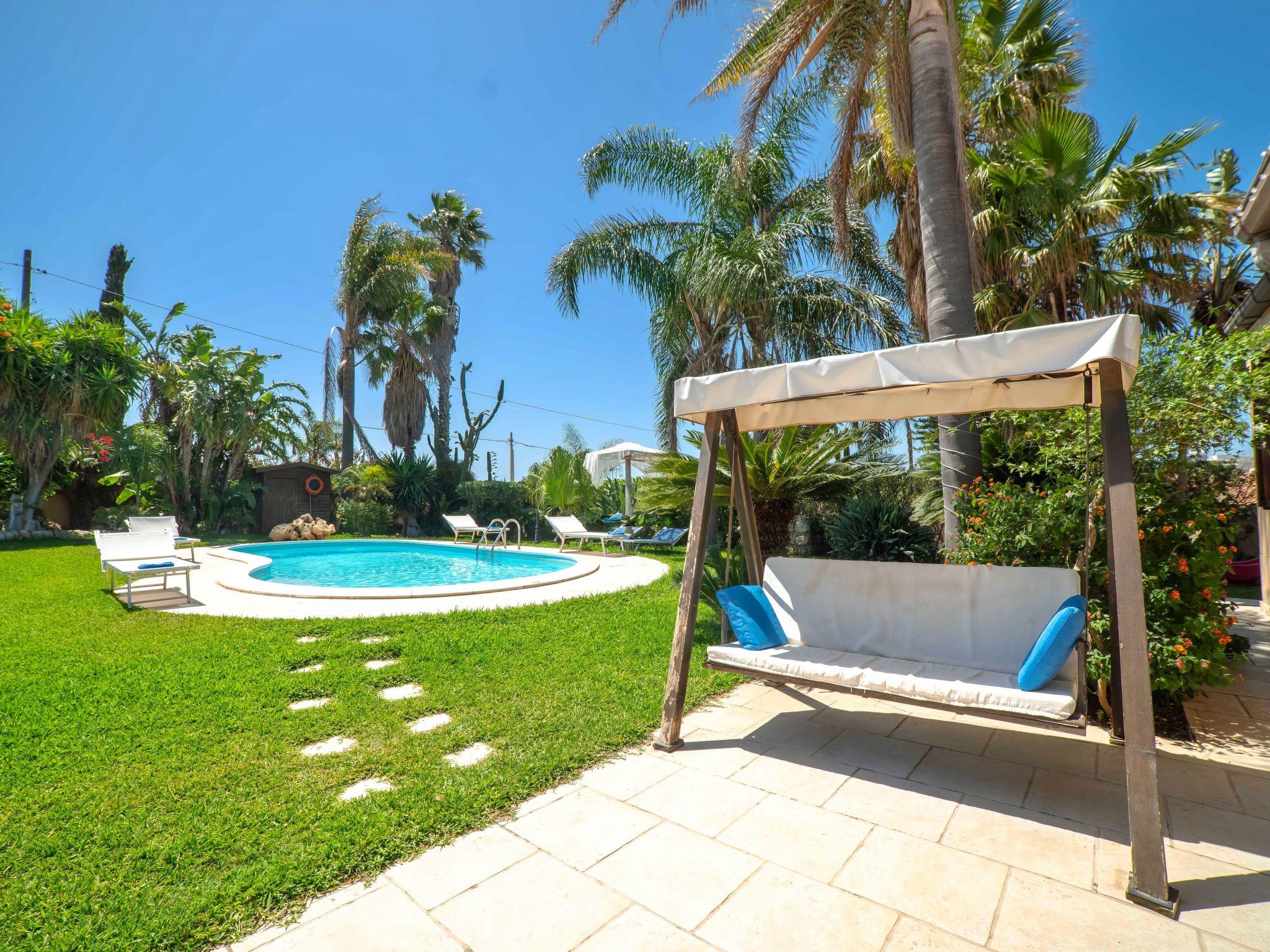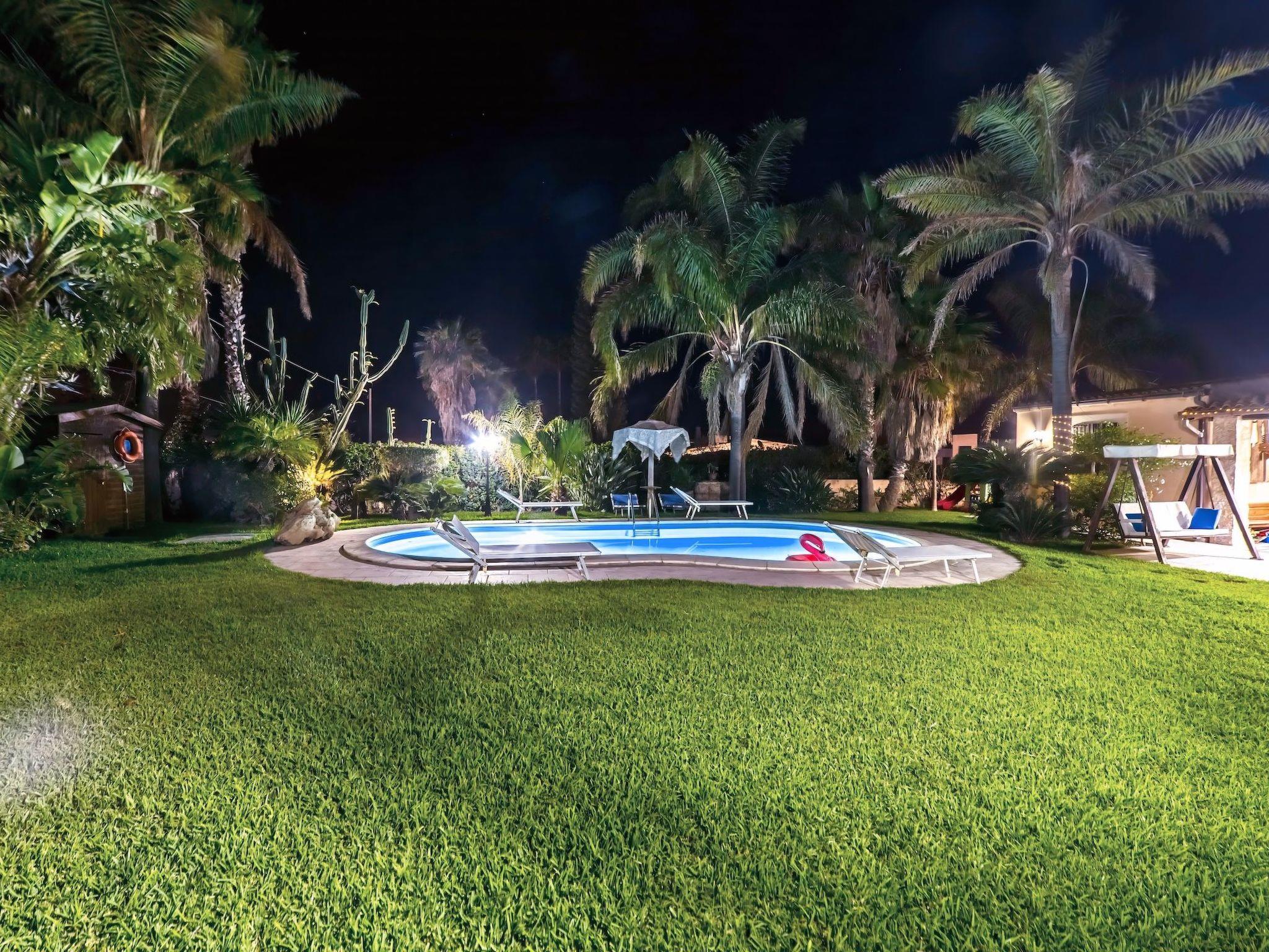The house is immersed in a garden with tropical and Mediterranean plants, including the highly perfumed jasmine, of over 1000 square metres, and where there is also the elegant swimming pool area surrounded by a green lawn.