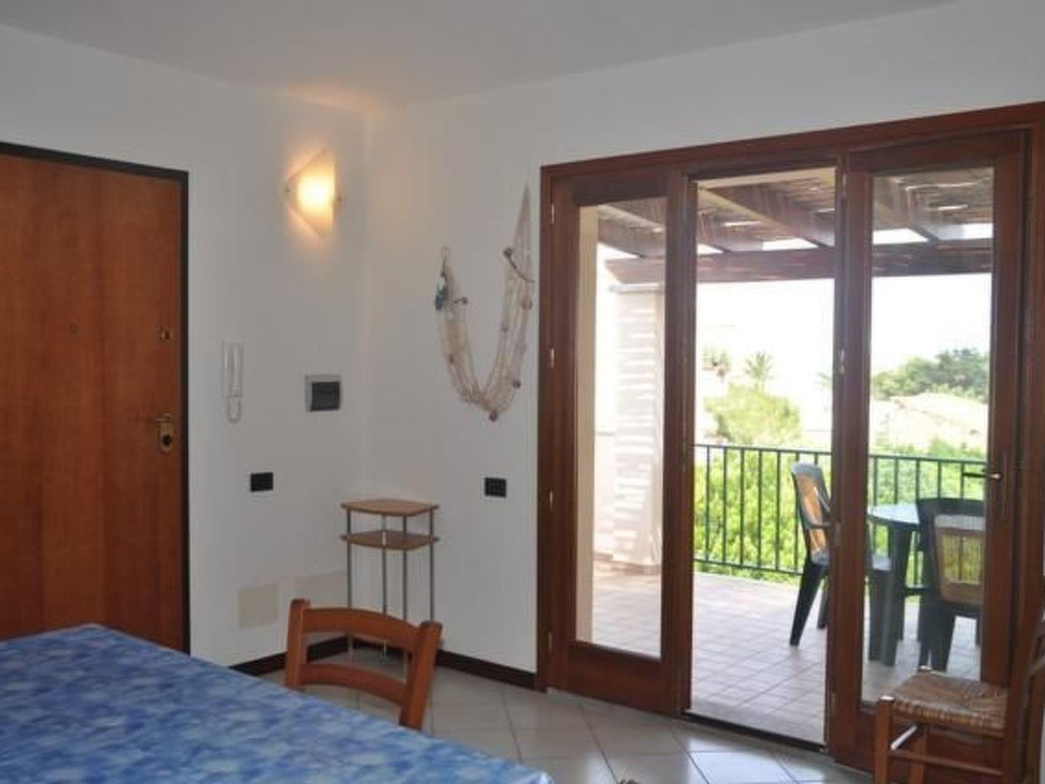 Outside, a covered terrace accessible from the living room and furnished with a table and four chairs invites guests to panoramic dinners overlooking the island of Carloforte. A small gate shares access to the gated property with the owner, who lives on the ground floor where there is also a washing machine and an outdoor shower for guests.