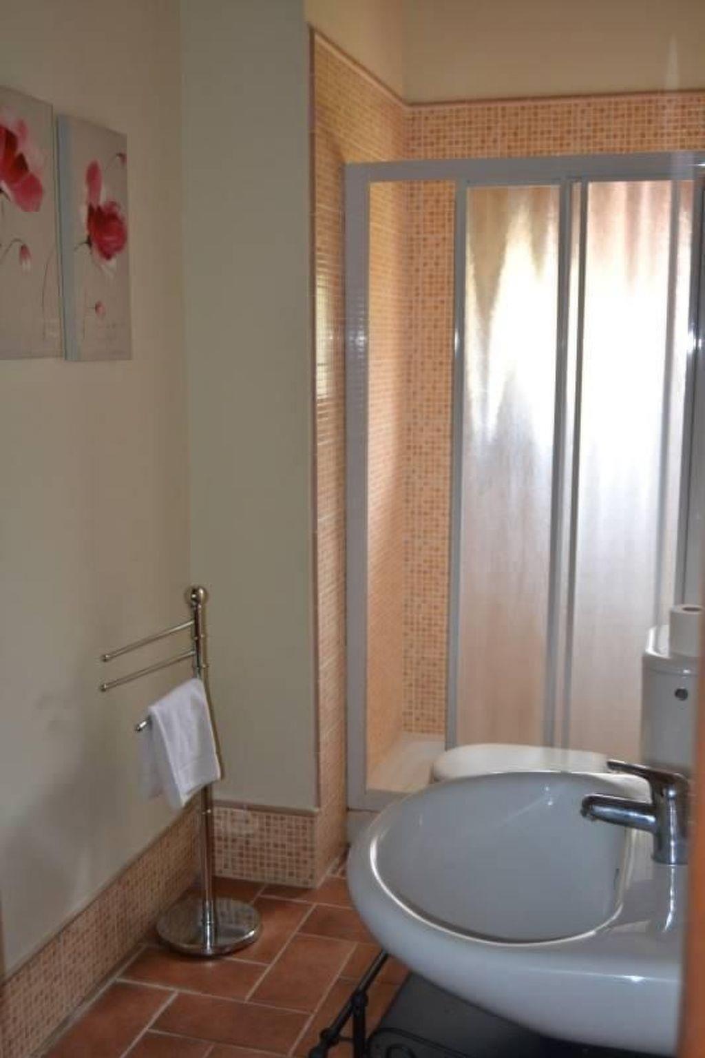 VILLA NR 42 (mq 70) 4/6 people Independent flat (about 70 mq) on the ground floor with a large garden with patio (about 450 mq) equipped with table, chairs, sofas and barbecue. The flat has a living room with dining area and kitchenette (the kitchenette has 4 cooking zones, oven, fridge and freezer, as well as all the necessary crockery), TV and double sofa bed, two bathrooms with shower, two double bedrooms. It is equipped with a dishwasher, washing machine, air conditioning with extra charge .