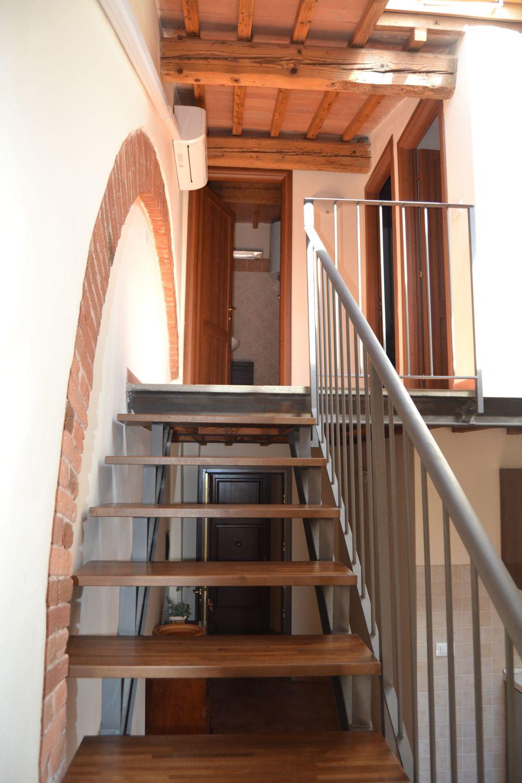 The apartments over 2 levels have a living room with dining area and kitchenette, TV and sofa (the kitchen has hob with 4 zones, oven, fridge and freezer, as well as all necessary utensils), bathroom with shower. On the upper floor one mansarded double bedroom with sloping ceilings and 1 smaller mansarded bedroom with sloping ceilings with 2 beds .It is equipped with air conditioning available with extra cost .