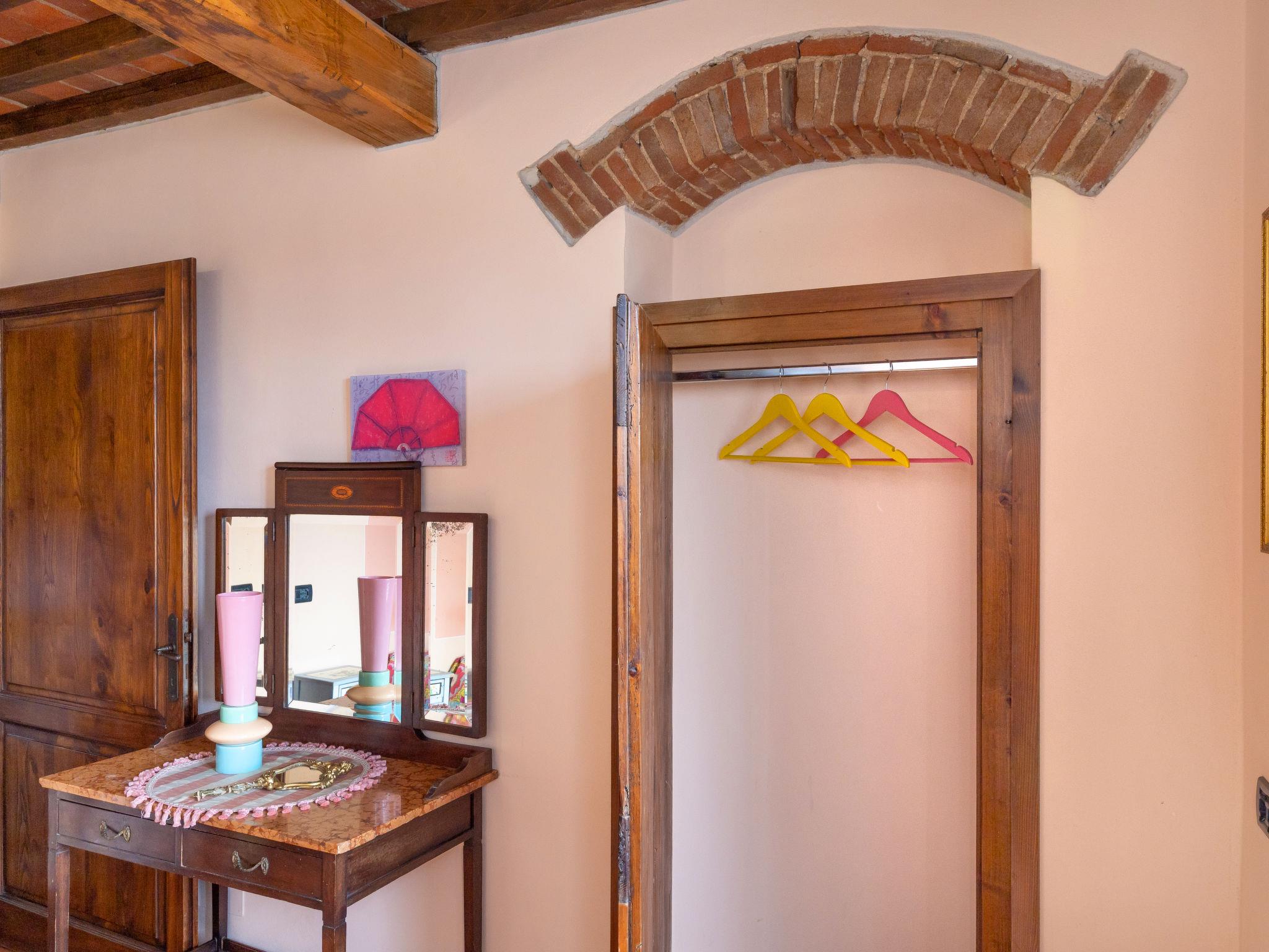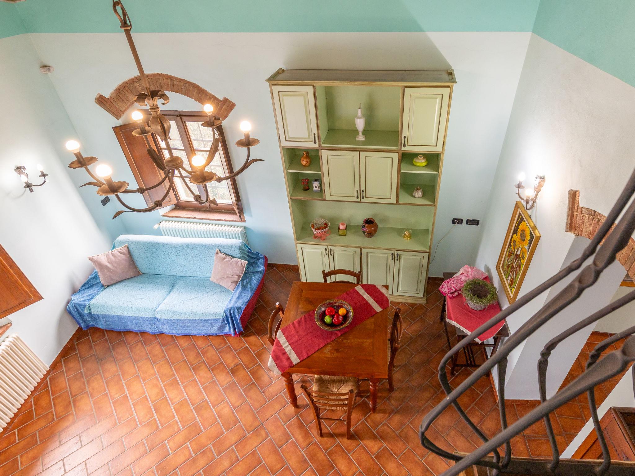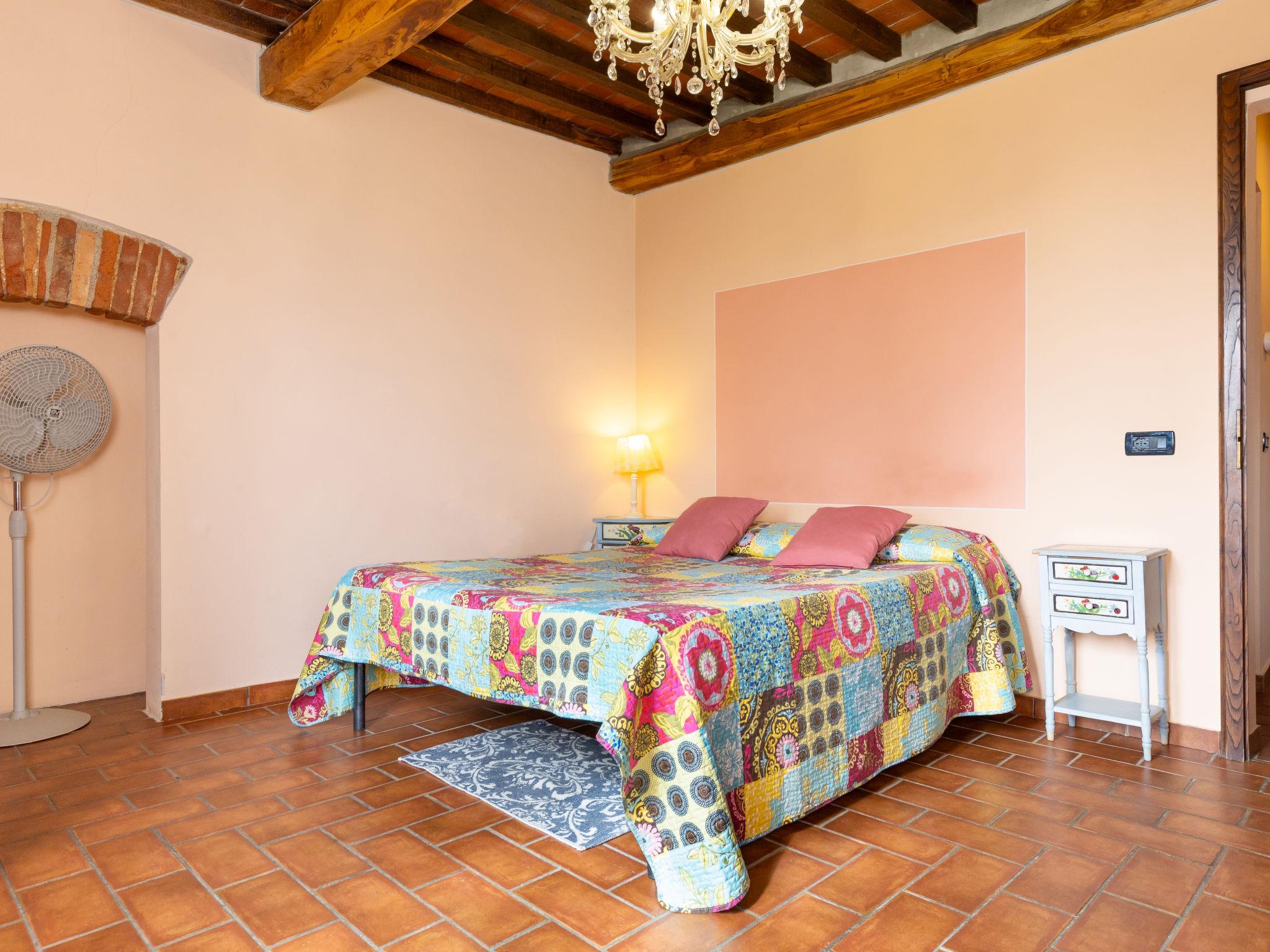 "Rosa", 4-room apartment 95 m2 on 2 levels. Spacious, practical furnishings: upper floor: (exterior staircase) living/sleeping room with 1 double sofabed. 1 double bedroom with 1 double bed. Kitchen (Gas stove, 4 gas rings, toaster, kettle, microwave, electric coffee machine) with dining table. Shower/bidet/WC. Gas heating. 2nd upper floor: with sloping ceilings, 1 room with 2 beds, 1 double bed and air conditioning. Shower/bidet/WC. Patio roofed. Terrace furniture, barbecue. Beautiful view of the countryside. Facilities: washing machine, mosquito net, baby cot for up to 2 year olds, hair dryer. Internet (WiFi, free). Please note: maximum 2 pets/ dogs allowed. Private entrance, smoke alarm, fire extinguisher. Bed layout is flexible. There are more sleeping options available than the maximum number of people allowed which may, however, not be exceeded. IT049002B4T45ZPEMA