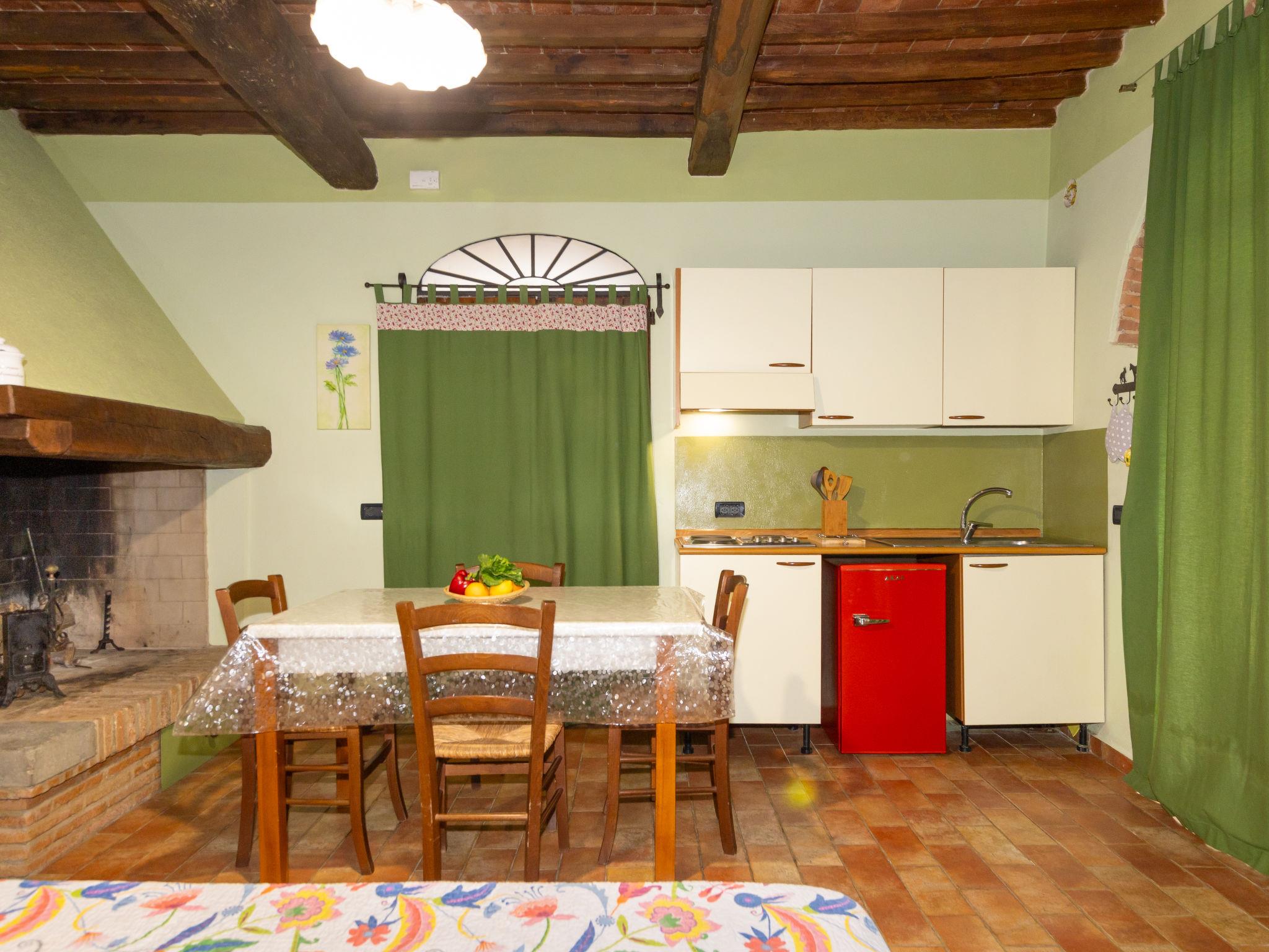 "Iris", 1-room apartment 38 m2, on the ground floor. Practical furnishings: living/sleeping room with 1 bed, 1 double bed and open-hearth fireplace. Exit to the terrace. Kitchenette (Gas stove, 4 gas rings, toaster, kettle, microwave, electric coffee machine). Shower/bidet/WC. Gas heating, air-conditioning. Terrace roofed. Terrace furniture, barbecue. Beautiful view of the countryside. Facilities: washing machine, mosquito net, baby cot for up to 2 year olds, hair dryer. Internet (WiFi, free). Please note: maximum 2 pets/ dogs allowed. Private entrance, smoke alarm, fire extinguisher. IT049002B48SVA3DE6