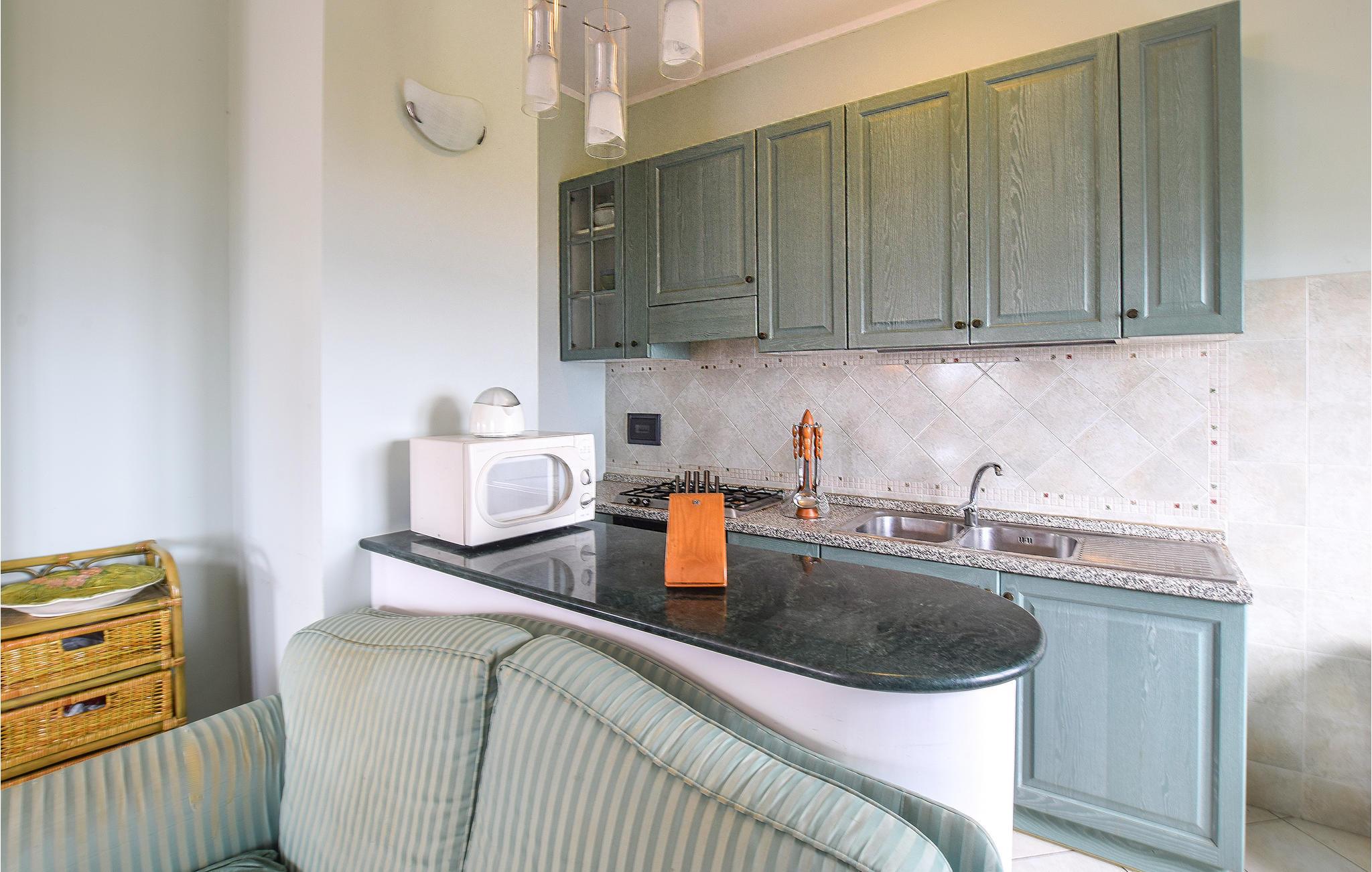 Stig in i en pittoresk semesterlägenhet som ligger på 3:e våningen i ett byggnadskomplex. Från din balkong kan du njuta av utsikten över det omgivande landskapet och havet. Inuti hittar du ett antikt möblerat men harmoniskt inrett boende med några mysiga möbler som inbjuder till samvaro. Om du inte vill köra eller gå 1 km för att uppleva stranden och svalka dig i havet finns det en gemensam utomhuspool.