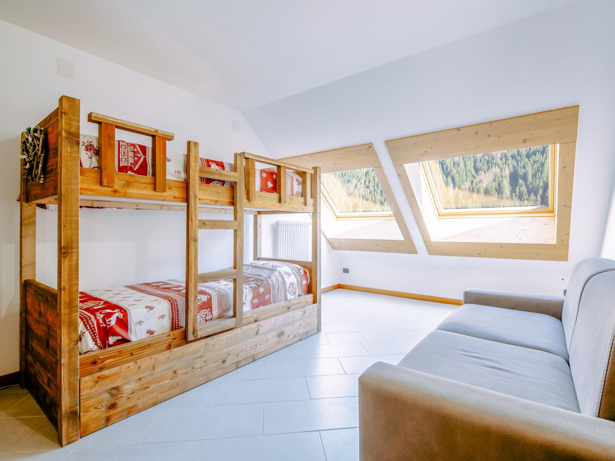 "Torrita di Canazei", 2-room apartment on 3rd floor. With sloping ceilings, fully renovated in 2022, modern and tasteful furnishings: 1 double bedroom with bath/bidet/WC and hydro massage bath. Living room with 1 bed, 1 double sofabed and shower/bidet/WC. Kitchen (oven, dishwasher, 4 induction hot plates, microwave) with dining table, TV (flat screen). Box-room. View of the mountains. Facilities: washing machine, dryer, hair dryer. Parking space n 36 (roofed). Please note: suitable for families. Non-smokers only. Fire extinguisher. IT022039C2CF59RWH5