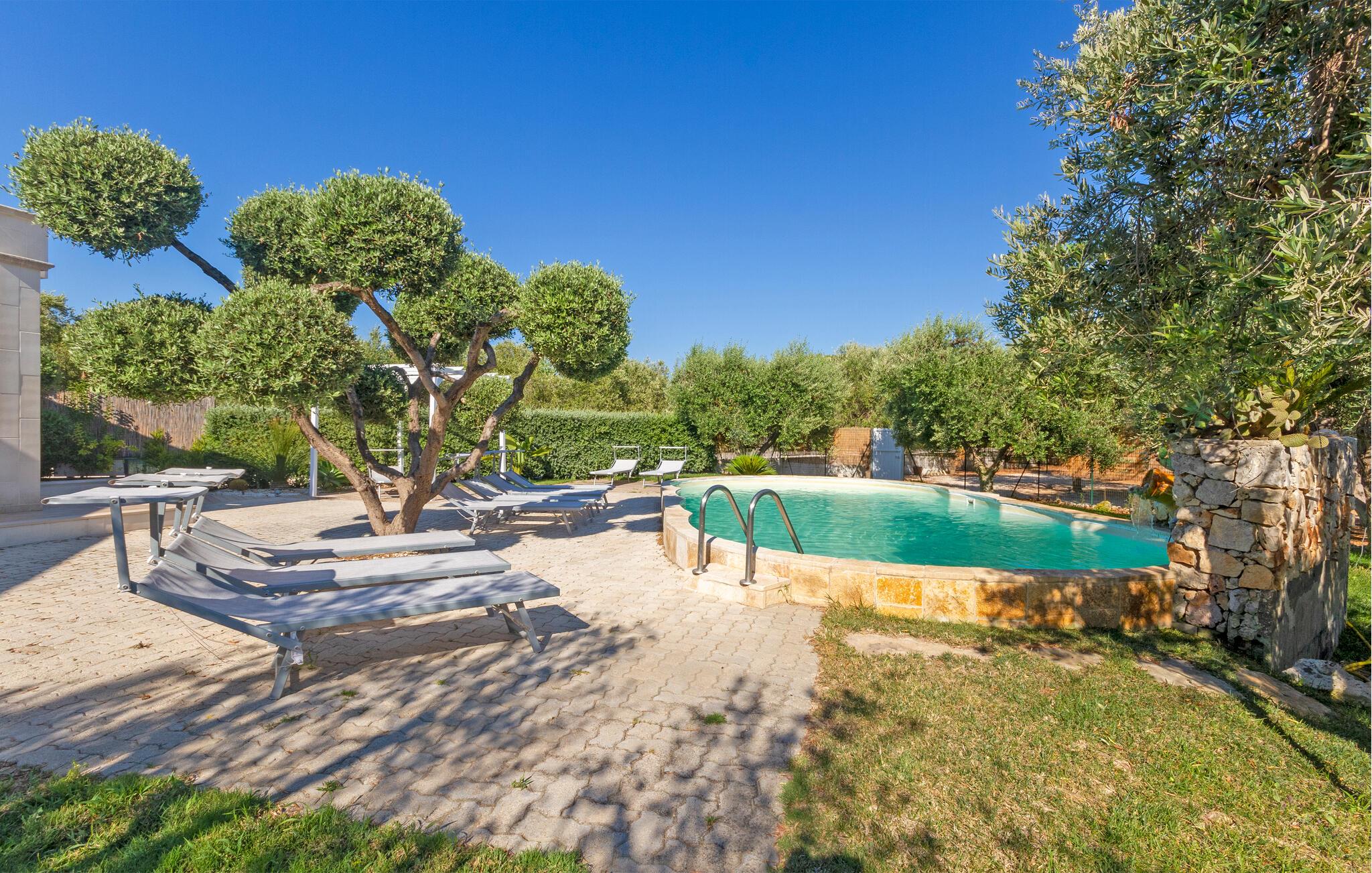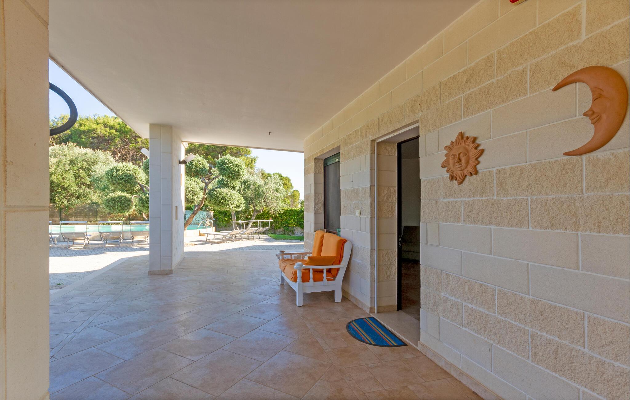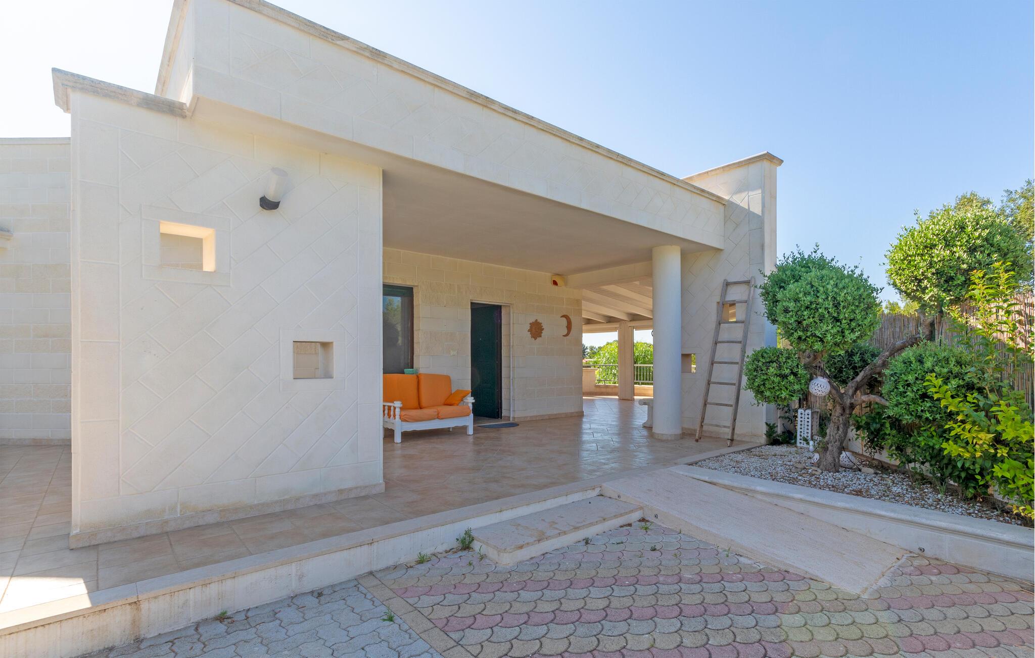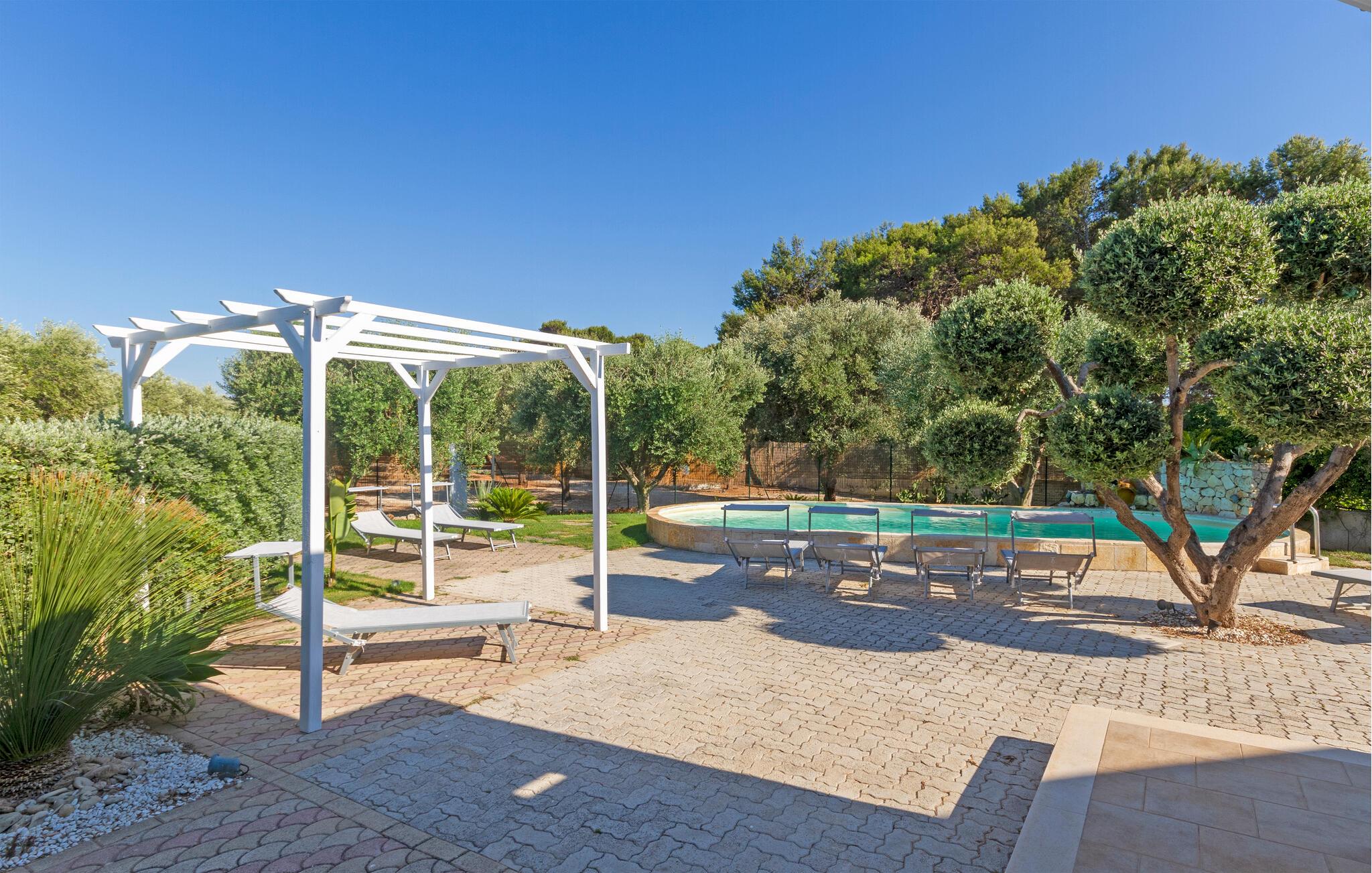 Njut av strandlivet och åk på spännande utflykter. I närheten ligger det skyddade marina området och naturreservatet Torre Guaceto, ett av de mest oförstörda hörnen i Puglia, fullt av sandstränder och klippiga vikar som också kan nås med cykel. Besök staden Carovigno med gamla anor och Ostuni, en berömd medeltida by med sina karakteristiska vita hus, som är rik på historiska referenser, restauranger och vinbarer och evenemang. I området finns också hamnstaden Brindisi och gamla historiska byar som Alberobello, Martina Franca och Cisternino. I den närbelägna staden Fasano finns ett safarizoo, ett riktigt nöje för hela familjen. Om du föredrar en cykeltur kan du utforska de vackra naturomgivningarna och besöka flera gårdar där du kan smaka och köpa lokala produkter som olivolja, vin, pasta och andra världsberömda kulinariska delikatesser.