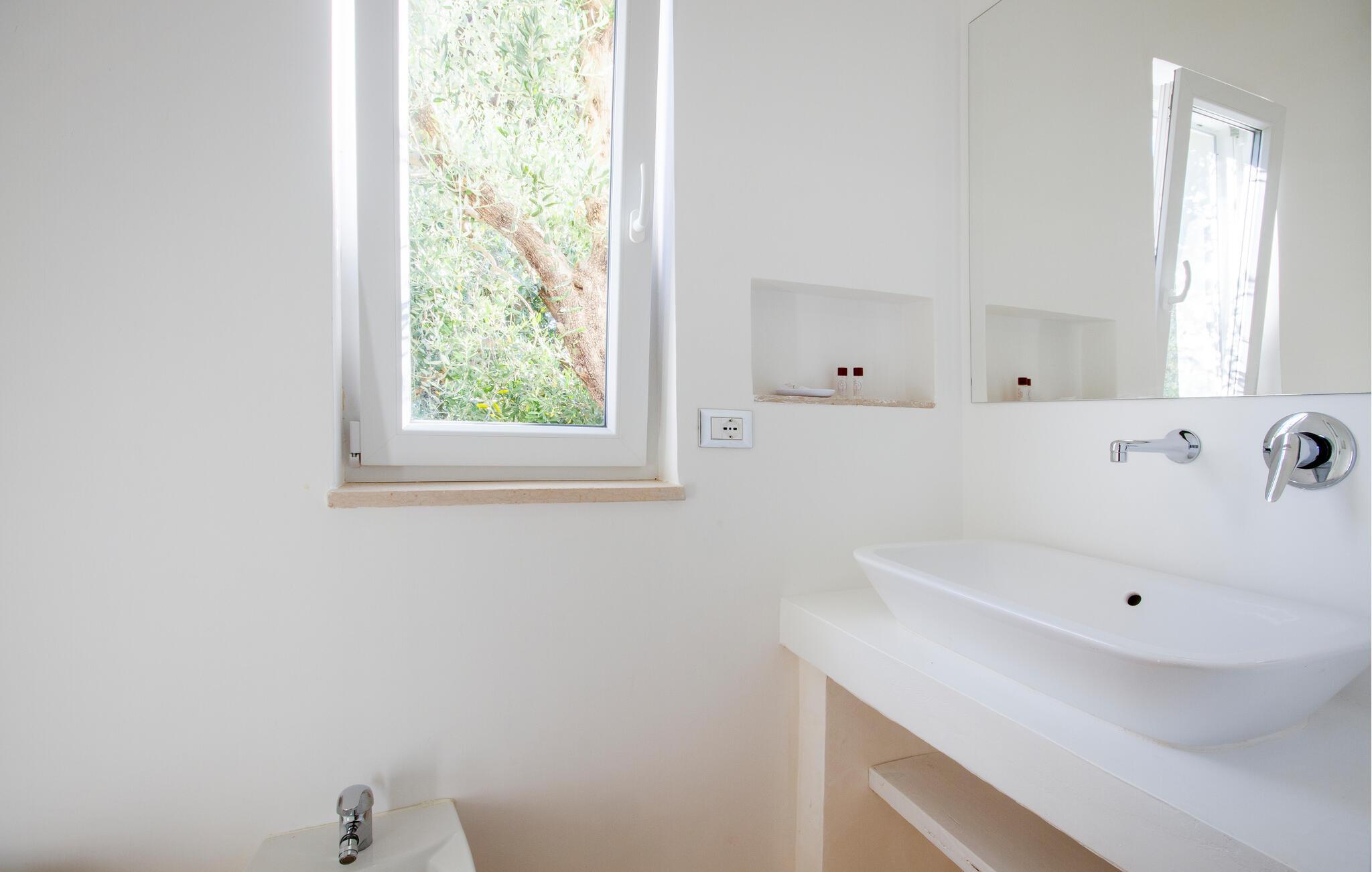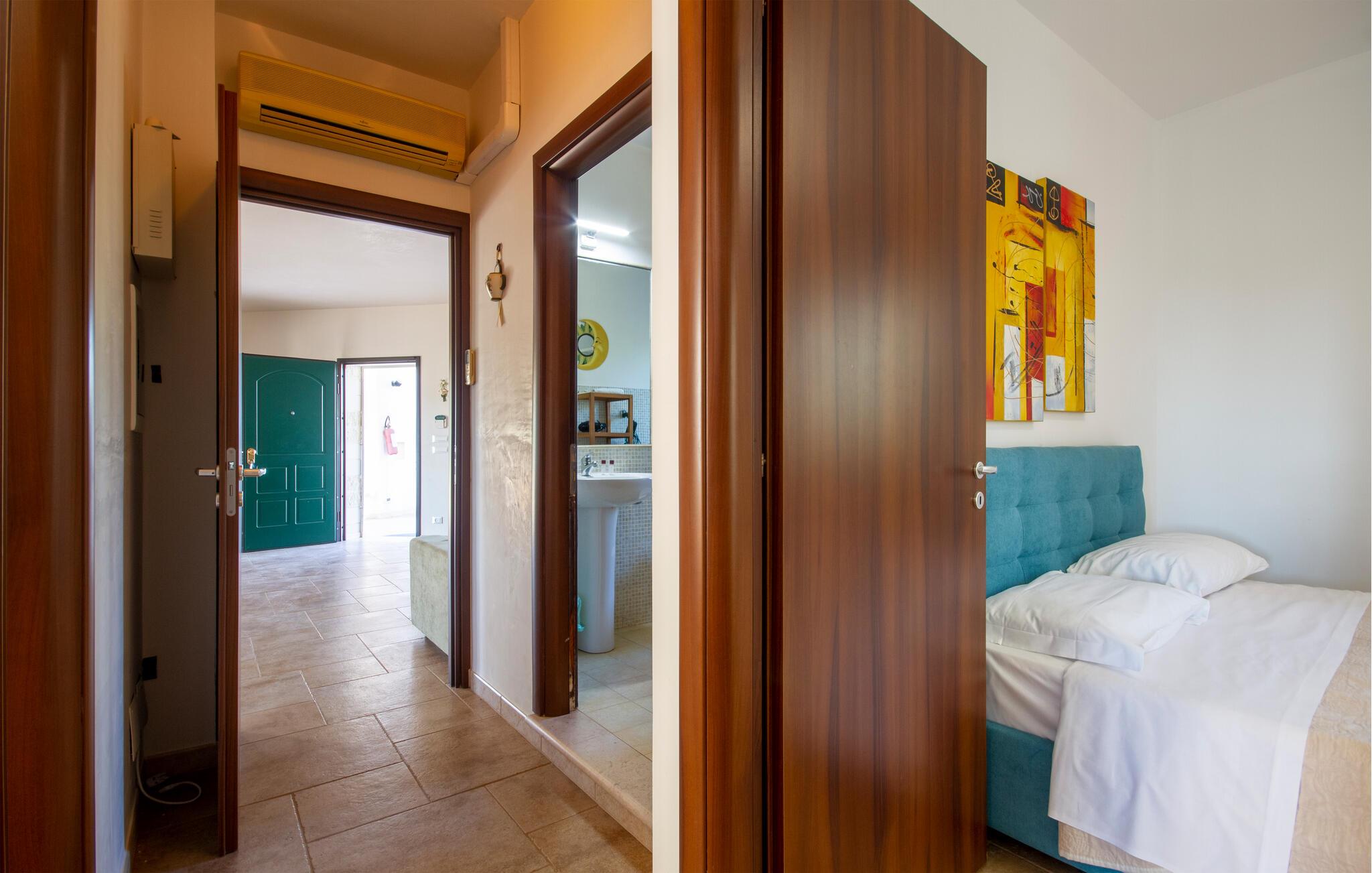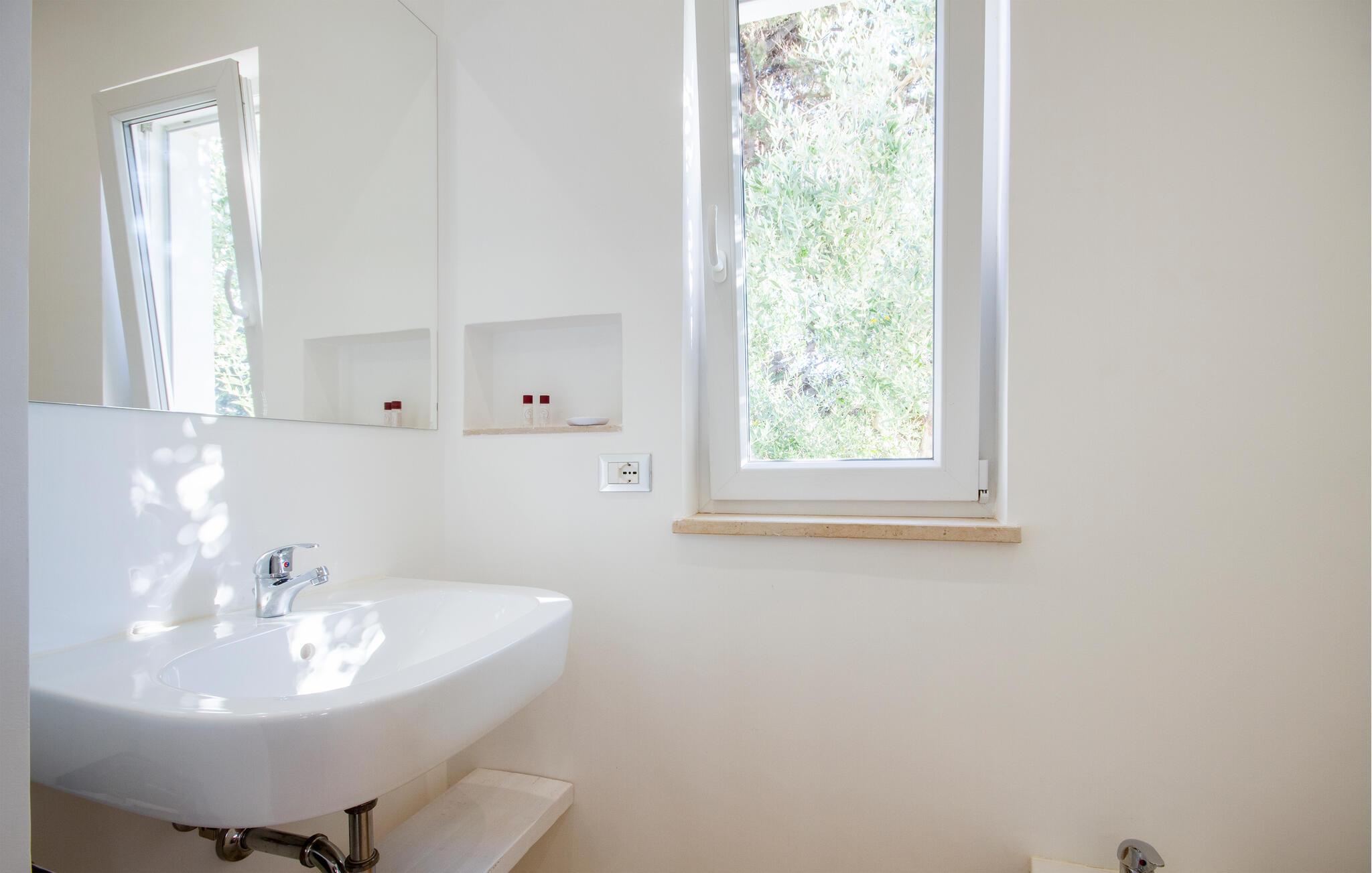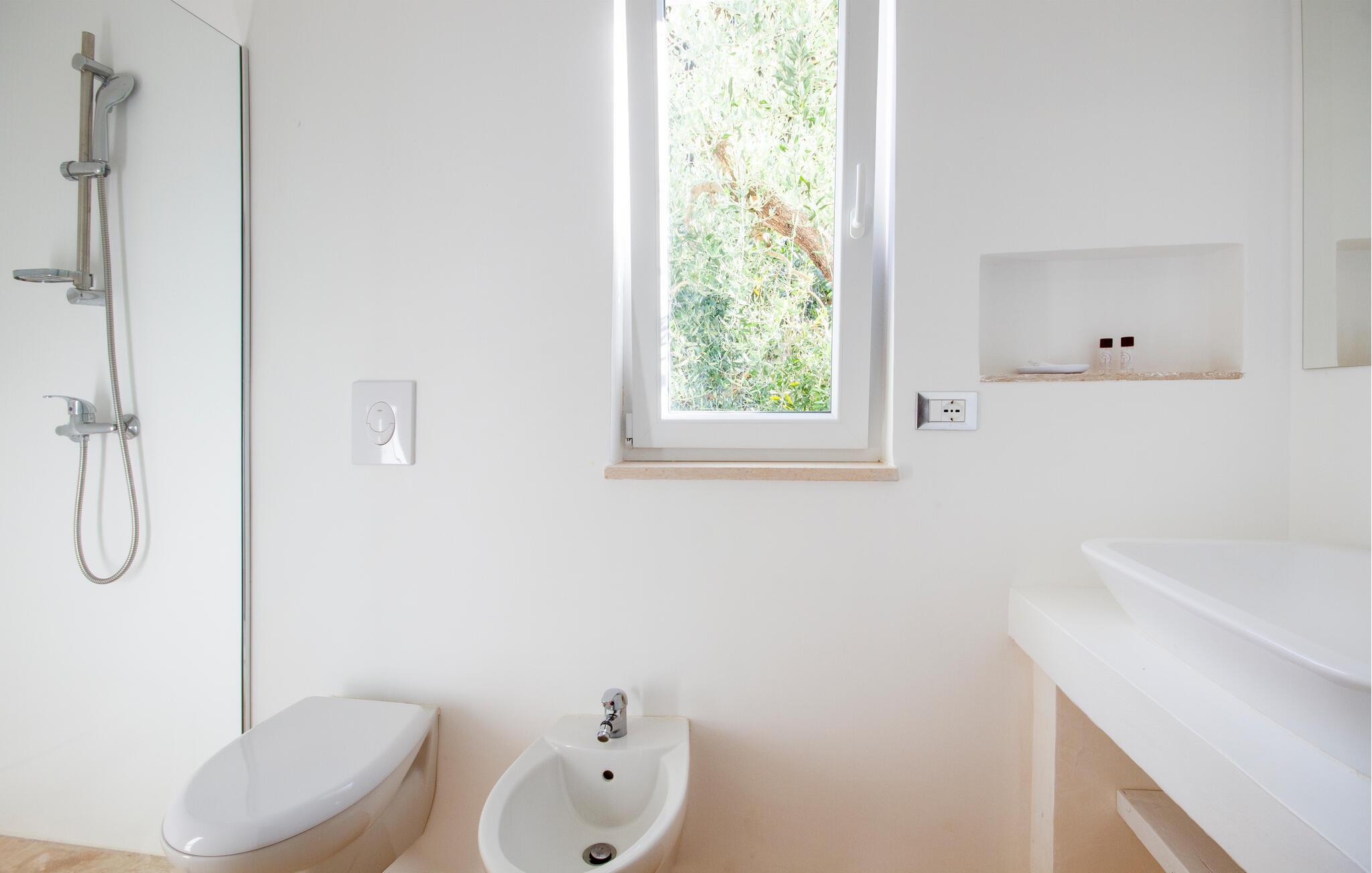 Njut av strandlivet och åk på spännande utflykter. I närheten ligger det skyddade marina området och naturreservatet Torre Guaceto, ett av de mest oförstörda hörnen i Puglia, fullt av sandstränder och klippiga vikar som också kan nås med cykel. Besök staden Carovigno med gamla anor och Ostuni, en berömd medeltida by med sina karakteristiska vita hus, som är rik på historiska referenser, restauranger och vinbarer och evenemang. I området finns också hamnstaden Brindisi och gamla historiska byar som Alberobello, Martina Franca och Cisternino. I den närbelägna staden Fasano finns ett safarizoo, ett riktigt nöje för hela familjen. Om du föredrar en cykeltur kan du utforska de vackra naturomgivningarna och besöka flera gårdar där du kan smaka och köpa lokala produkter som olivolja, vin, pasta och andra världsberömda kulinariska delikatesser.