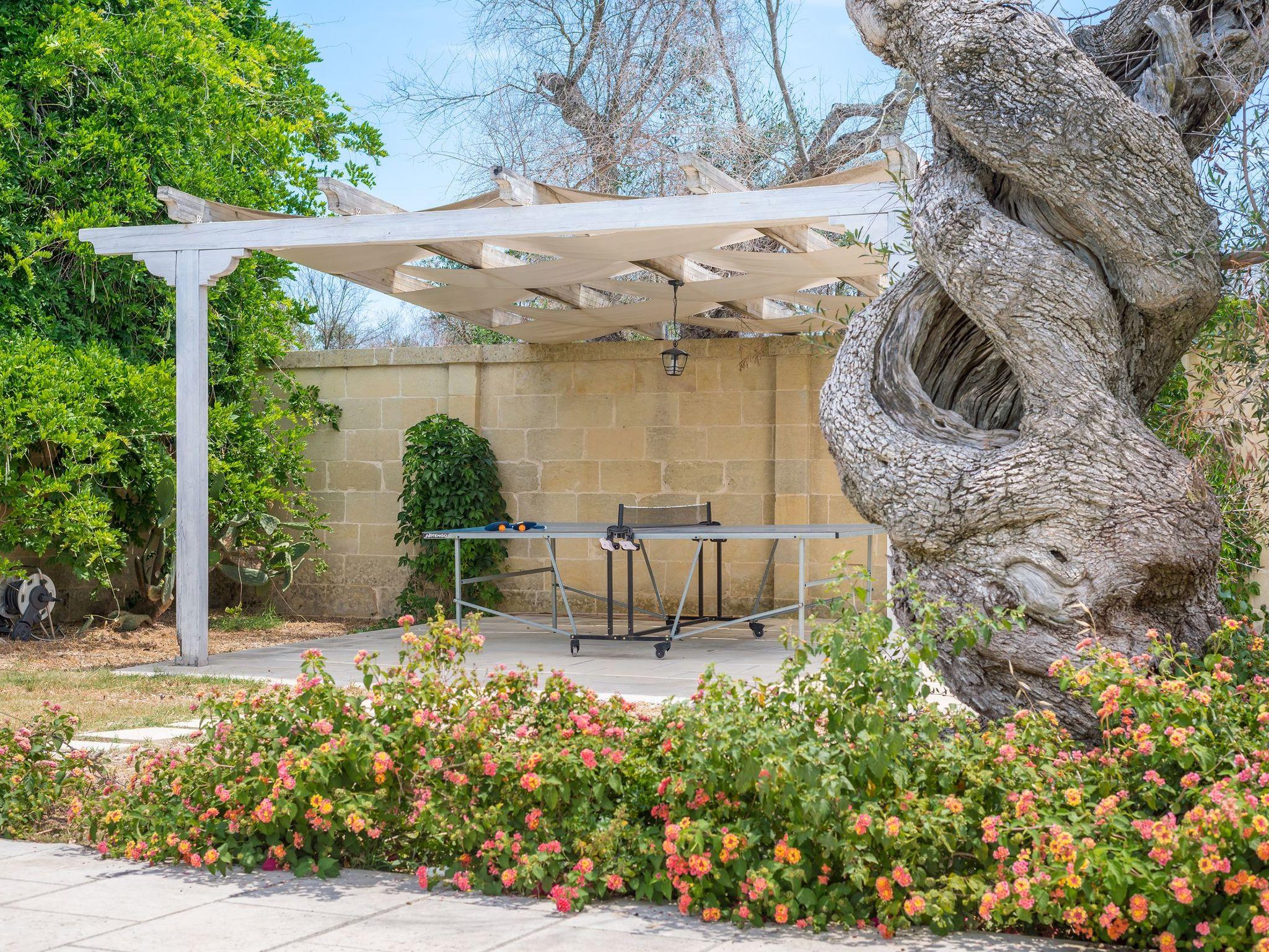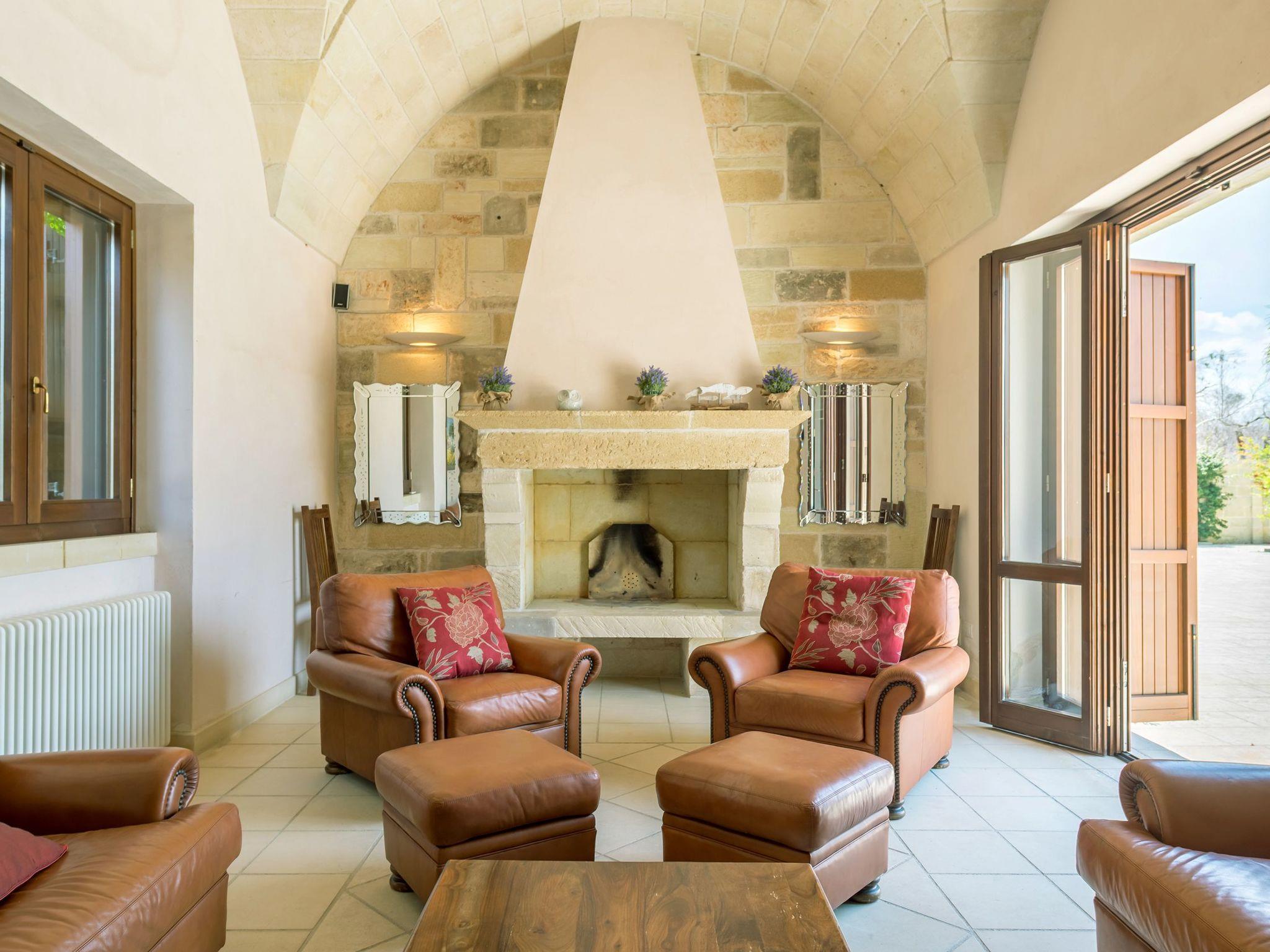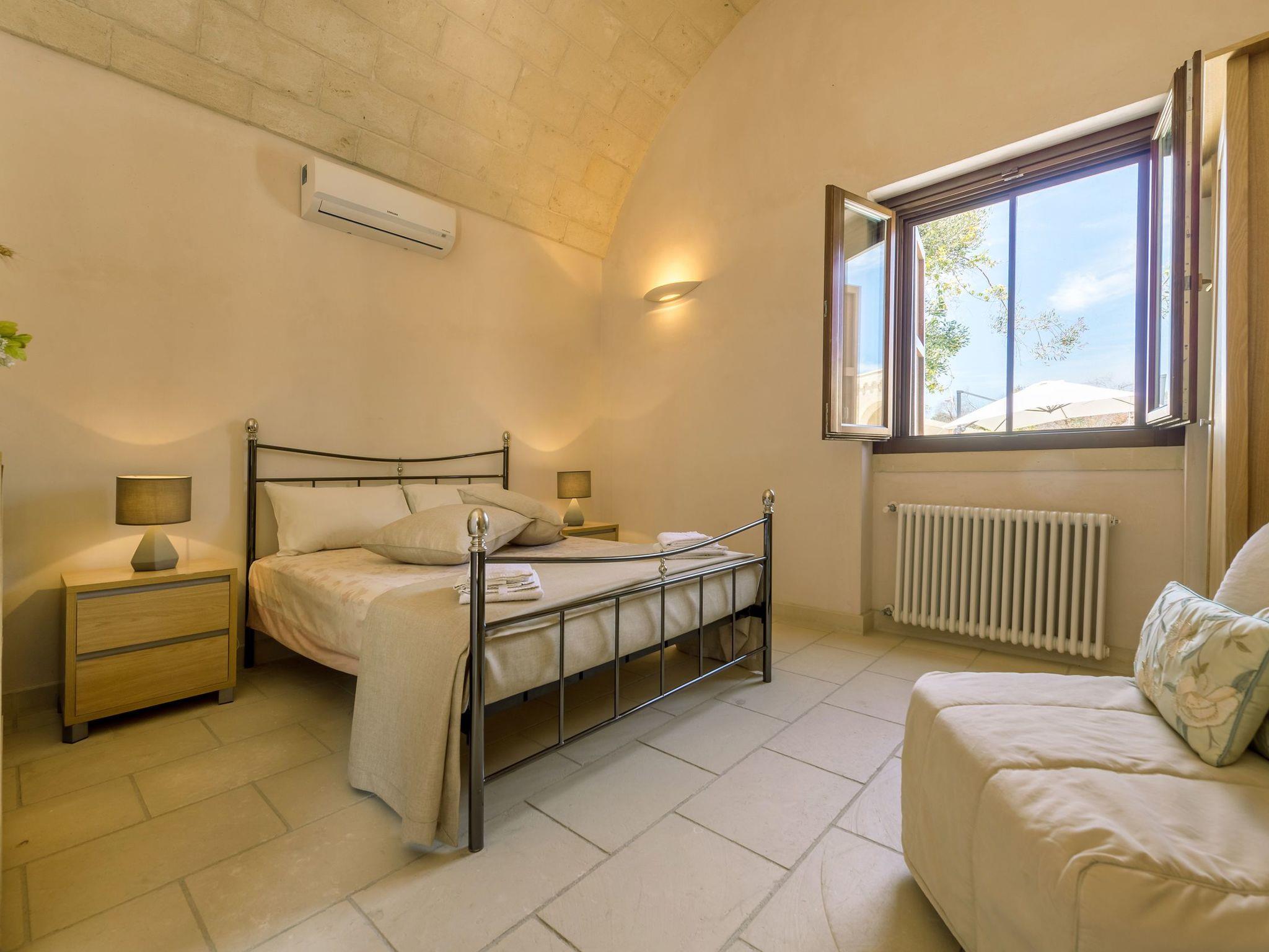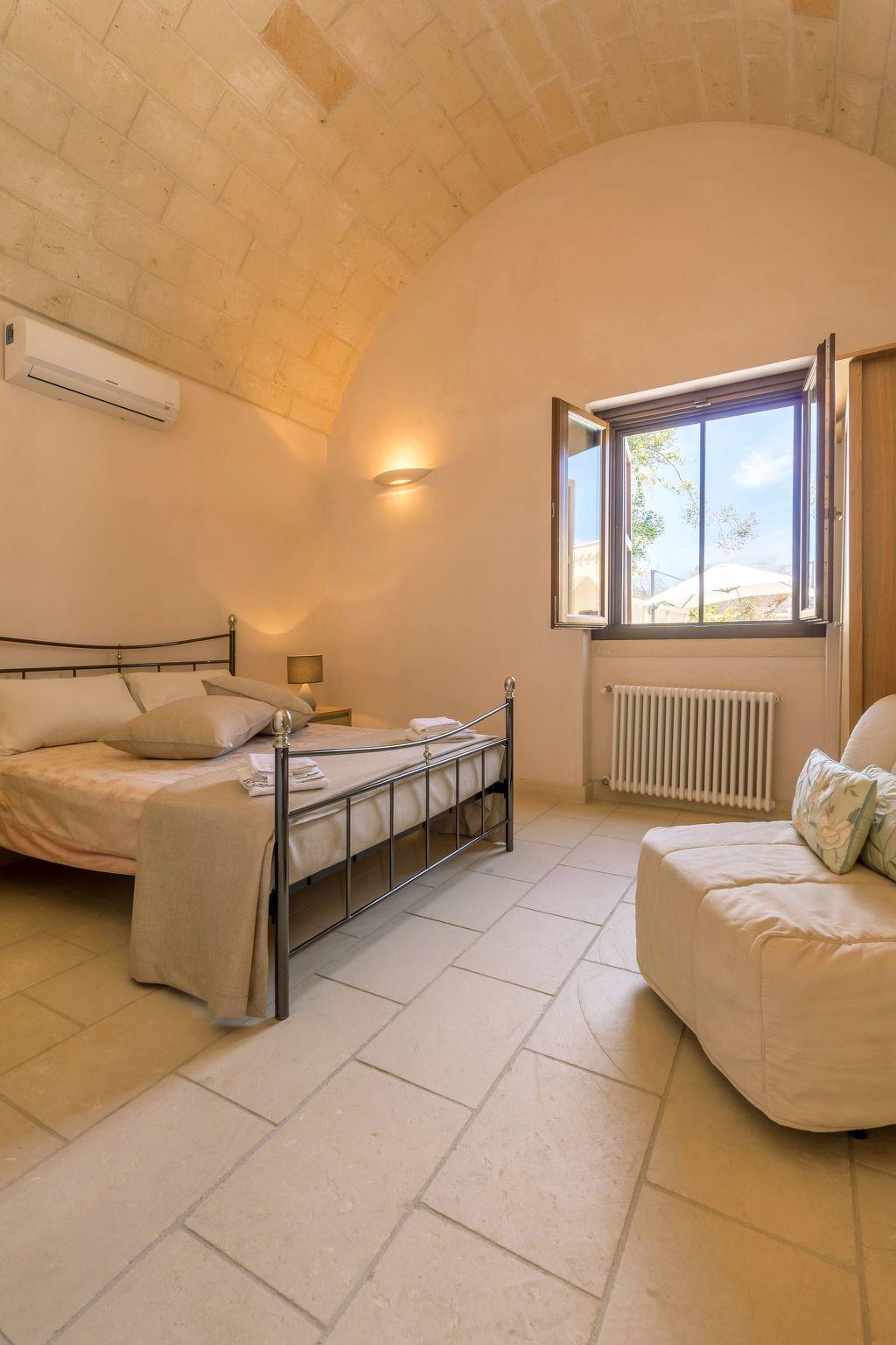 Ideal villa for those who love large spaces and maximum privacy. This property offers its visitors the typical characteristics of the ancient Salento farmhouses: central cloister, high "star" vaults, local Lecce stone. It is located in the center of a large land planted with olive groves. To make your stay more pleasant there is a beautiful swimming pool (10x5 meters) with majolica mosaic, a barbecue corner and a pizza oven with pergola for lunch or dinner outdoors.
