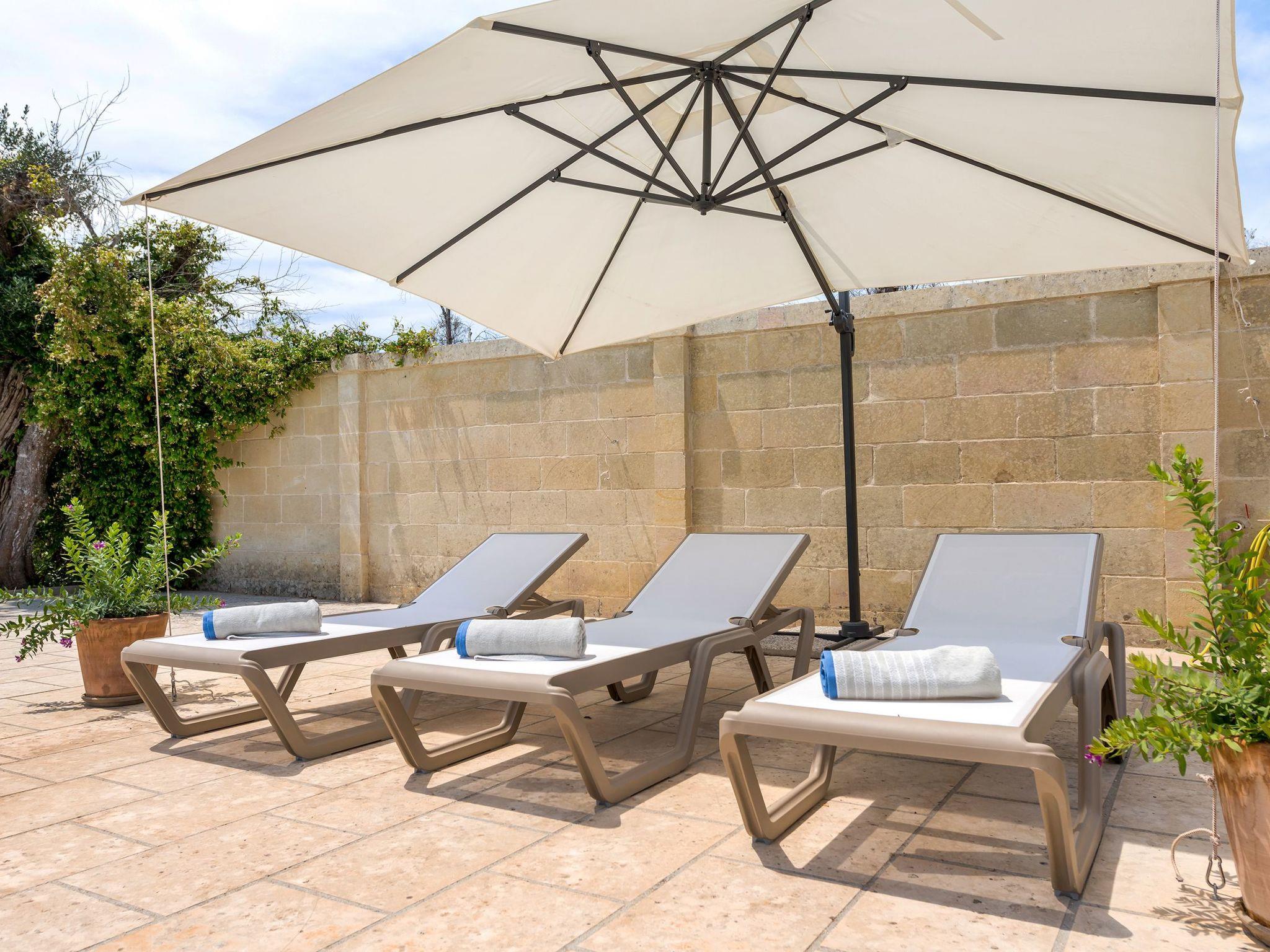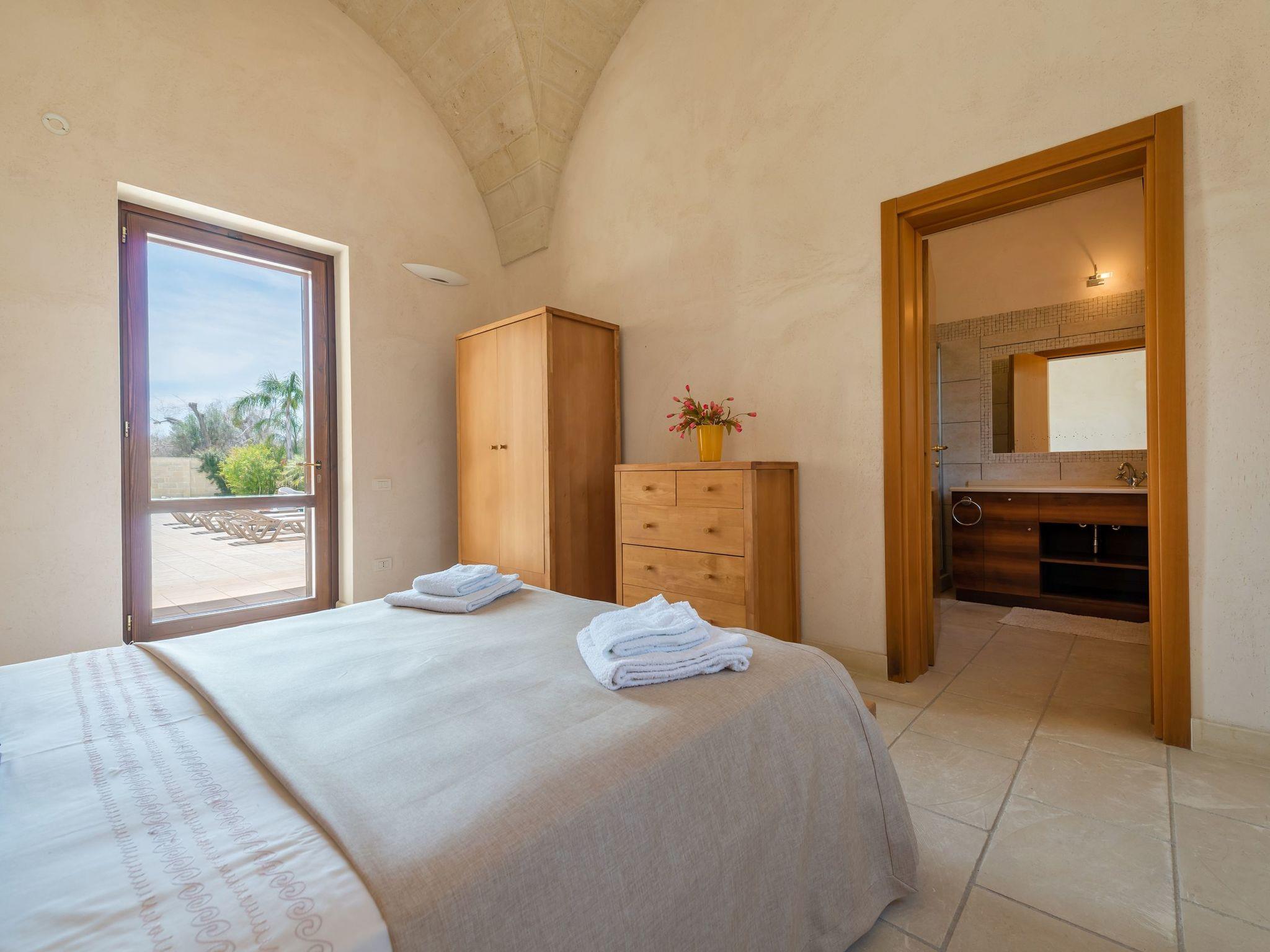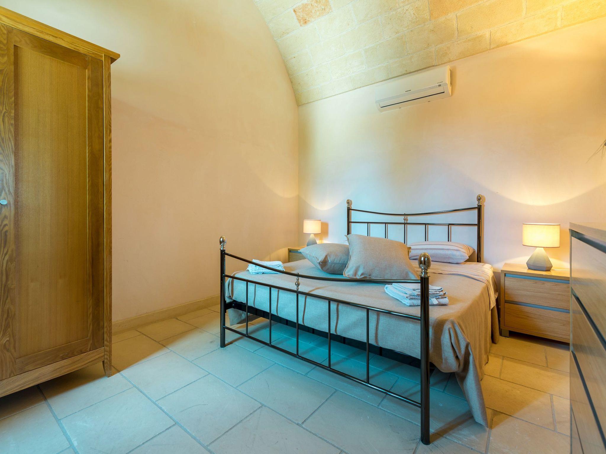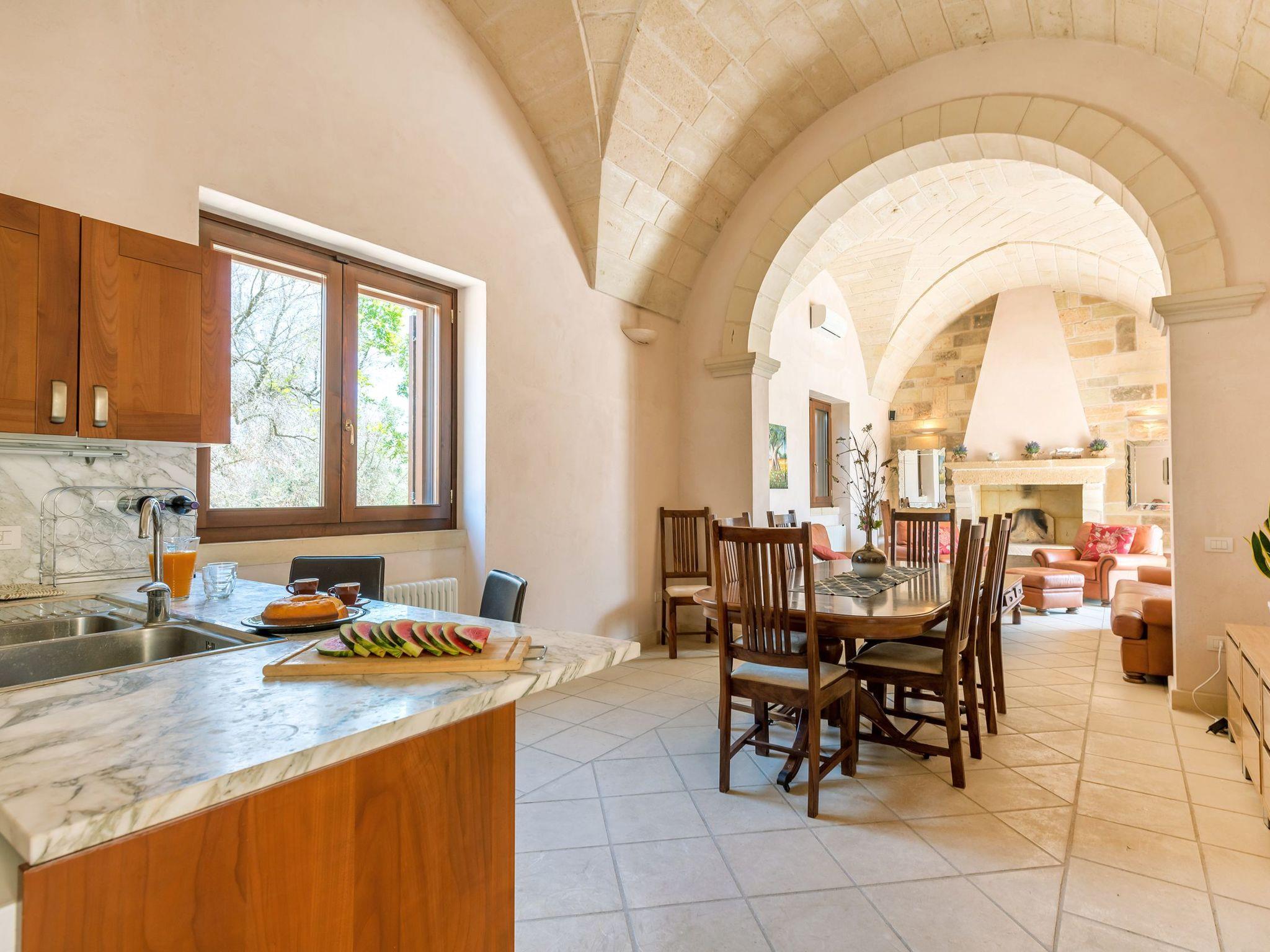 Ideal villa for those who love large spaces and maximum privacy. This property offers its visitors the typical characteristics of the ancient Salento farmhouses: central cloister, high "star" vaults, local Lecce stone. It is located in the center of a large land planted with olive groves. To make your stay more pleasant there is a beautiful swimming pool (10x5 meters) with majolica mosaic, a barbecue corner and a pizza oven with pergola for lunch or dinner outdoors.