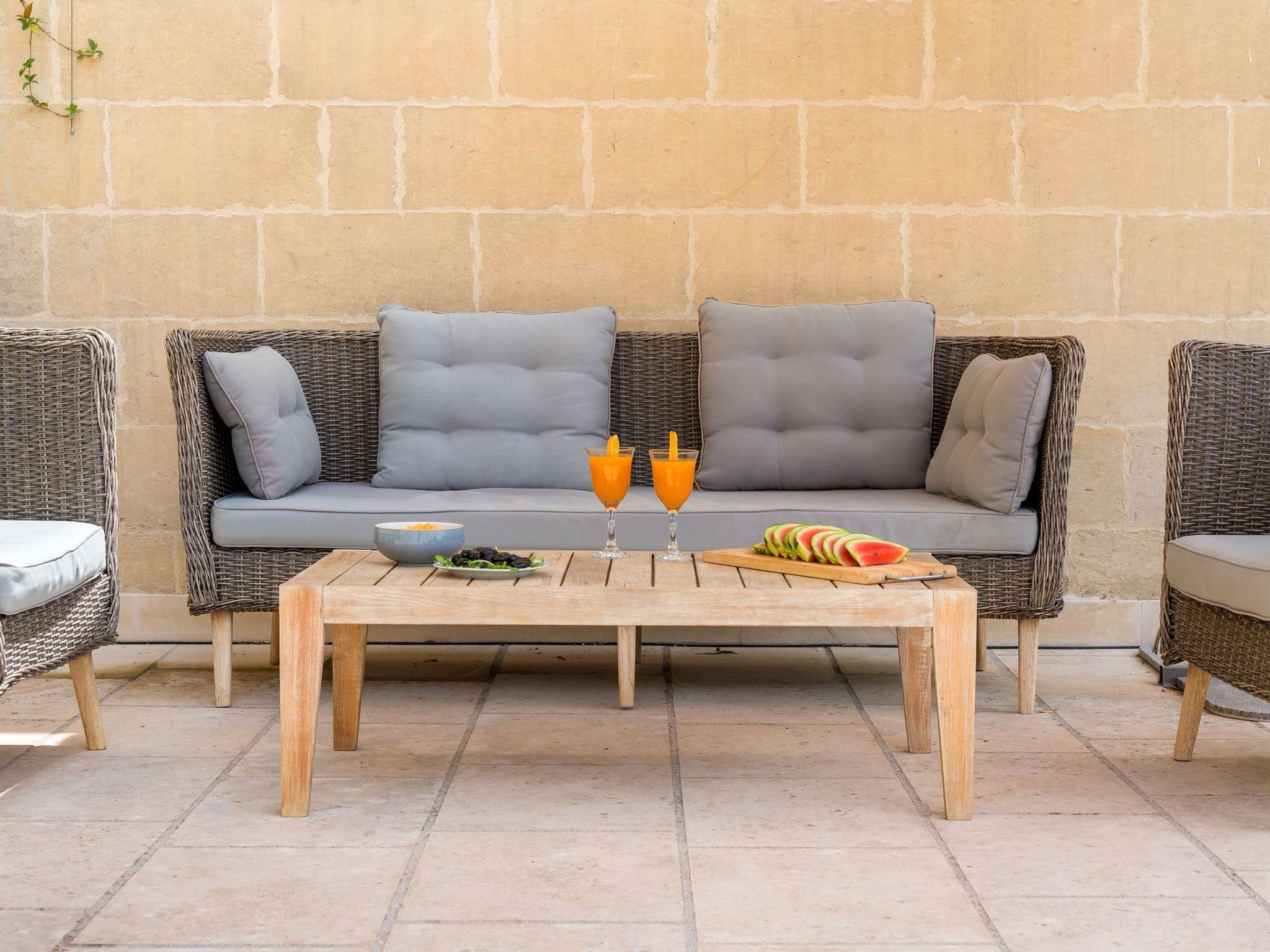 At the end of the courtyard there is a pergola for outdoor dining, next to a brick barbecue and a small oven for pizza or bread.