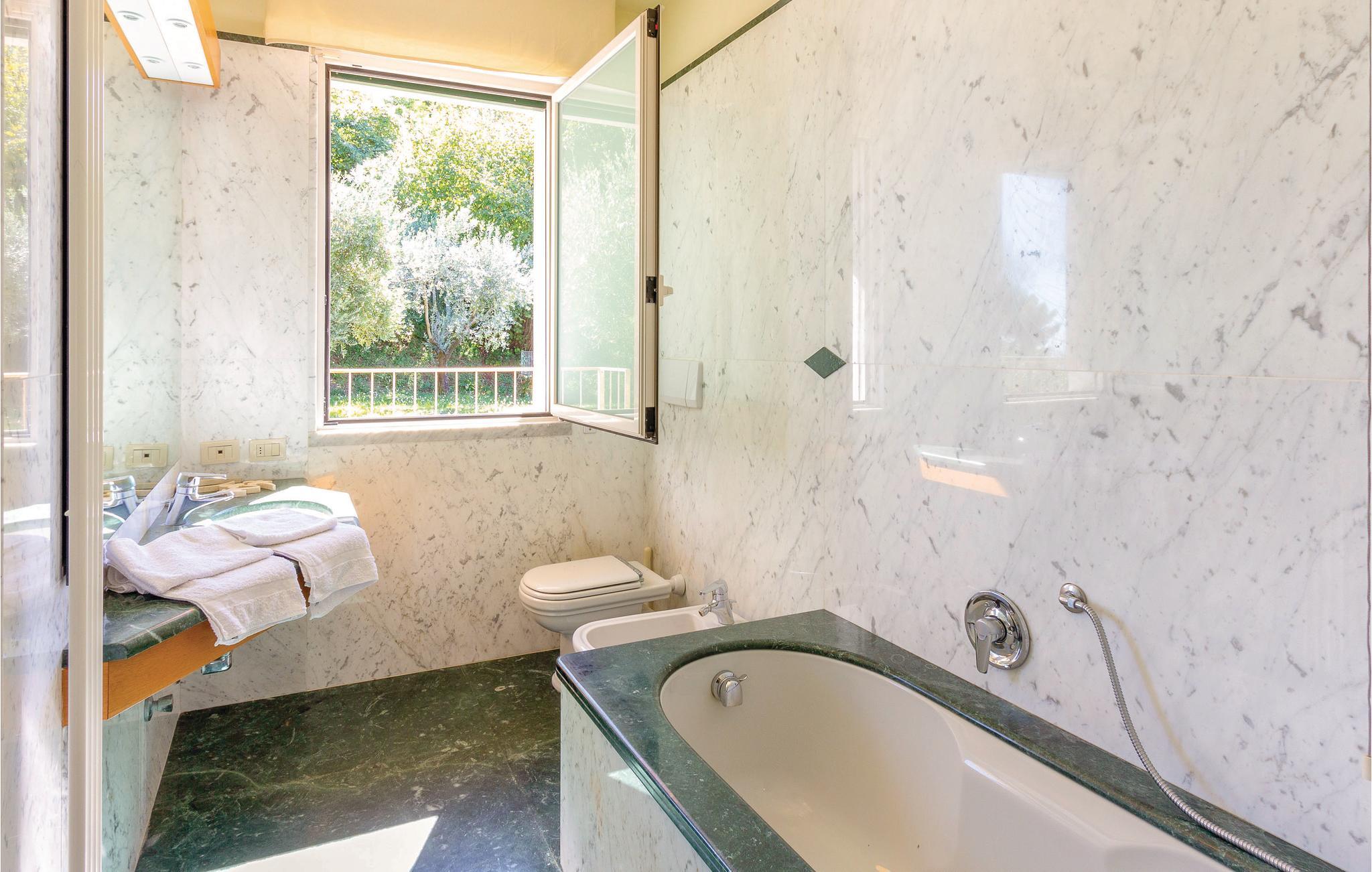 Med de apuanska alperna i bakgrunden och det vackra havet framför sig, har detta funktionella och moderna semesterhus ett unikt panoramaläge där du kan beundra Versilias kust hela vägen till Cinque Terre. Härifrån kan ni utforska både Toscana och Ligurien! Planera utflykter till Carrara med sina spektakulära vita marmorbrott, till de små byarna i de Apuanska Alperna, till Forte dei Marmi och Pietrasanta, där många konst- och fotoutställningar anordnas varje sommar. I Forte dei Marmi, med sina vackra butiker och boutiquer, är shopping ett måste! Passa också på att besöka nationalparken Cinque Terre, med sina stigar, slott och fem välbevarade pittoreska byar, var och en med unika egenskaper: Monterosso är den äldsta, Vernazza den vackraste, Corniglia den högsta, Manarola den största och Riomaggiore, varifrån den berömda Via dellAmore slingrar sig upp i bergen. Besök den charmiga fiskebyn Porto Venere, som ligger i ena änden av Golfo dei Poeti, och dess vackra katedral San Pietro, som är byggd direkt över havet. Sportentusiaster kan rida (5 km), spela tennis (6,5 km) och golf (16 km) i omgivningarna eller koppla av vid de varma källorna i området. Värden, från vilken du kan köpa olivolja, vin och honung från sin egen produktion, ger dig också gärna information om havsfiske (7 km). Observera: Tillfart till huset via 1 km ojämn grusväg, som inte är lämplig för sportbilar och bör köras med försiktighet.