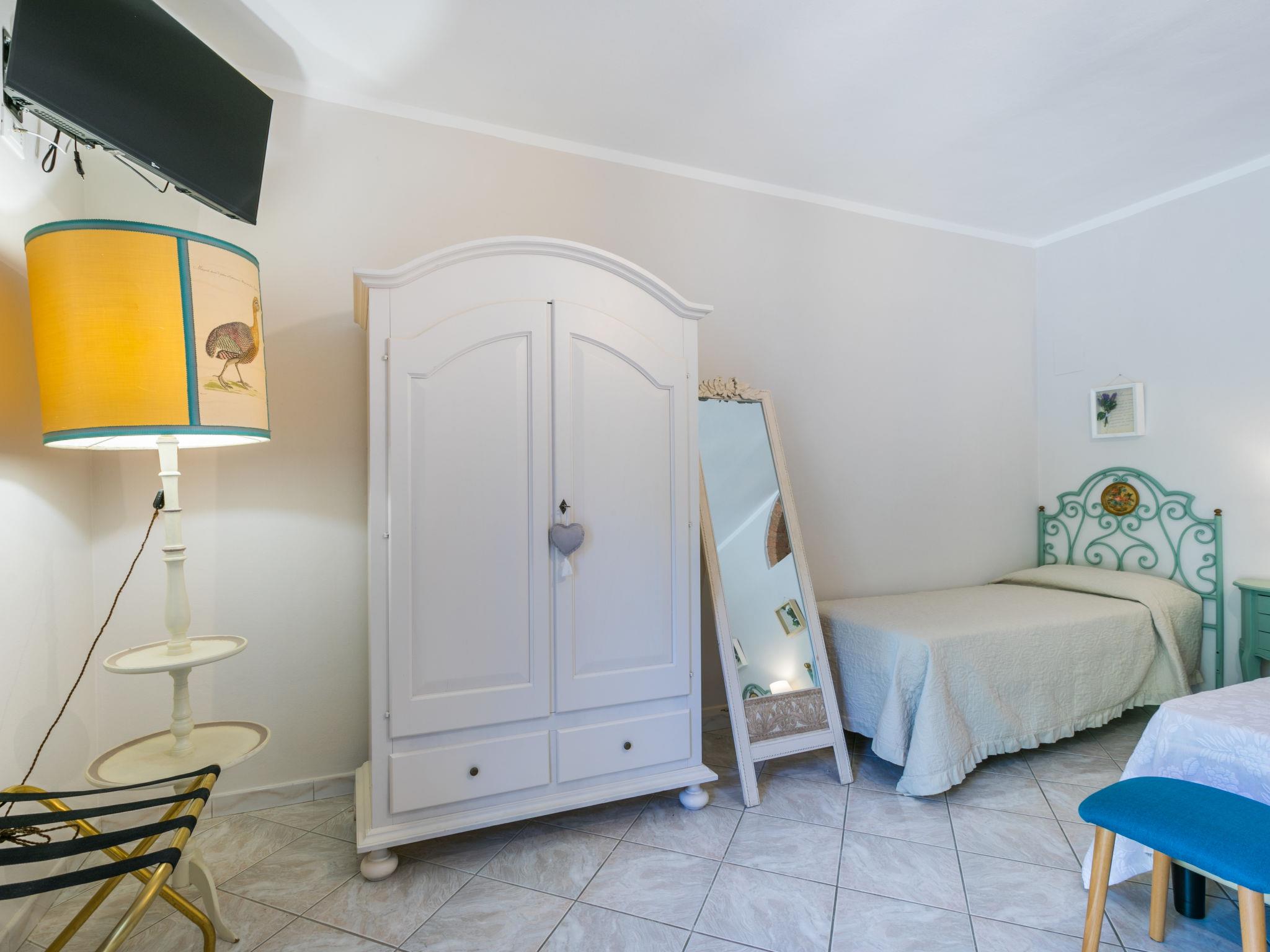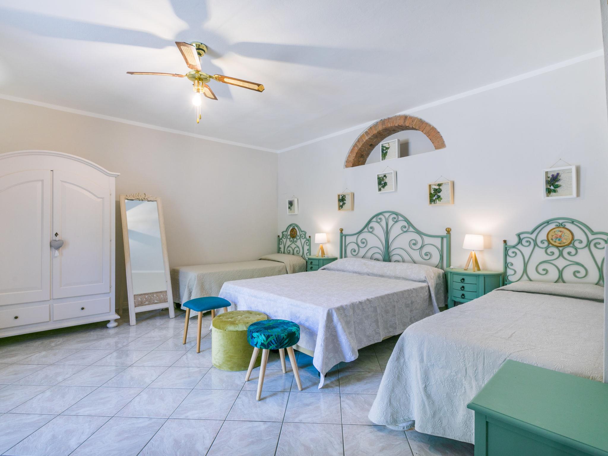 "Levanelle", 2-room apartment 45 m2, on the ground floor. Beautiful and modern furnishings: living/sleeping room with 1 double sofabed (140 cm). Exit to the loggia. 1 room with 1 bed, 1 double bed, satellite TV, electric heating and air conditioning. Open kitchen (mini-oven, oven, dishwasher, 4 induction hot plates, toaster, kettle, microwave, electric coffee machine) with dining table and satellite TV. Shower/bidet/WC. Electric heating, gas heating, air-conditioning. Heating available only from 10.10. to 19.04. Terrace partly roofed. Terrace furniture. Facilities: safe, mosquito net, baby cot for up to 2 year olds, hair dryer. Internet (WiFi, free). Please note: maximum 1 pet/ dog allowed. Private entrance, fire extinguisher. IT050006B5LNZZD6VU