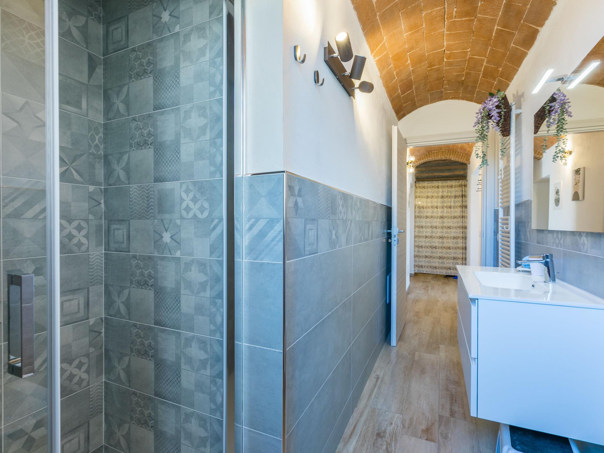 "Casa delle Volte", 3-room apartment 100 m2, on the ground floor. Comfortable and modern furnishings: living/dining room with 1 double sofabed, dining table and air conditioning. Exit to the garden. 1 double bedroom with 1 double bed and air conditioning. 1 double bedroom with 1 double bed and air conditioning. Open kitchen (dishwasher, 4 induction hot plates, toaster, kettle, electric coffee machine). 2 showers/bidet/WC. Electric heating, air-conditioning. Garden. Terrace furniture, barbecue. Facilities: washing machine. At the house. Maximum 1 pet/ dog allowed. IT049006C2QUXIILWO