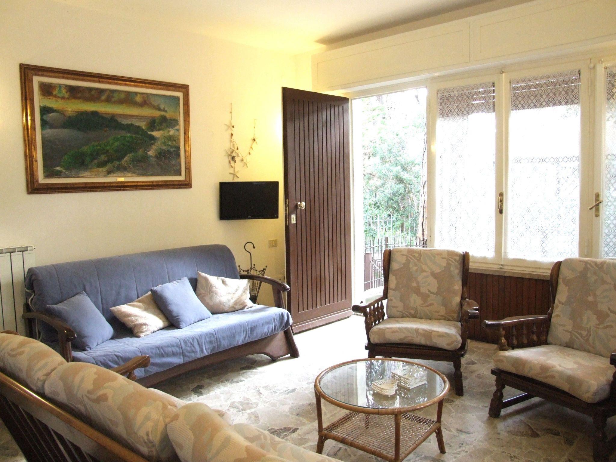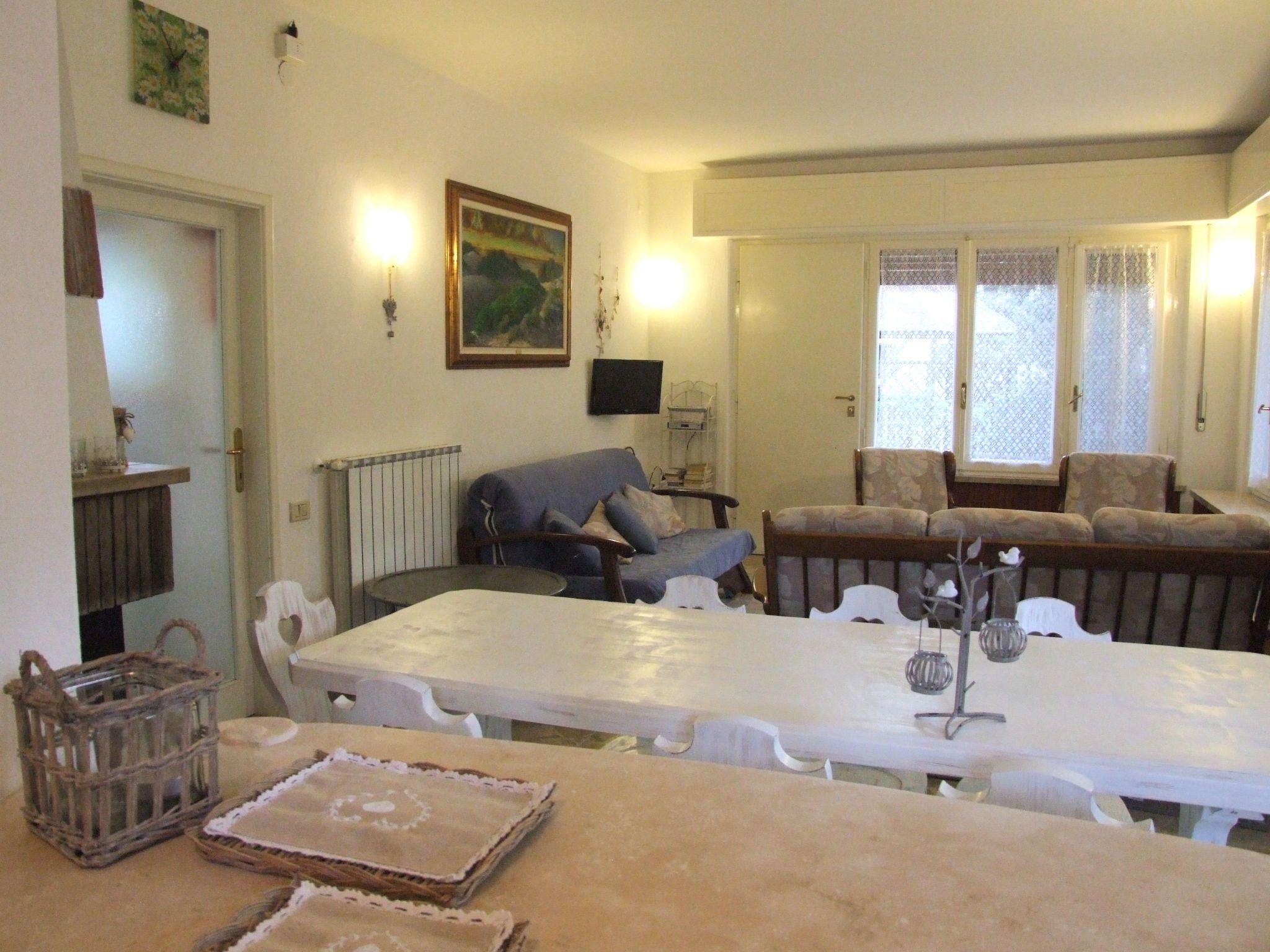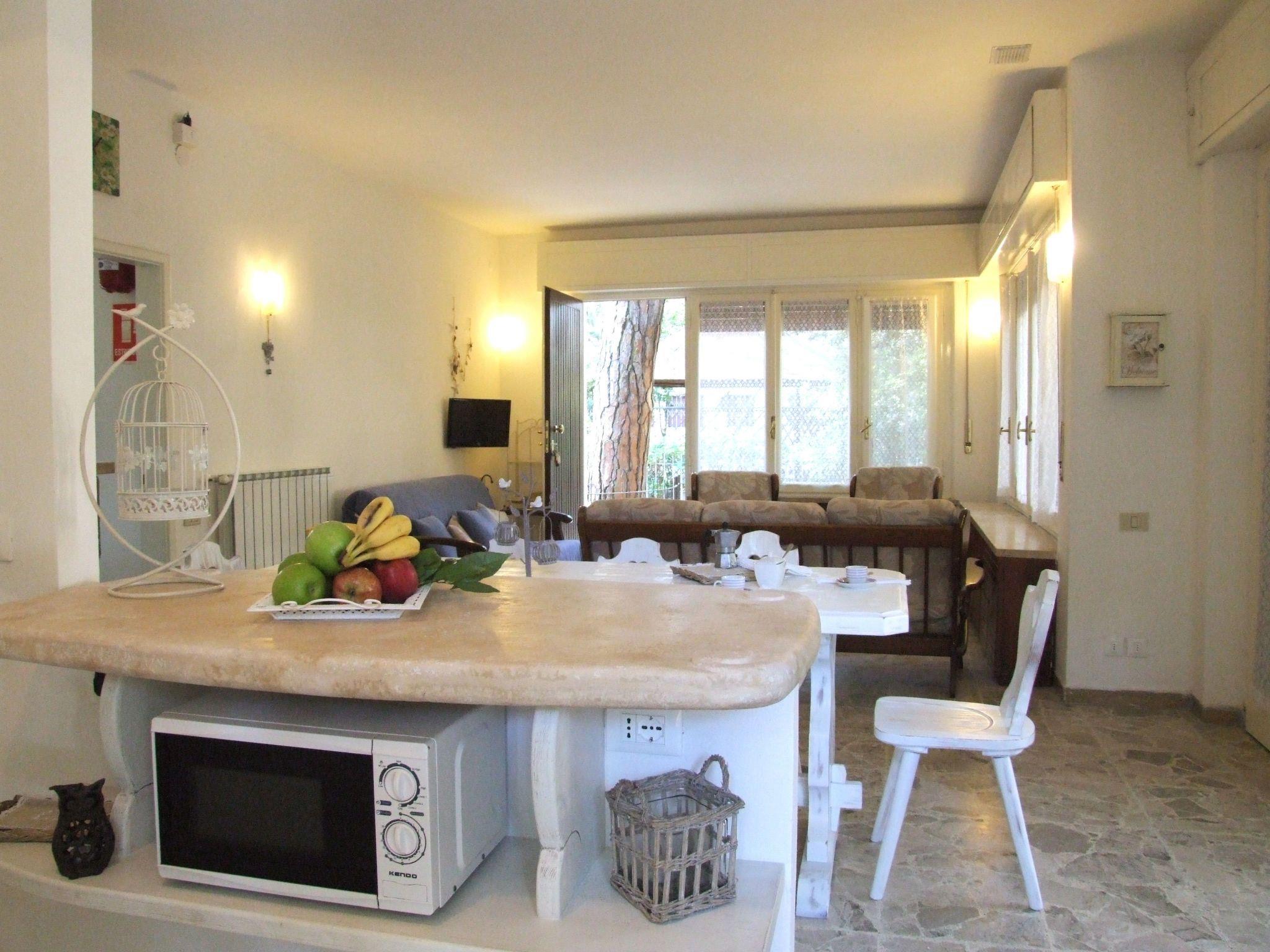 Girasole is a spacious flat in a villa surrounded by greenery consisting of four flats. The accommodation is located on the ground floor and consists of a living room with a double sofa bed and a fireplace, a kitchenette with dining area and a furnished terrace. The living room leads to the sleeping area where there are three bedrooms, a first bedroom with a bunk bed, a double bedroom and a third bedroom with a double bed, a single bed and a bathroom with shower. In the sleeping area there is a second bathroom with shower, bidet and washing machine. Girasole is equipped with every comfort and has a convenient private parking space. The flat is located in Marina di Castagneto Carducci in the peace and quiet of the pine forest but is very convenient to the centre and the sea which can be reached in less than 10 minutes on foot.