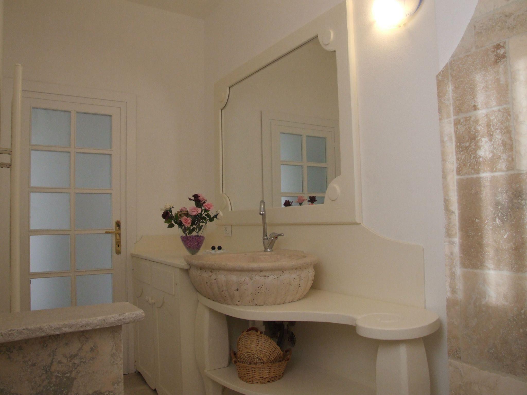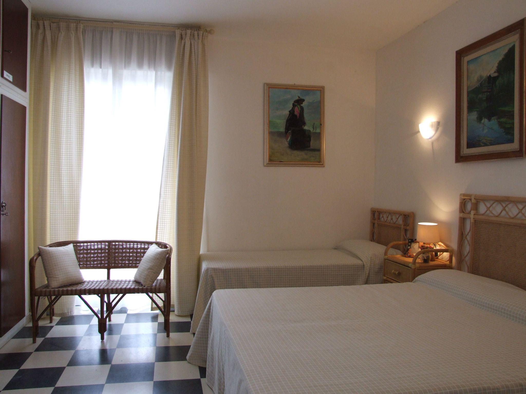 The entrance hall leads into a small hallway and from here the door on the left opens onto a large marble bathroom with shower, washing machine and window with sea view. The entrance door leads into a large bedroom with a double bed.