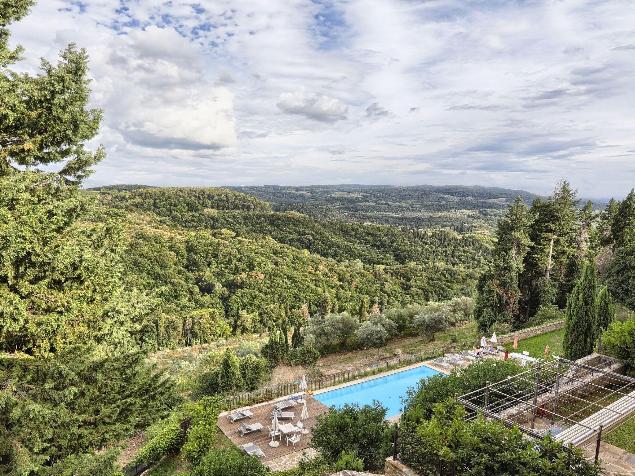 The flat of approx. 100 sqm, located within an ancient building completely renovated a few years ago, consists on the first floor of an entrance hall, two double bedrooms, two bathrooms with shower, sink, toilet and bidet, as well as two hallways and storage room under the stairs with washing machine. The internal staircase leads to the second floor where there is a third bathroom, with shower, toilet and washbasin, and a large living area with kitchen and living room from which, through a glass door, there is access to a covered loggia with a view of the beautiful Tuscan hills and the swimming pool. The flat is furnished with modern taste and quality furnishings. The house is equipped with wi-fi, air conditioning, heating, mosquito nets, TV and a fully equipped kitchen with oven (microwave also works), fridge and dishwasher.
