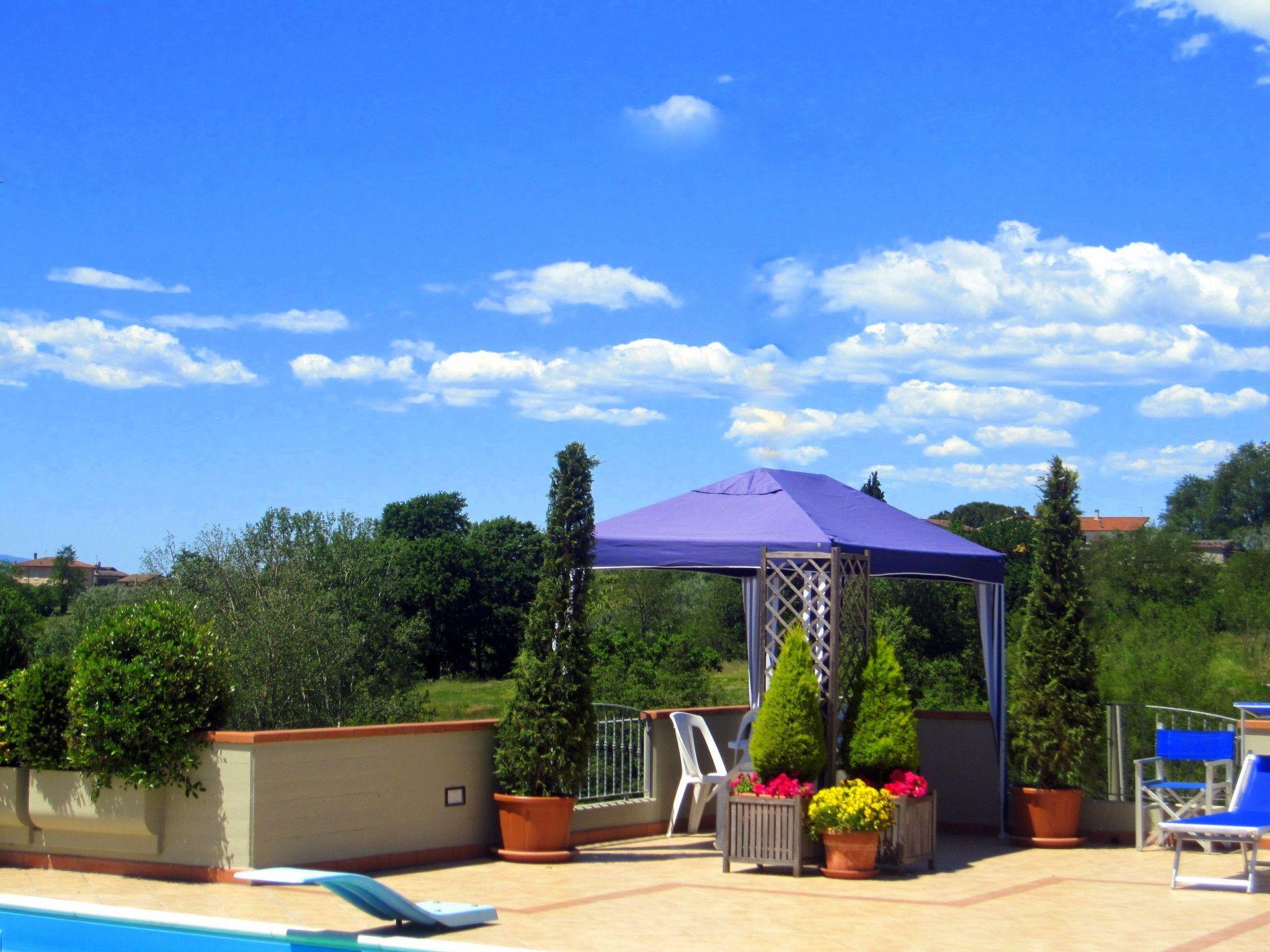 The ARANCIO flat is located inside the Agriturismo "Poggio alla Cavalla" in Lamporecchio (PT) in the heart of Tuscany, near Florence, between Montecatini Terme and Vinci, the birthplace of Leonardo. It is situated on the slopes of the hills of Chianti Montalbano.L' flat ARANCIO is surrounded by a garden, inside which there is a swimming pool, with a large panoramic terrace and private parking.L' flat measures Sqm. 42 square metres, it has 1 double bedroom with the possibility of adding a single bed and in the living room a comfortable double sofa bed, it can accommodate 4+1 people.The ARANCIO flat is located on the ground floor with private entrance and private garden equipped with barbecue; with independent heating, air conditioning, TV, Internet FreeWiFi.Its interior is composed of:The kitchen with a 4 burner gas hob, electric oven, dishwasher, sink and fridge-freezer; the living area with dining table and comfortable double sofa bed (supplied with linen and blankets).Double bedroom with the possibility of adding a cot, furnished with typical Tuscan furniture and furnishings (supplied with linen and blankets).Comfortable and functional bathroom with shower cubicle, washbasin, toilet, bidet and hairdryer. (The flat is also equipped with a clothesline, iron and ironing board and washing machine.FARM HOLIDAY DESCRIPTIONThe Poggio alla Cavalla holiday farm has been created on the ground floor of the farmhouse that has been completely restored, trying to preserve and maintain the typical Tuscan characteristics without giving up the comforts.The Agriturismo consists of the Master Holiday House and 4 holiday flats, it is surrounded by a garden, inside which there is a swimming pool, with a large panoramic terrace and private parking. The Master Holiday House can accommodate up to max 7 (5+2) persons.- The flats : Arancio, Azzurro, Giallo and Verde can accommodate a maximum of 5 (4+1) persons.L 'holiday flat has a private outdoor area for lunches and dinners in the open air, equipped with table, chairs and umbrella, barbecue, and its own parking space in the private courtyard of the farm.The swimming pool, for guests of the agriturismo only, has been built in an open area well exposed to the sun, so as to always offer a pleasant water temperature; it has a large solarium, equipped with gazebo, shower, sun loungers, sunshades and tables, set out on a splendid terrace from which you can enjoy a wide panorama of the surrounding countryside.In the vicinity of the farmhouse ( km 1/km 2 ) there are: supermarkets and grocery stores, banks, post office, pharmacy, doctors' offices, public assistance, restaurants, pizzerias, etc.The organic farm Poggio alla Cavalla is run by the owner Massimo Camelli, who directly follows the various phases of cultivation and production of Chianti wine and extra virgin olive oil, according to the Organic Farming method.Organic farming, which the company practises, in fact allows the production of quality wine and oil that, in addition to being healthy and genuine, recall authentic flavours and are a guarantee of care for the environment and the wellbeing of consumers.In Tuscany, where product, territory and tradition are inextricably linked, organic farming constitutes an excellence that guarantees the valorisation and preservation of this heritage.Our products from organic farming are:CHIANTI D.O.C.G.Wine I.G.T. TUSCAN RED Wine VALDINIEVOLE WHITE D.O.C.TUSCAN EXTRA VIRGIN OLIVE OIL FROM MONTALBANOGThanks to the privileged geographical position of the holiday home, it is possible to take day trips to the art cities of Tuscany: Florence, Pistoia, Pisa, Siena, S. Gimignano, Volterra , Arezzo, Cortona, Lucca and the sea of VersiliaThe countryside surrounding the holiday home is very green and undulating thanks to the gentleness of its hills; it is mainly cultivated with vines and olive trees, and is characterised by hills that are not very high, with the exception of the Chianti Montalbano hills.The conformation of the territory and the vitality of the countryside have meant that many small centres have sprung up over time, rich in: Artisan workshops, Small trades, Typical restaurants, Markets.In the vicinity of the holiday home there are recreational activities, services and tourist attractions:Chianti Montalbano Hills : Strada dell' olio e del vino - Le colline di LeonardoPadule di Fucecchio : Excursions Riseva NaturaleCollodi : Pinocchio ParkPistoia : ZooMonsummano Terme : Thermal caves and thermal poolMonsummano Terme : Golf Course "La Pievaccia "Montecatini Terme : Thermal curesMontecatini Terme : HippodromeMontecatini Terme : Shooting rangeLamporecchio : Fitness and wellness centreLamporecchio : Tennis clubTourist rental licence number: No. 6 of 23 May 2006Features of the property: Extra bedOutdoors: Barbecue; Outside shower; Garden; Private parking; Parking: 1; Fenced; Terrace ;General: 3. double bed; Farmhouse; Particular lodging; Year of construction: 2000; Year of renovation: 2010; Bath: 1; Bedroom; Bicycle hire: 1.00 km; Land area: 20000 m; Estate;Living area: Double sofa; Iron; TV;Bathroom/WC: Shower; Hair dryer; WC;Kitchen: Kettle; Freezer; Gas cooker; Oven; Refrigerator; Dishwasher; Coffee machine; Toaster;Other: Pet allowed: max. 1; Air conditioning; Gym equipment; Toys; On the farm; Washing machine; Shared pool; Heating; High chair; WIFI available;Distances (as the crow flies, approx.) Water distance: 2,00 km; Airport distance: 30,00 km; Bowling distance: 6,00 km; Football distance: 10 m; Golf course distance: 4,00 km; Tennis court distance: 3,00 km; Public transport stop distance: 0,50 km; River distance: 9,00 km; Lake distance: 2,00 km; Riding distance: 2,00 km; Sea distance: 40,00 km; Nearest village distance: 1 m; Table tennis distance: 10 m; Harbour distance: 50,00 km; Restaurant / bar distance: 2,00 km; Path distance: 1,00 km; Sand beach distance: 40,00 km; Pebble beach distance: 50,00 km; Beach distance: 40,00 km; Station distance: 9,00 km; Supermark