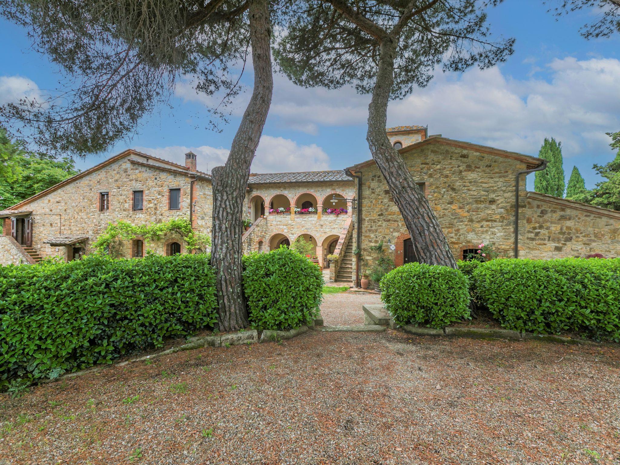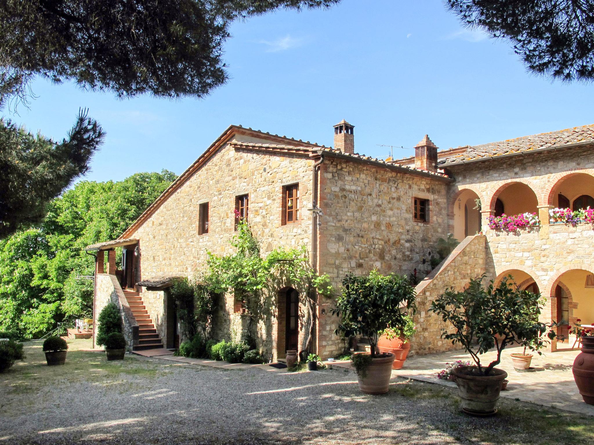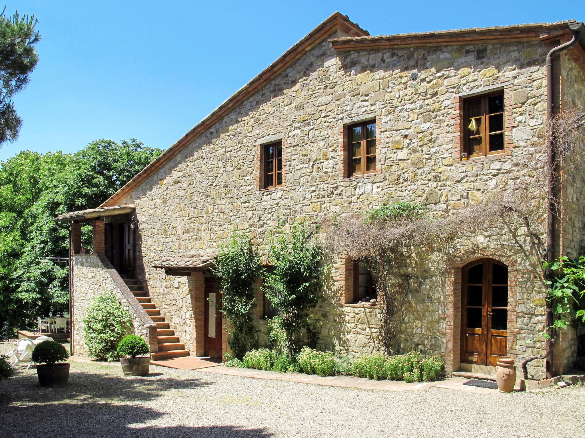 Beautiful on a vinyard country house "Cellole", detached, surrounded by trees and vineyards. 6 apartments in the residence. 2.5 km from the centre of Castellina in Chianti, 11 km from the centre of Radda in Chianti, outside the resort, 17 km from the centre of Siena, in an elevated position on a slope, 92 km from the sea, in the countryside. For shared use: property 11 ha with plants and trees, swimming pool (12 x 6 m, depth 120 - 220 cm, seasonal availability: 15.Apr. - 31.Oct.). Shower/WC in the pool area, pergola, terrace, garden furniture, barbecue. In the complex: reception, WiFi, washing machine (extra) (for shared use, extra). Motor access (150 m via unmade road). Parking on the premises. Supermarket 2.5 km, bus stop 500 m, railway station "Poggibonsi" 14 km, sandy beach "Marina di Bibbona" 92 km. Nearby attractions: Monteriggioni 10 km, Wine area Chianti Classico 10 m. Local sale of farm products.