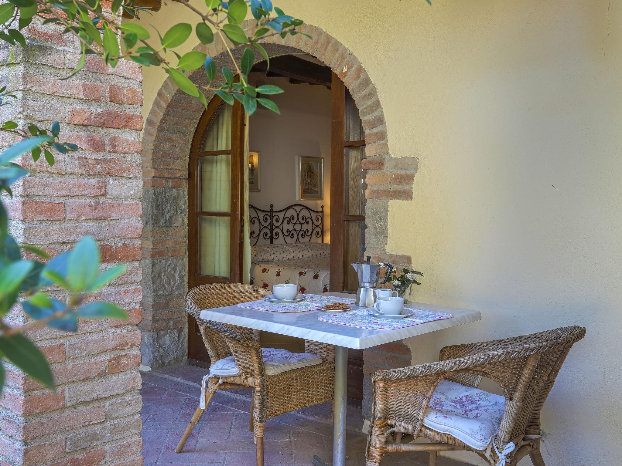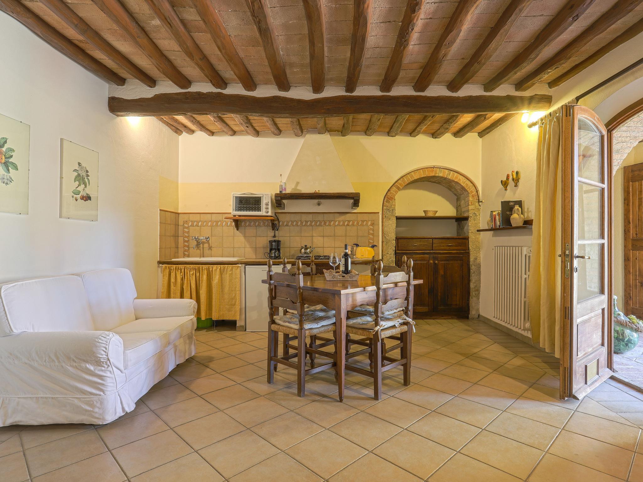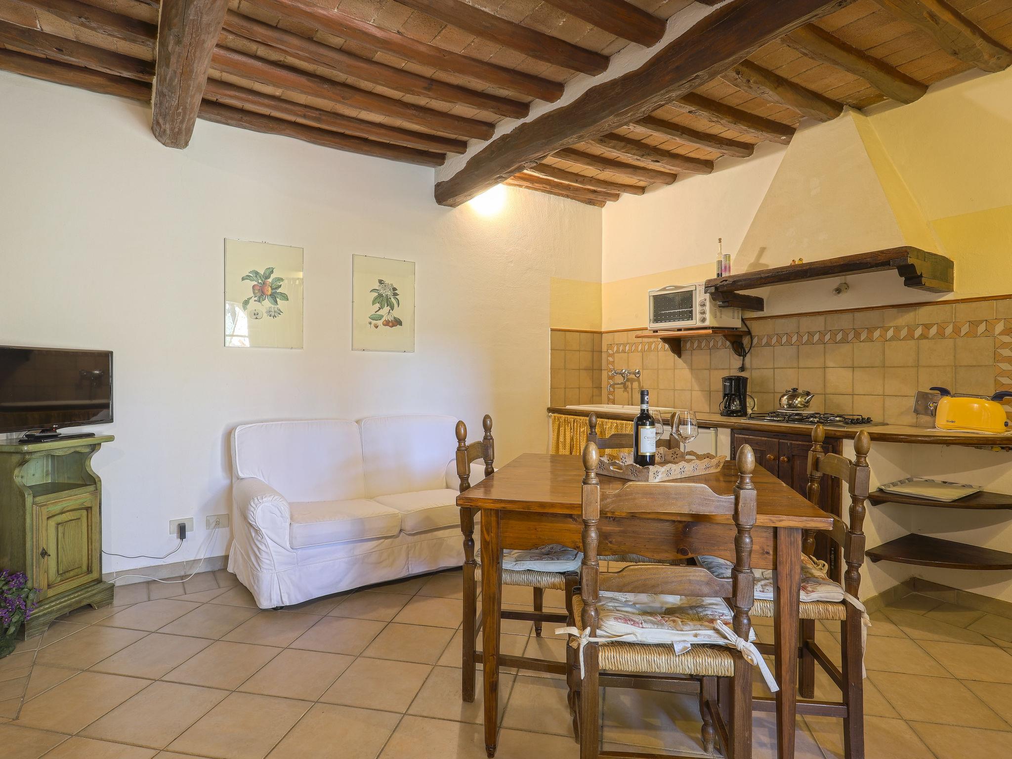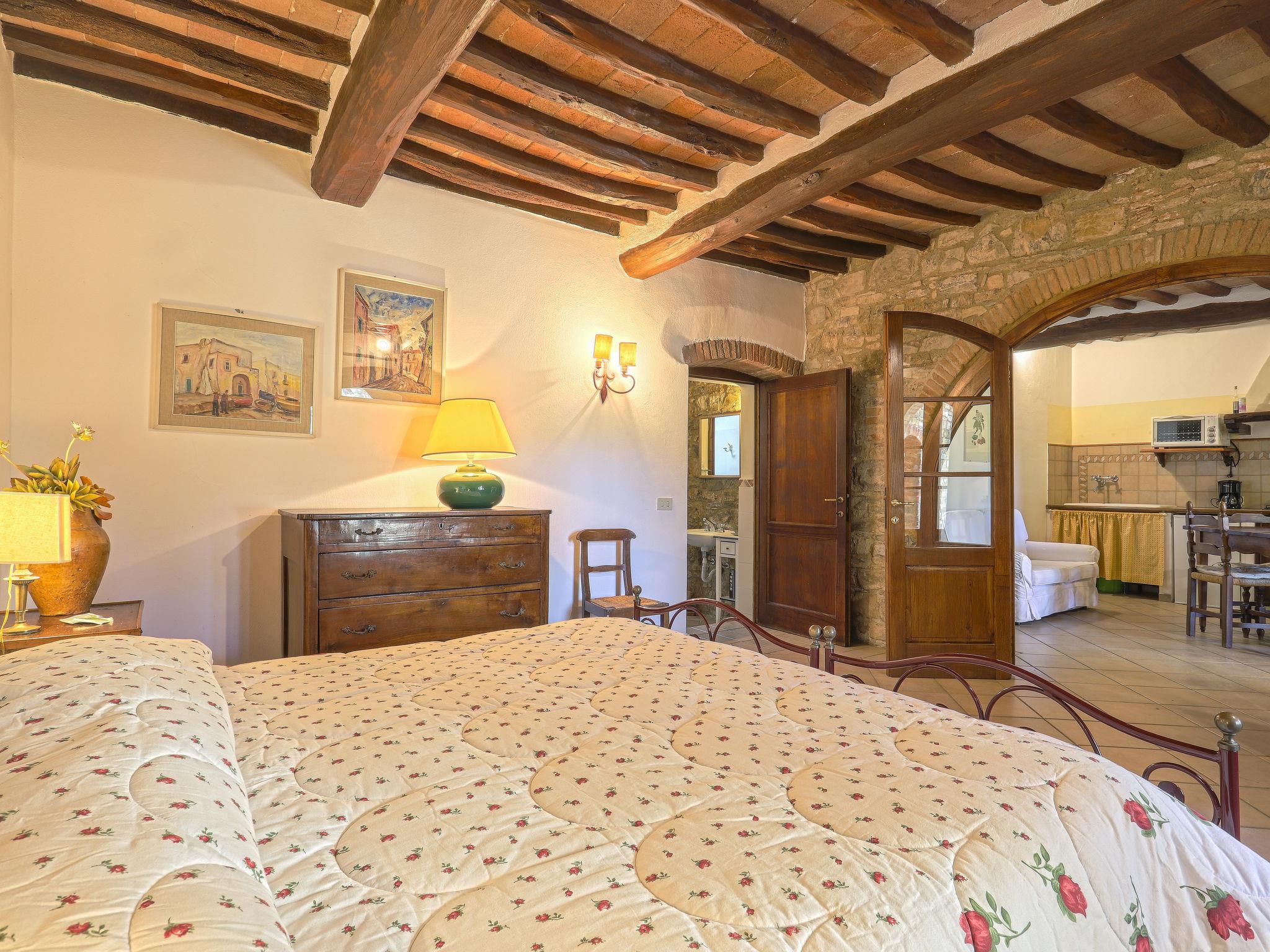"Cellole - La Stalla", 2-room apartment 45 m2, on the ground floor. Rustic and cosy furnishings: living room with dining table, TV and radio. Exit to the terrace. 1 room with 1 french bed (160 cm), shower/WC. Kitchenette (mini-oven, 4 gas rings, toaster, electric coffee machine). Gas heating (extra). Heating available only from 01.11. to 15.04. Comfortable furnishings in the country house style. Small terrace roofed. Terrace furniture. Beautiful view of the garden and the countryside. Facilities: children's high chair, baby cot. Internet (WiFi). Please note: non-smokers only. Maximum 1 pet/ dog allowed. Private entrance. IT052005B5PK8QKXA9