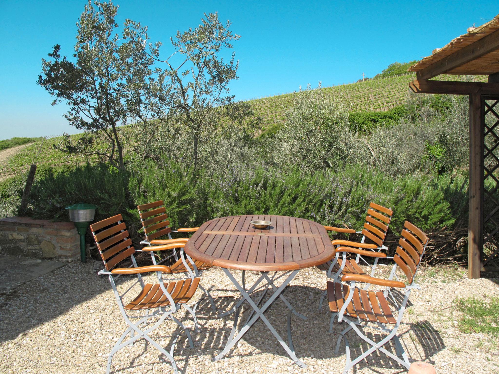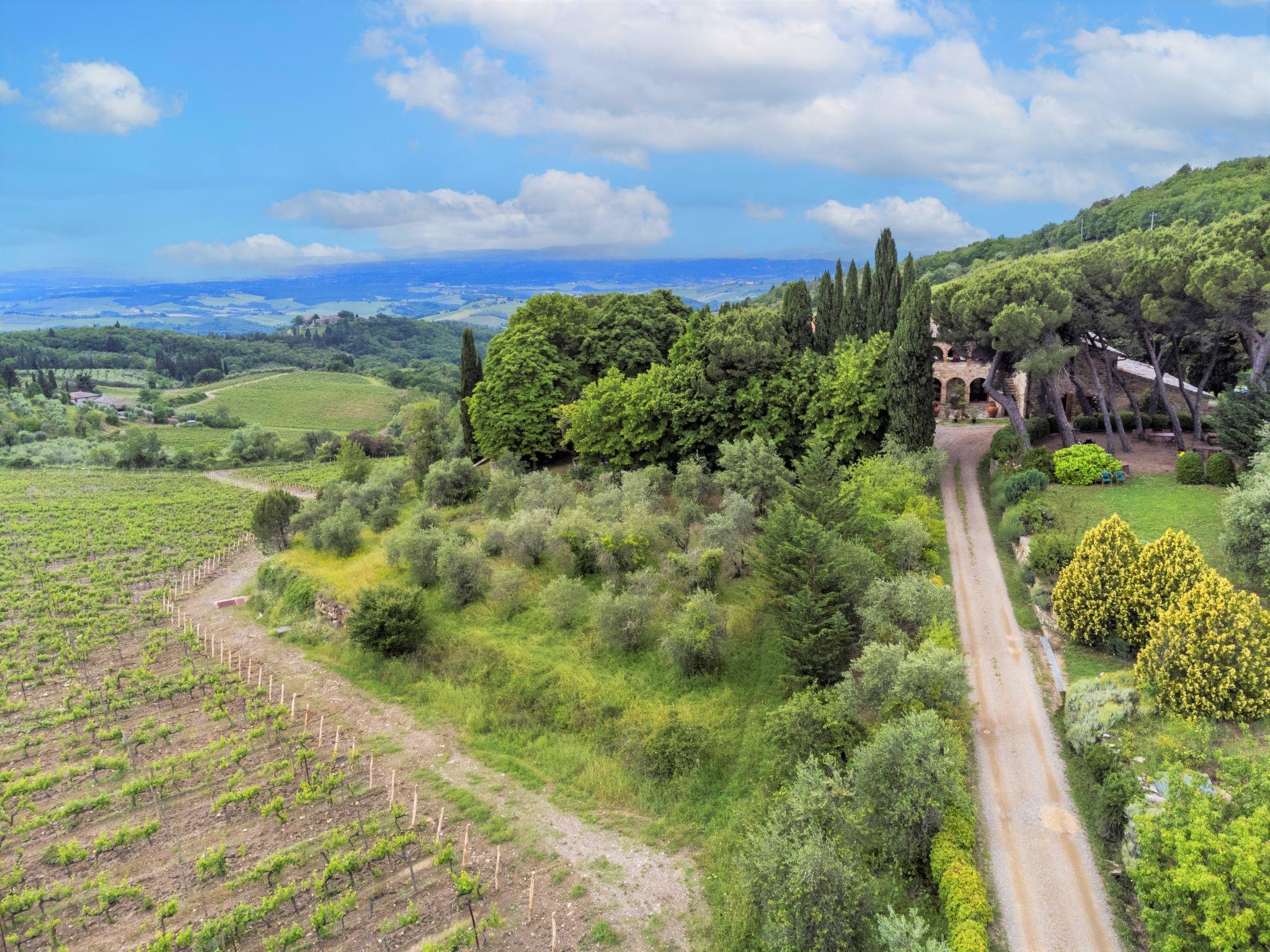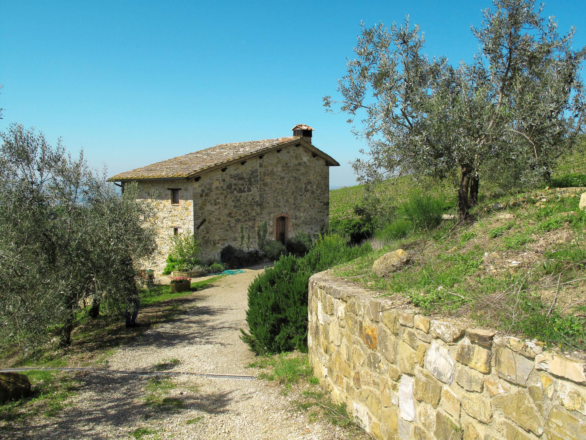 Beautiful on a vinyard country house "Cellole", detached, surrounded by trees and vineyards. 6 apartments in the residence. 2.5 km from the centre of Castellina in Chianti, 11 km from the centre of Radda in Chianti, outside the resort, 17 km from the centre of Siena, in an elevated position on a slope, 92 km from the sea, in the countryside. For shared use: property 11 ha with plants and trees, swimming pool (12 x 6 m, depth 120 - 220 cm, seasonal availability: 15.Apr. - 31.Oct.). Shower/WC in the pool area, pergola, terrace, garden furniture, barbecue. In the complex: reception, WiFi, washing machine (extra) (for shared use, extra). Motor access (150 m via unmade road). Parking on the premises. Supermarket 2.5 km, bus stop 500 m, railway station "Poggibonsi" 14 km, sandy beach "Marina di Bibbona" 92 km. Nearby attractions: Monteriggioni 10 km, Wine area Chianti Classico 10 m. Local sale of farm products.