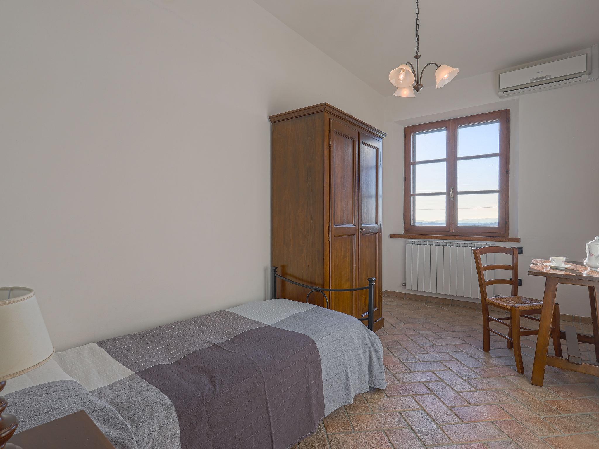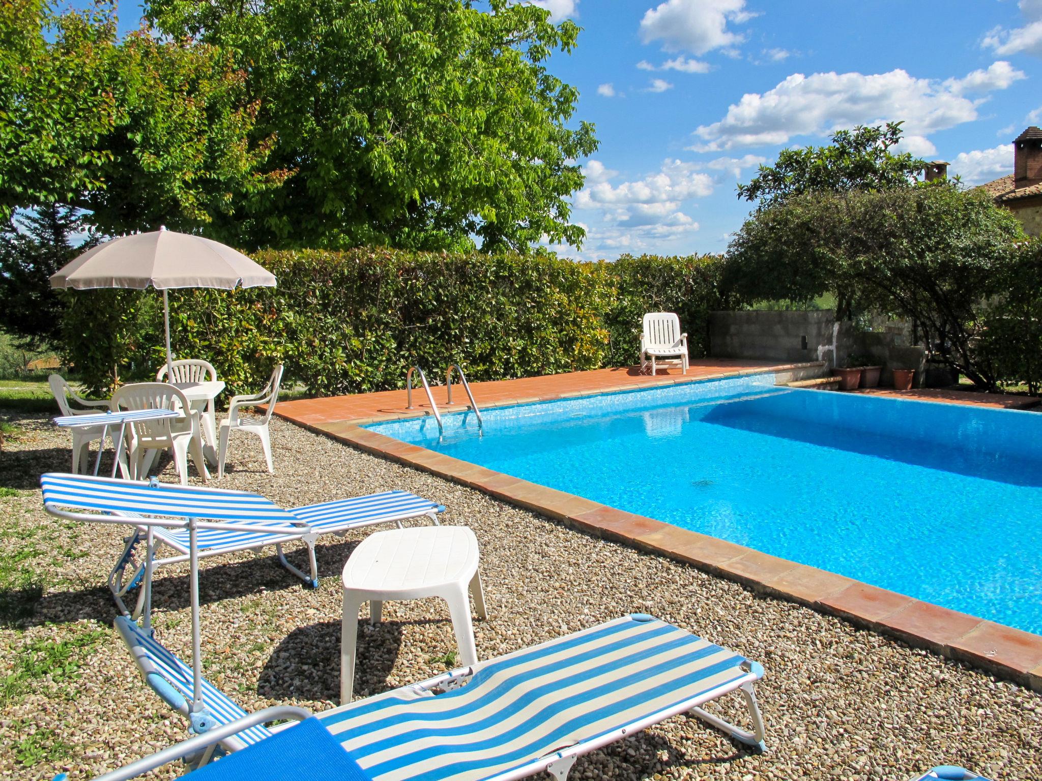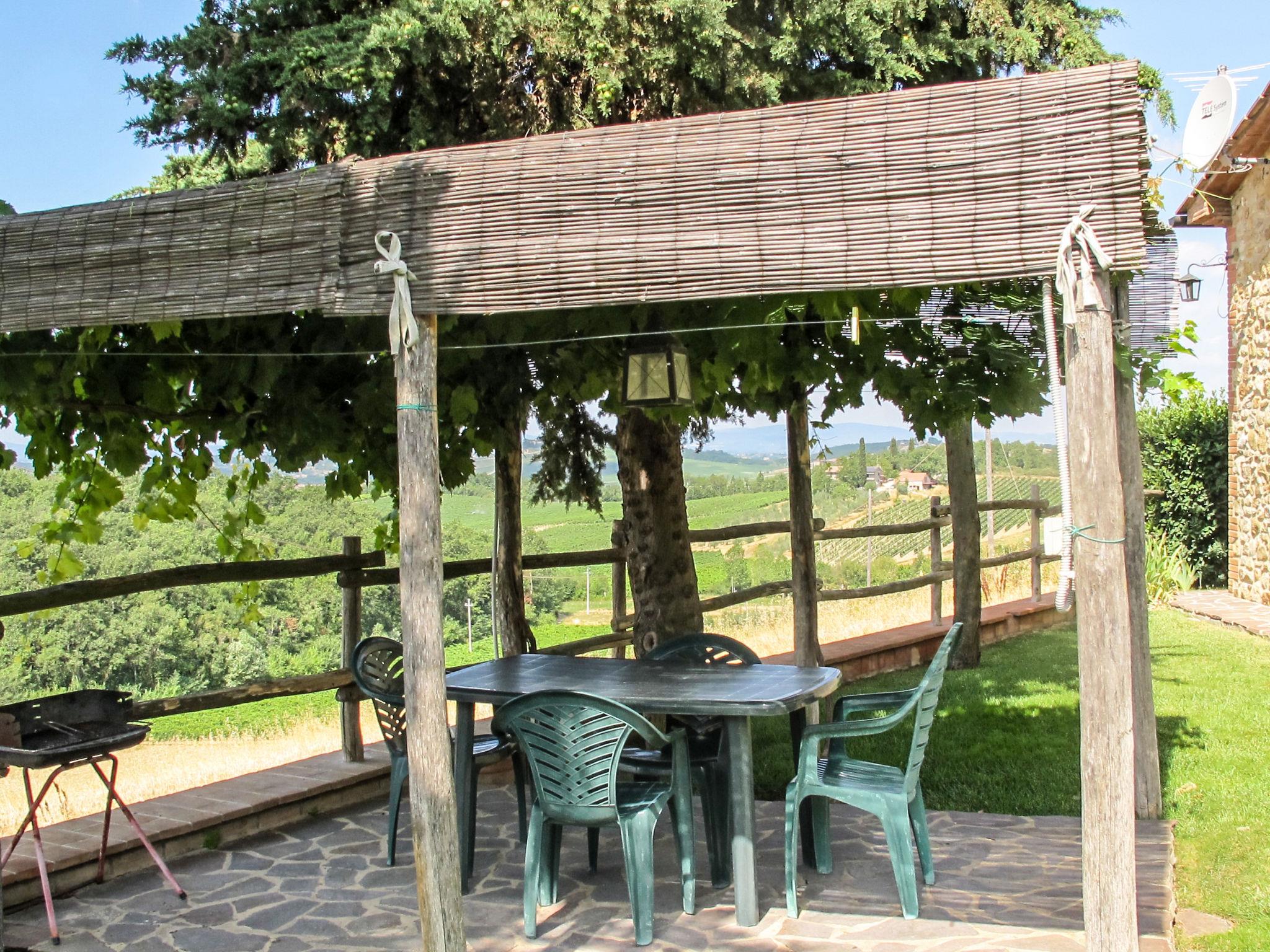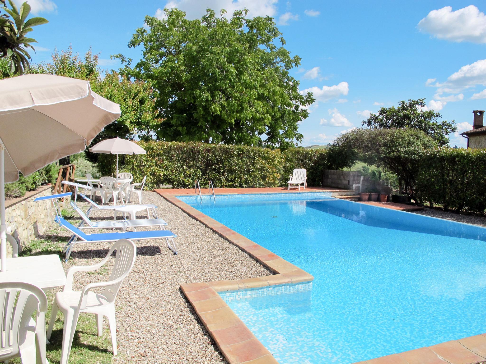 Country house "Cignanbianco", surrounded by fields and vineyards. 3 houses in the residence. 7 apartments in the residence. 5 km from the centre of Castellina in Chianti, 6 km from the centre of Castellina Scalo, 27 km from the centre of Siena, in a secluded, sunny position. For shared use: property 30 ha with plants and trees, natural garden, swimming pool (12 x 6 m, seasonal availability: 02.May. - 03.Oct.). Barbecue, pool maintenance by the owner/gardener. In the house: washing machine (for shared use). 1 km long motor access (via unmade road). Parking on the premises. Shop 5 km, grocery 5 km, supermarket 5 km, restaurant 1.7 km, bicycle rental 5 km, bus stop "Castellina Scalo" 6 km, railway station "Castellina Scalo" 6 km, sandy beach "Cecina Mare" 83 km, indoor swimming pool 15 km. Nearby attractions: Moneriggioni 10 km, San Gimignano 29 km, San Galgano 50 km, Volterra 52 km, Montalcino 65 km. Please note: baby equipment (included). Groups of teenagers on request only. Local sale of farm products. The owner lives on the same property.
