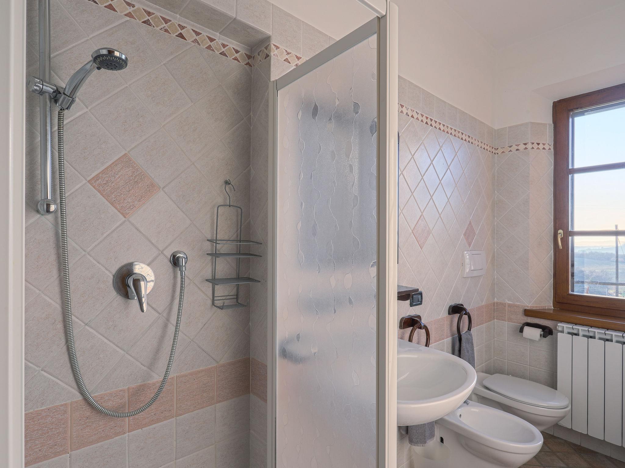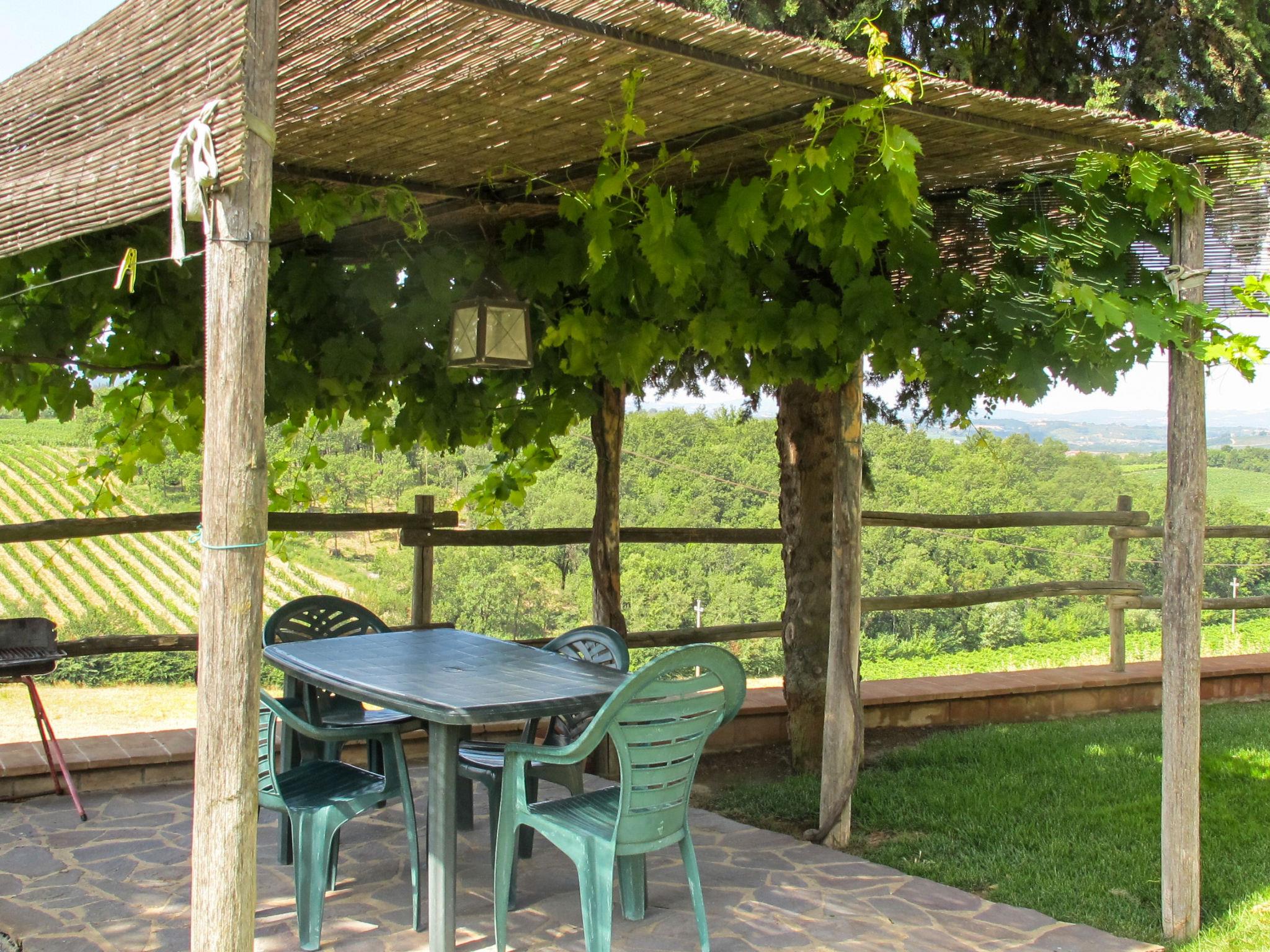 Country house "Cignanbianco", surrounded by fields and vineyards. 3 houses in the residence. 7 apartments in the residence. 5 km from the centre of Castellina in Chianti, 6 km from the centre of Castellina Scalo, 27 km from the centre of Siena, in a secluded, sunny position. For shared use: property 30 ha with plants and trees, natural garden, swimming pool (12 x 6 m, seasonal availability: 02.May. - 03.Oct.). Barbecue, pool maintenance by the owner/gardener. In the house: washing machine (for shared use). 1 km long motor access (via unmade road). Parking on the premises. Shop 5 km, grocery 5 km, supermarket 5 km, restaurant 1.7 km, bicycle rental 5 km, bus stop "Castellina Scalo" 6 km, railway station "Castellina Scalo" 6 km, sandy beach "Cecina Mare" 83 km, indoor swimming pool 15 km. Nearby attractions: Moneriggioni 10 km, San Gimignano 29 km, San Galgano 50 km, Volterra 52 km, Montalcino 65 km. Please note: baby equipment (included). Groups of teenagers on request only. Local sale of farm products. The owner lives on the same property.