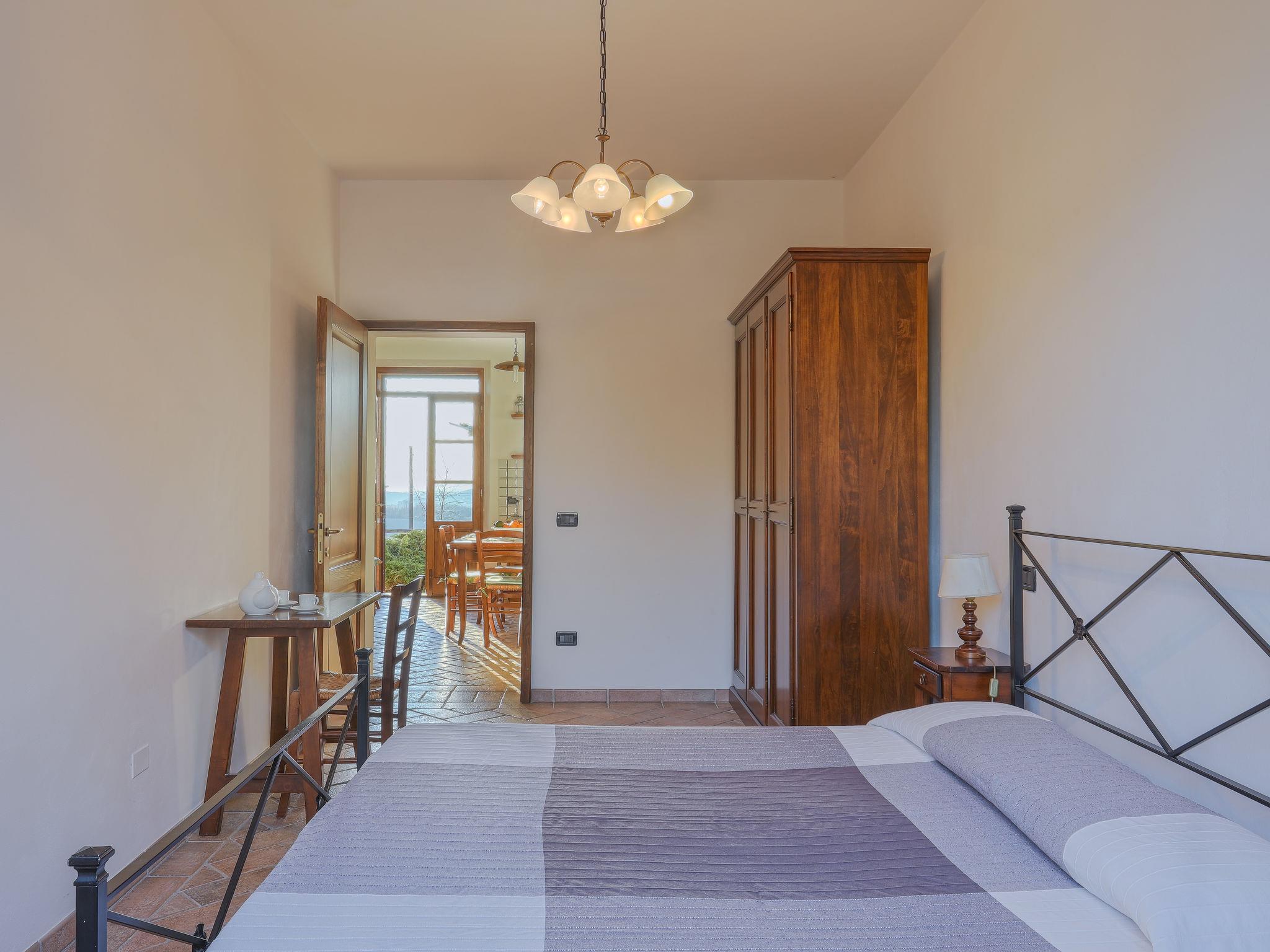 "Cignanbianco - Tramonto", 4-room semi-detached house 75 m2, on the ground floor. Beautiful and rustic furnishings: 1 room with 1 french bed (160 cm), shower/bidet/WC. Exit to the garden. 1 room with 1 french bed (160 cm). 1 room with 2 beds (80 cm). Kitchen-/living room (oven, dishwasher, 4 gas rings, electric coffee machine) with dining table, satellite TV. Exit to the garden. Shower/bidet/WC. Gas heating, air-conditioning. Terrace, small garden, porch. Terrace furniture. Beautiful panoramic view of the countryside. Facilities: children's high chair, baby cot. Internet (WiFi, free). Please note: non-smokers only. Maximum 1 pet/ dog allowed. Private entrance. No mandatory extra charges to be paid on-site except for local tax. Bedlinen, towels, final cleaning and all energy costs are included. IT052005B54BVVGS43
