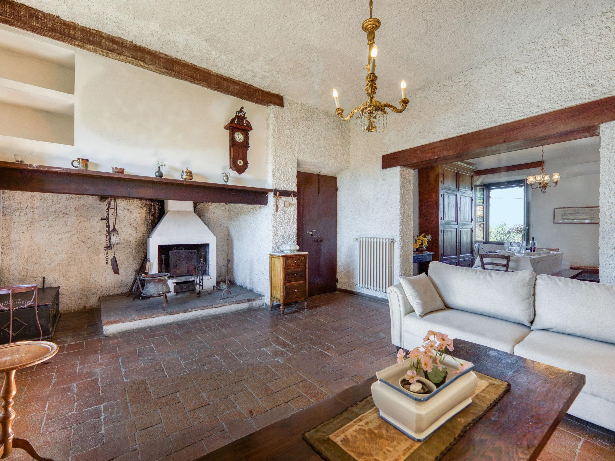 "Foresta 2", 4-room apartment 100 m2, on the upper floor. Spacious, rustic and antique furnishings: large living/sleeping room with open-hearth fireplace and TV (flat screen). 2 double bedrooms, each room with air conditioning. 1 room with 2 beds (80 cm), air conditioning. Kitchen (oven, dishwasher, Gas stove, 4 gas rings, kettle, electric coffee machine) with dining table. 2 showers/bidet/WC. Gas heating (extra), air-conditioning. Balcony, patio. Terrace furniture, barbecue. Very beautiful panoramic view of the countryside. Facilities: washing machine, children's high chair, baby cot for up to 2 year olds, hair dryer, logs (extra). Internet (WiFi, free). Parking (roofed) at the house. Please note: non-smokers only. Maximum 1 pet/ dog allowed. Private entrance, fire extinguisher. IT052005B57VSC3FJ8