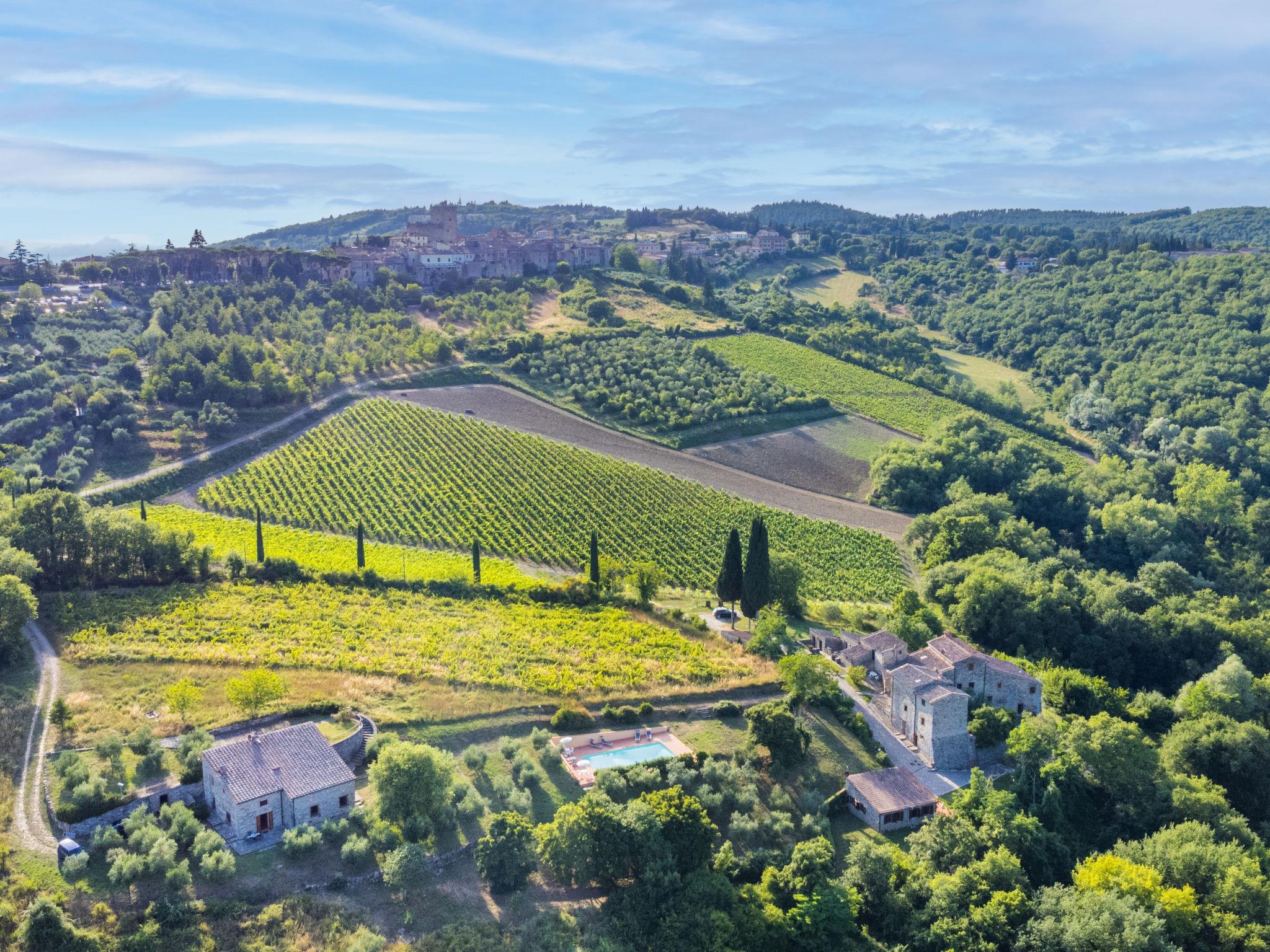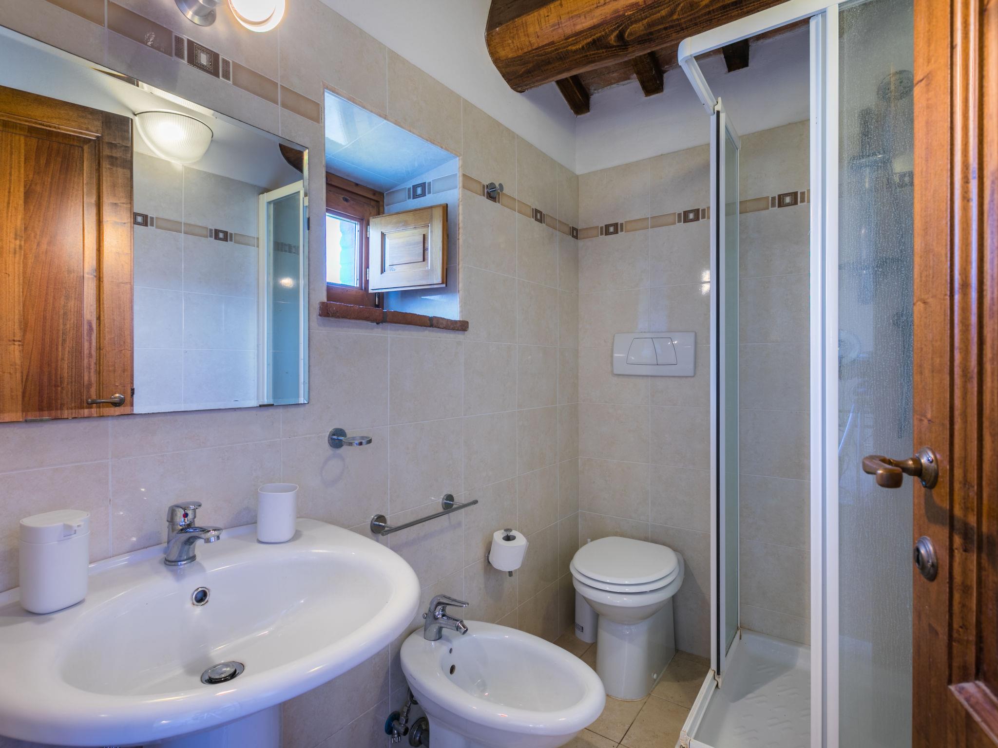 Castellina in Chianti: Cosy, rustic country house "Cerretino", surrounded by fields and vineyards. 3 houses in the residence. 1 km from the centre of Castellina in Chianti, in a sunny position, 200 m from the edge of the forest, in the countryside. For shared use: natural state property, swimming pool (6 x 12 m, depth 100 - 180 cm, seasonal availability: 15.May. - 15.Oct.). Outdoor shower, patio, terrace, garden furniture, pool maintenance by the owner/gardener. In the house: air conditioning, washing machine, tumble dryer (for shared use). 300 m long very bumpy, narrow motor access to the house. Parking at the house. Shop 1 km, grocery 1 km, supermarket 1 km, restaurant 1 km, bar 500 m, bakery 1 km, pedestrian zone 1 km, 15 minute walk to the centre, bus stop 1 km, sandy beach "Cecina Mare" 88 km, thermal baths "Rapolano Terme" 50 km. Walking paths from the house 200 m. Nearby attractions: Panzano in Chianti 13 km, Greve in Chianti 20 km, Gaiole in Chianti 20 km, Siena 26 km, San Gimignano 42 km, Firenze 50 km. Please note: baby equipment (included).