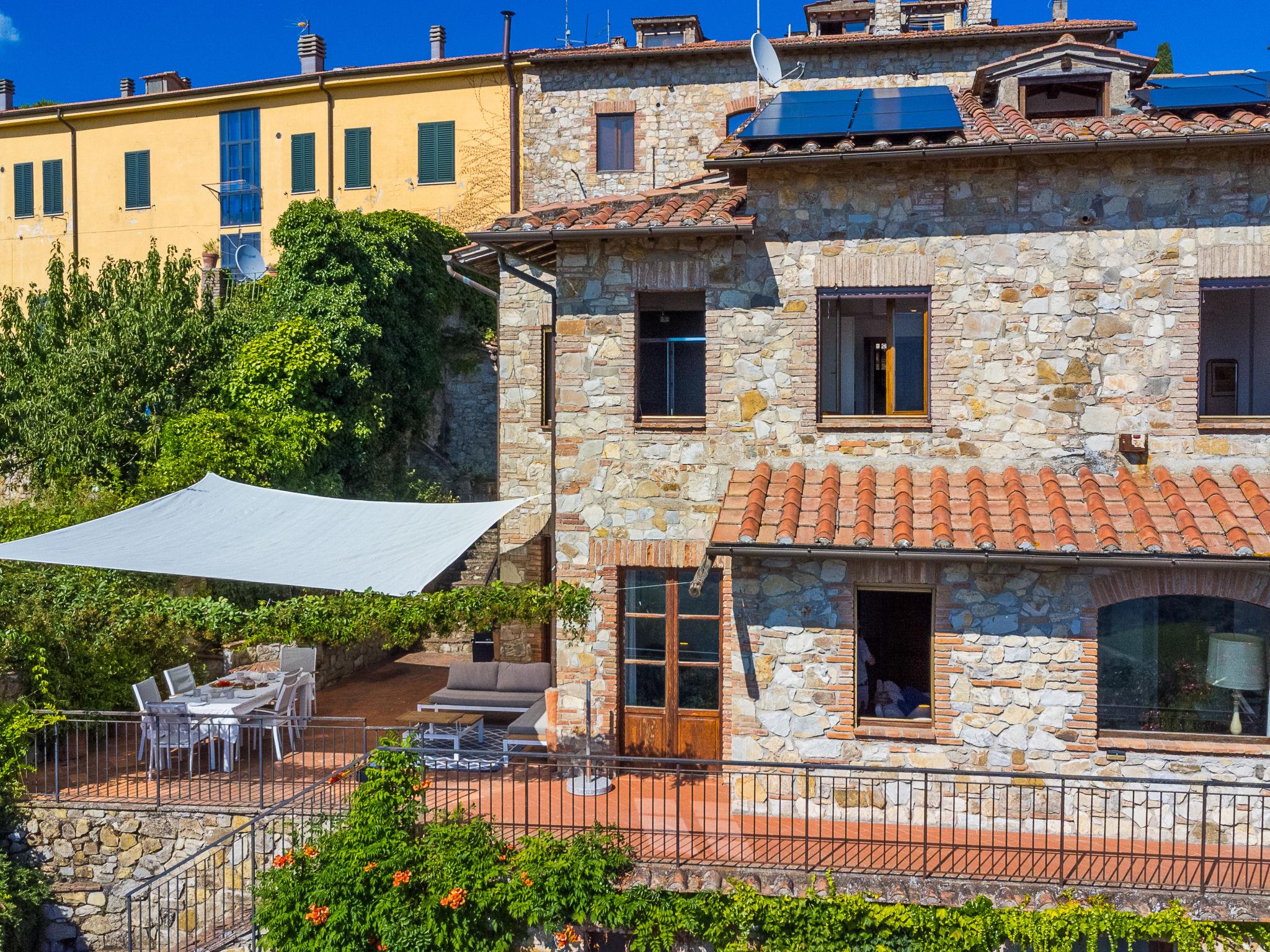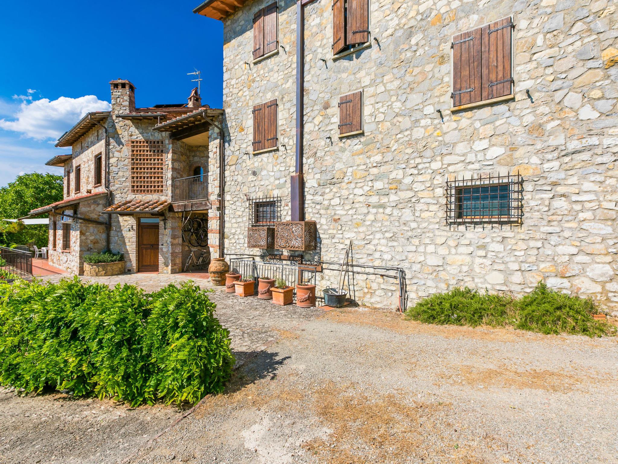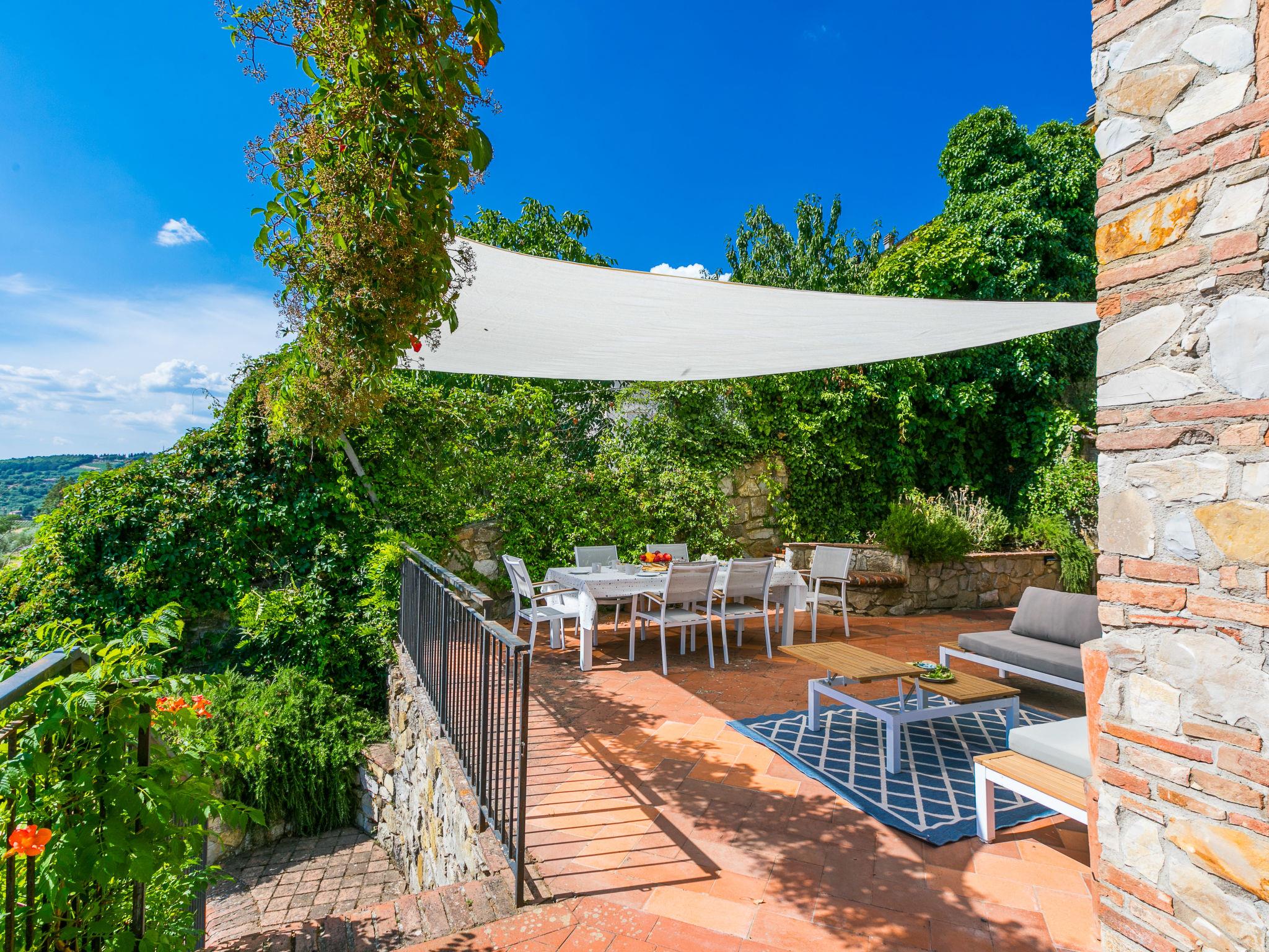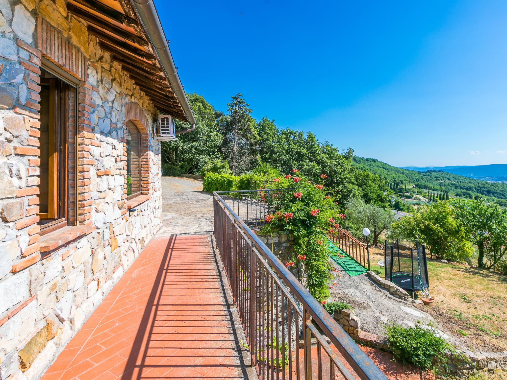 "Terrazza sul Chianti", 7-room semi-detached house 150 m2 on 3 levels. Spacious and bright, renovated in 2025, very tasteful and cosy furnishings: entrance hall. Large living room with panoramic window west facing position with open-hearth fireplace and TV (flat screen), air conditioning. Exit to the terrace. Open dining room with kitchen corner and air conditioning. Exit to the garden. Large, open kitchen (oven, dishwasher, Gas stove, 5 gas rings, toaster, kettle, microwave, freezer, electric coffee machine, Capsules for coffee machine (Nespresso) extra) with air conditioning. Exit to the terrace. Sep. WC. Upper floor: 1 large double bedroom with shower/bidet/WC and TV (flat screen), air conditioning. Exit to the balcony. 2 double bedrooms, each room with shower/bidet/WC and air conditioning. 1 double bedroom with air conditioning. Shower/bidet/WC. 2nd upper floor: open large living/sleeping room with sloping ceilings, ceiling height 100 - 220 cm with 1 bed (80 cm), 1 sofabed (130 cm), open-hearth fireplace (only for decoration), air conditioning. Exit to the balcony. Heating, air-conditioning. Parquet floors, natural stone floors. Large terrace partly roofed, west facing position, patio. Terrace furniture, barbecue, box-room. Marvellous panoramic view of the countryside. Facilities: washing machine, safe, iron, mosquito net, children's high chair, baby cot for up to 2 year olds, hair dryer, logs (extra). Internet (WiFi, free). Parking at the house. Please note: suitable for families. Non-smokers only. Private entrance, smoke alarm, fire extinguisher. IT052005C2MJMX9V8B