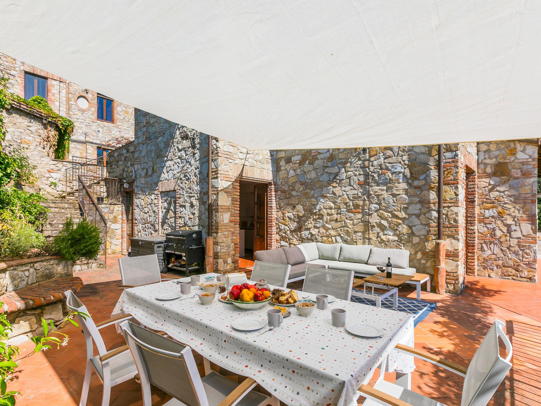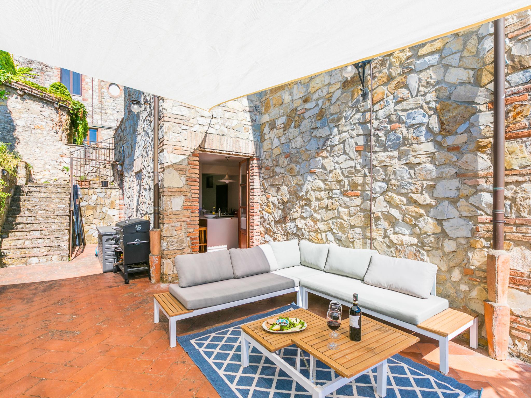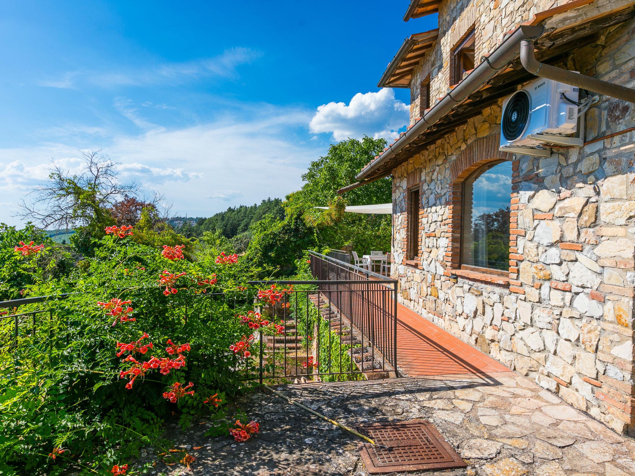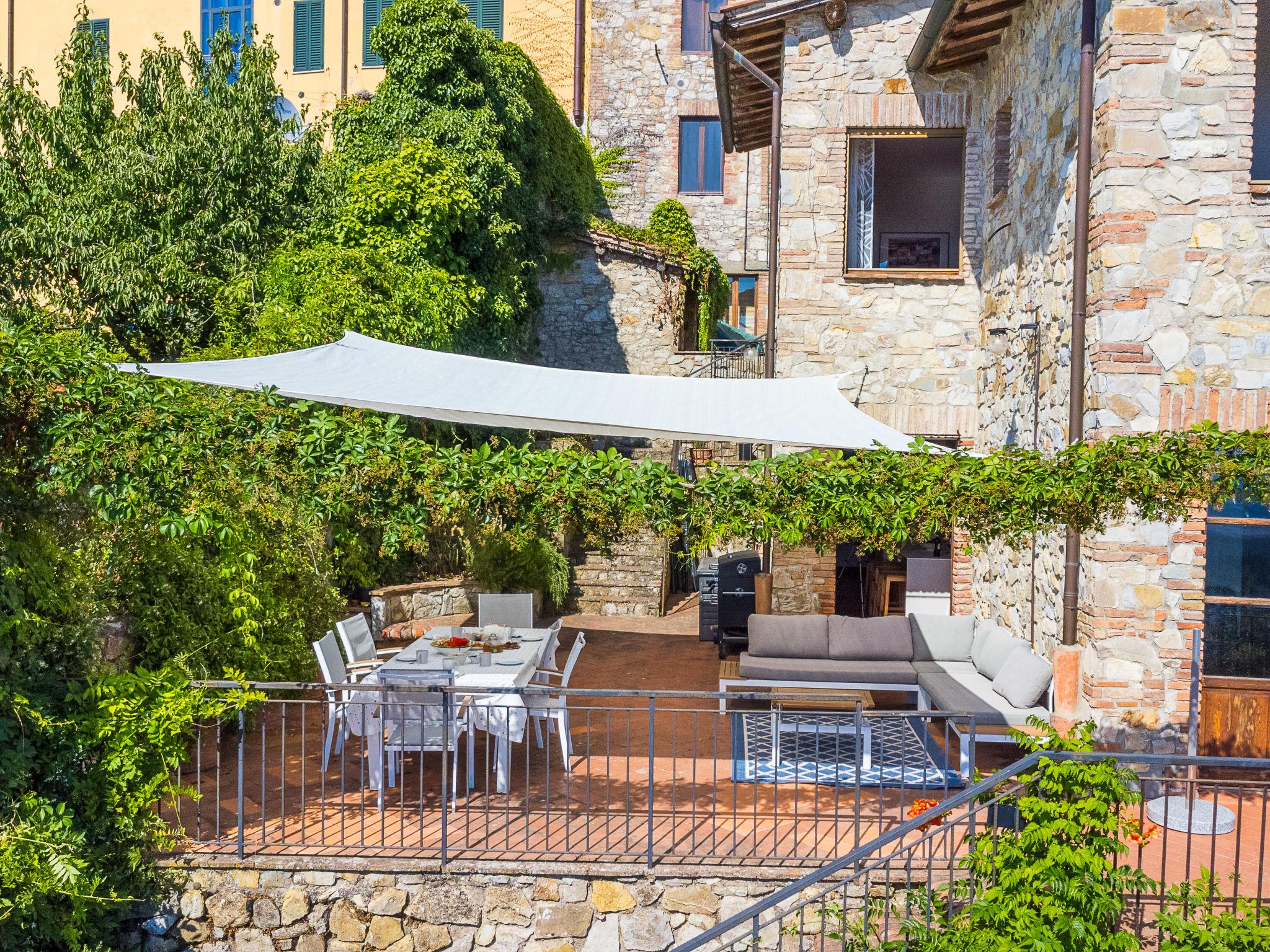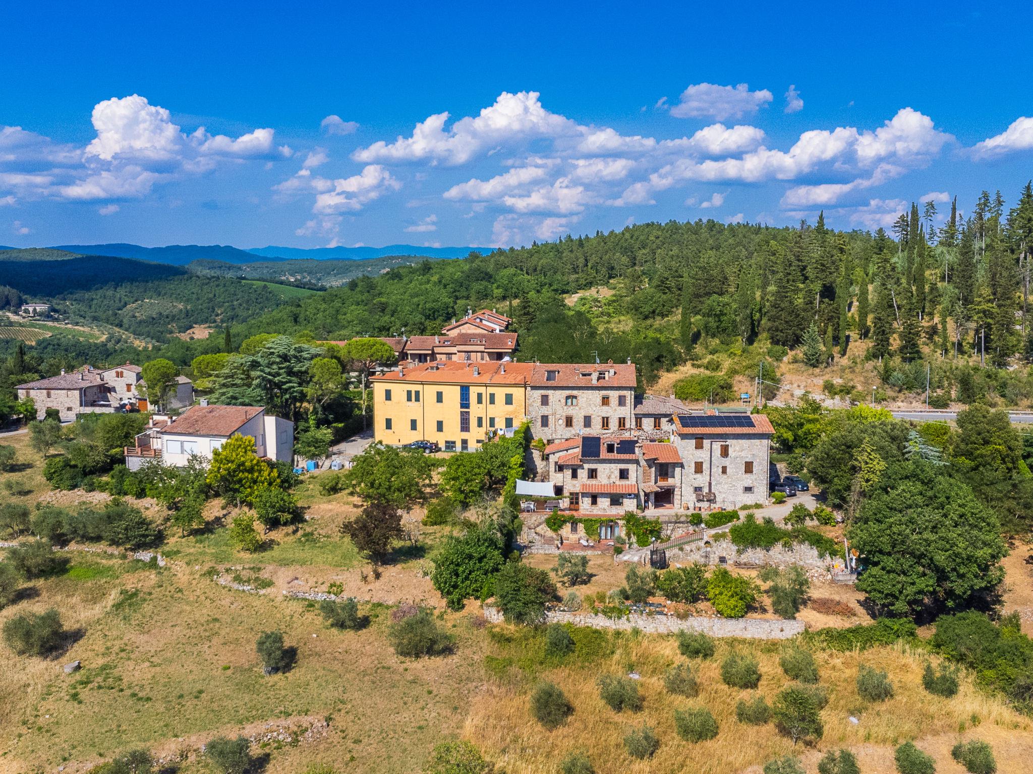 "Terrazza sul Chianti", 7-room semi-detached house 150 m2 on 3 levels. Spacious and bright, renovated in 2025, very tasteful and cosy furnishings: entrance hall. Large living room with panoramic window west facing position with open-hearth fireplace and TV (flat screen), air conditioning. Exit to the terrace. Open dining room with kitchen corner and air conditioning. Exit to the garden. Large, open kitchen (oven, dishwasher, Gas stove, 5 gas rings, toaster, kettle, microwave, freezer, electric coffee machine, Capsules for coffee machine (Nespresso) extra) with air conditioning. Exit to the terrace. Sep. WC. Upper floor: 1 large double bedroom with shower/bidet/WC and TV (flat screen), air conditioning. Exit to the balcony. 2 double bedrooms, each room with shower/bidet/WC and air conditioning. 1 double bedroom with air conditioning. Shower/bidet/WC. 2nd upper floor: open large living/sleeping room with sloping ceilings, ceiling height 100 - 220 cm with 1 bed (80 cm), 1 sofabed (130 cm), open-hearth fireplace (only for decoration), air conditioning. Exit to the balcony. Heating, air-conditioning. Parquet floors, natural stone floors. Large terrace partly roofed, west facing position, patio. Terrace furniture, barbecue, box-room. Marvellous panoramic view of the countryside. Facilities: washing machine, safe, iron, mosquito net, children's high chair, baby cot for up to 2 year olds, hair dryer, logs (extra). Internet (WiFi, free). Parking at the house. Please note: suitable for families. Non-smokers only. Private entrance, smoke alarm, fire extinguisher. IT052005C2MJMX9V8B